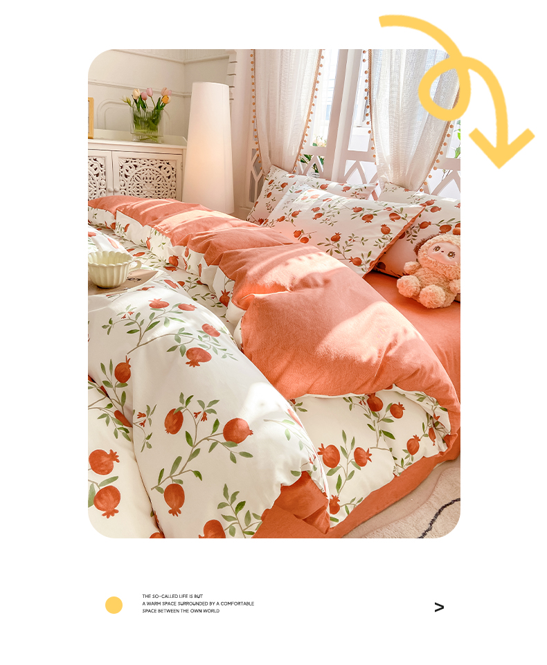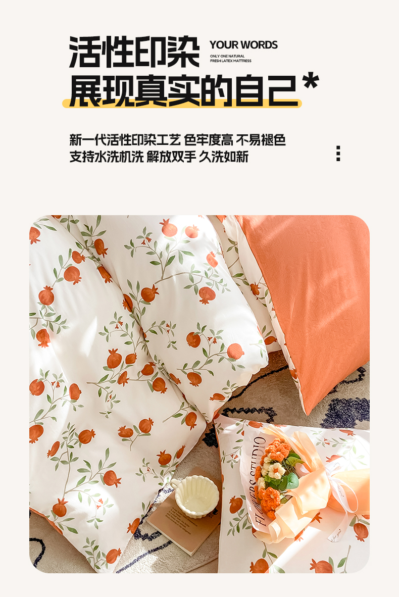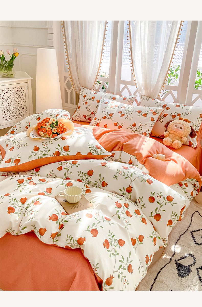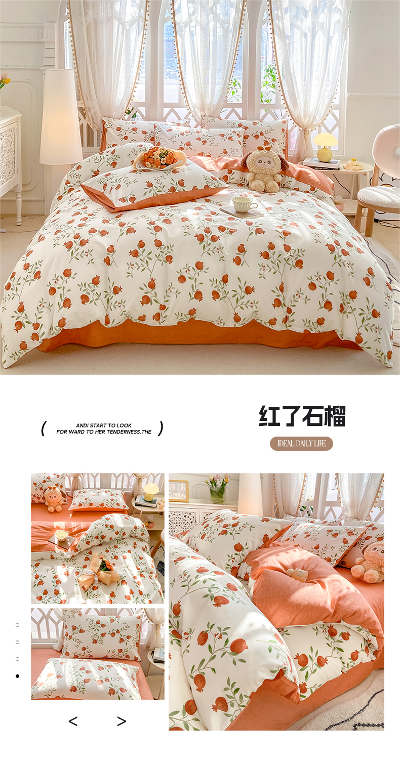 商品名称:帅露家纺 2025开春新品全棉喷气13070小清新印花纯棉全棉四件套 红了石榴