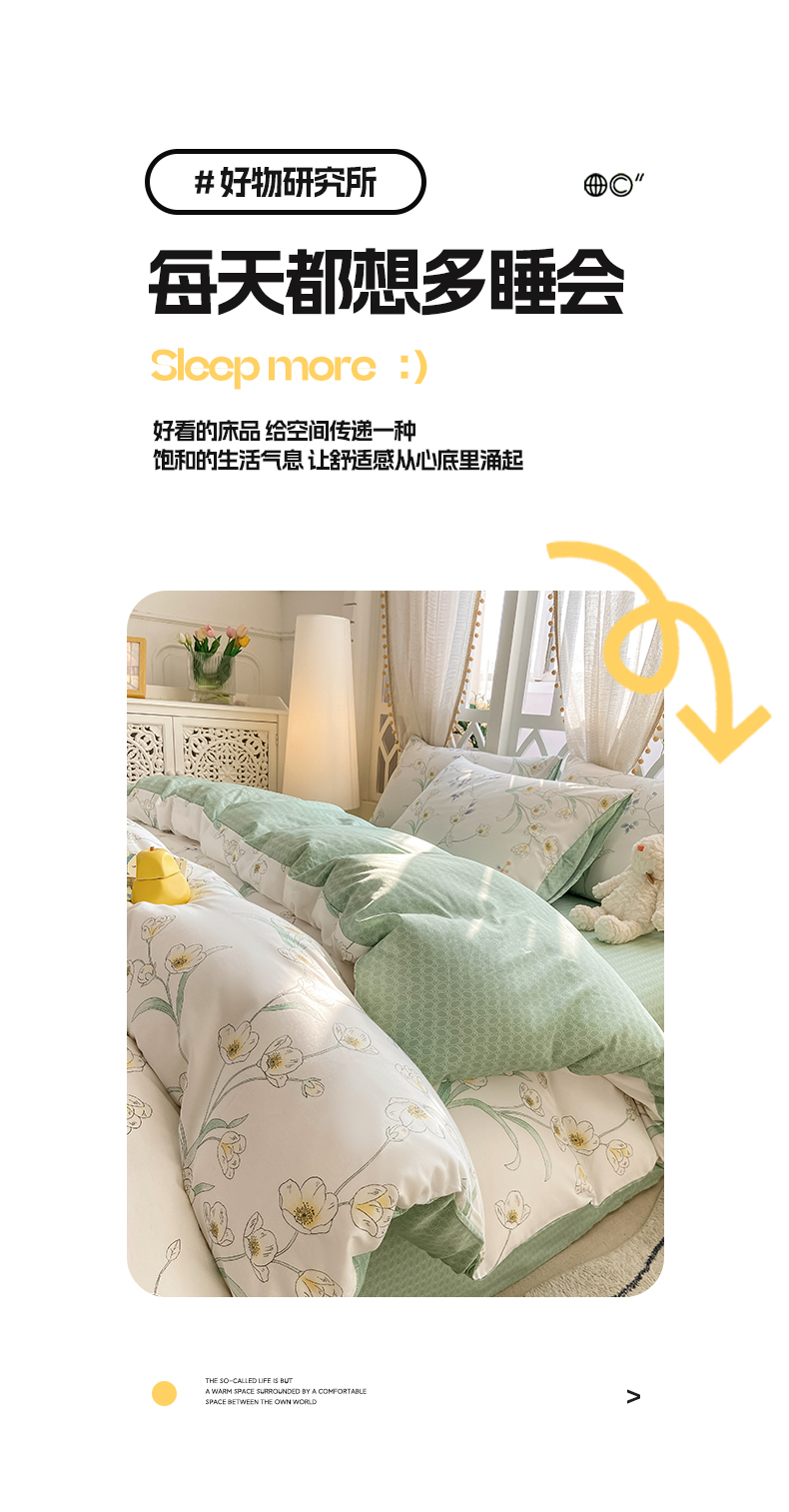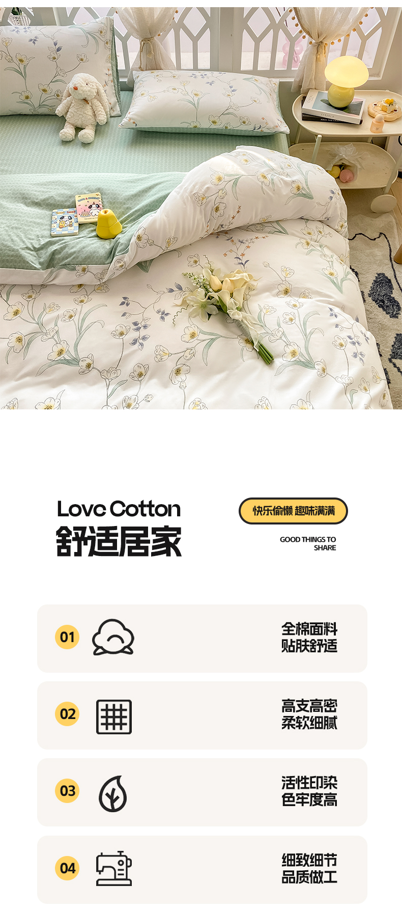商品名称:帅露家纺 2025开春新品全棉喷气13070小清新印花纯棉全棉四件套 沁园春
