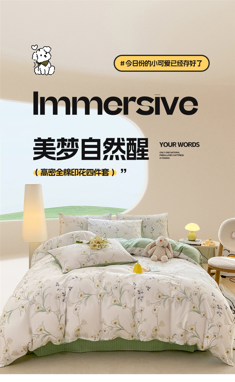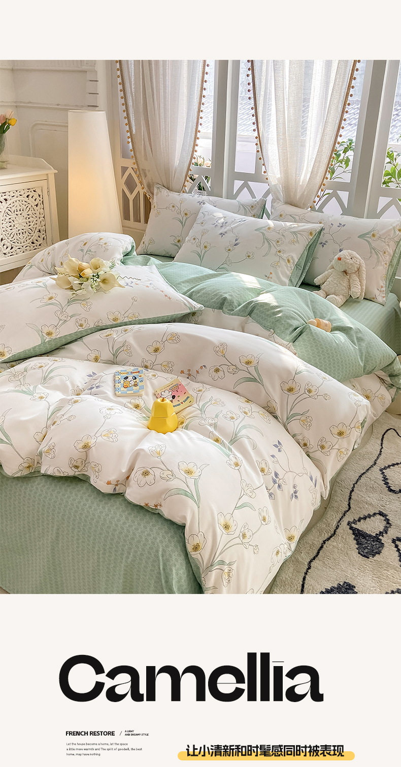 帅露家纺 2025开春新品全棉喷气13070小清新印花纯棉全棉四件套 沁园春