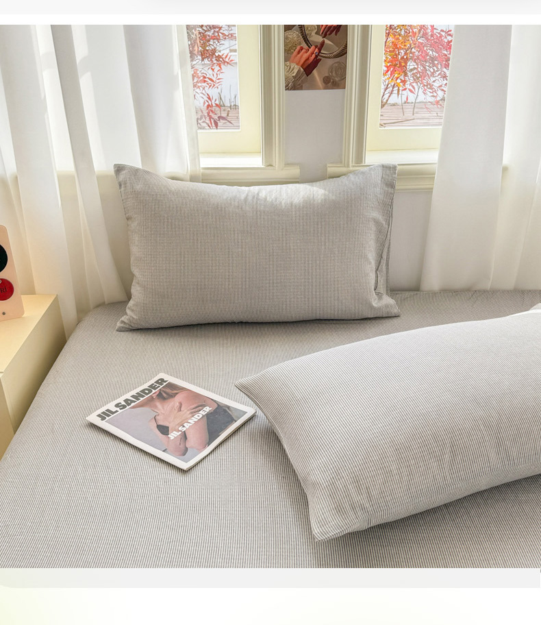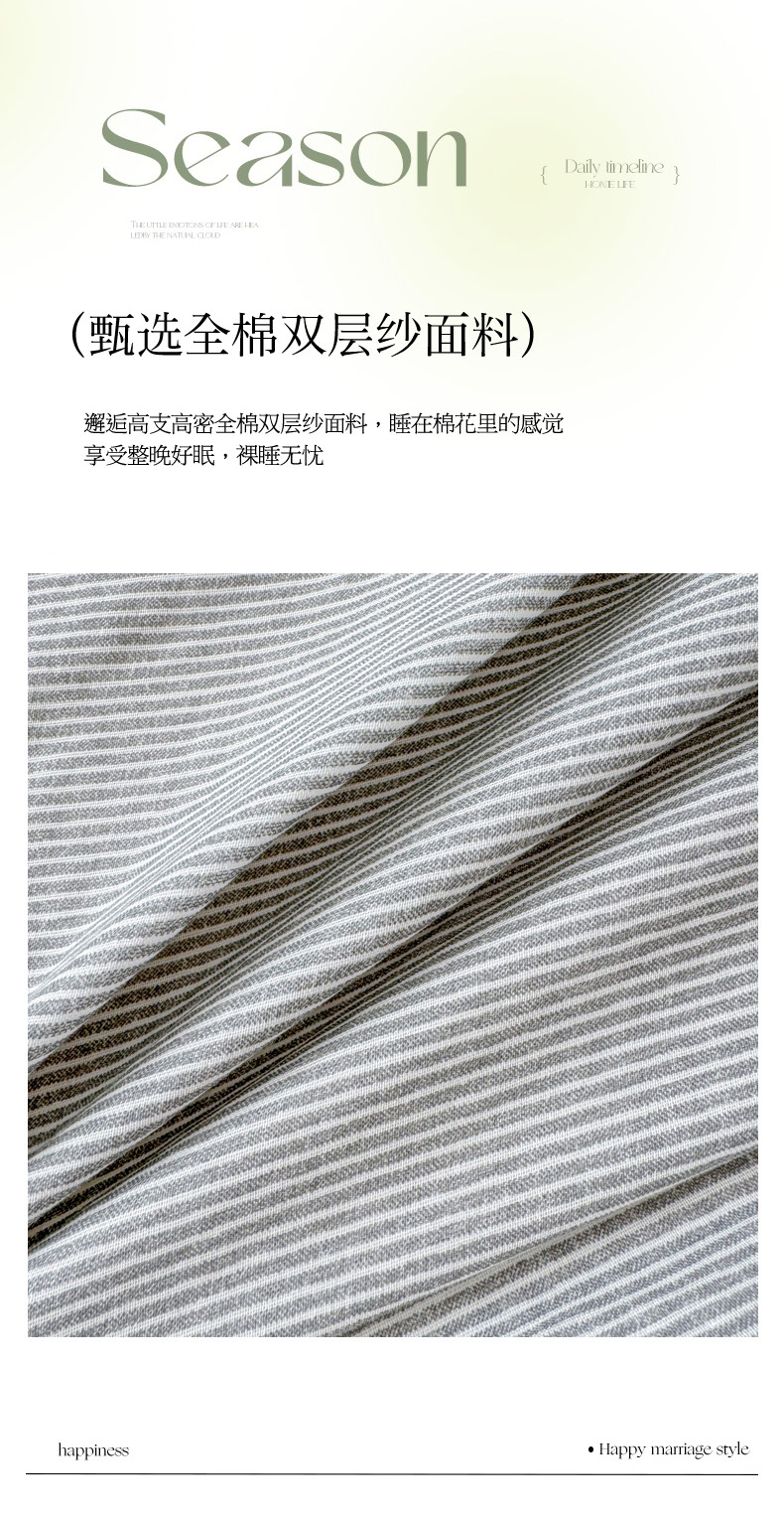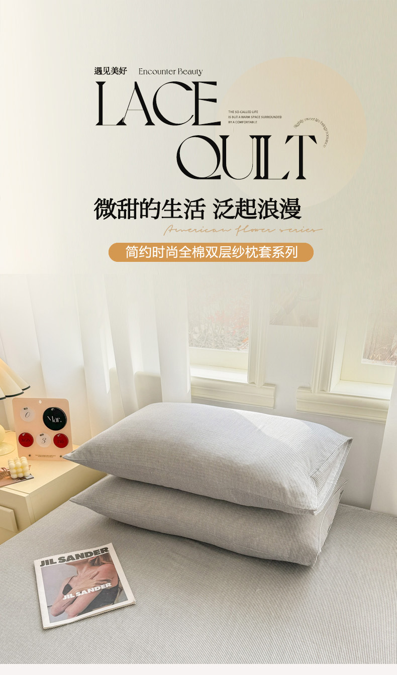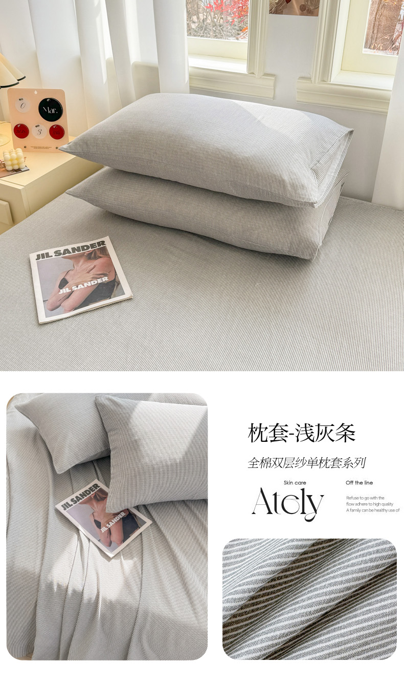 商品名称:眠博士2025新款全棉双层纱单枕套 双层纱枕套-浅灰条