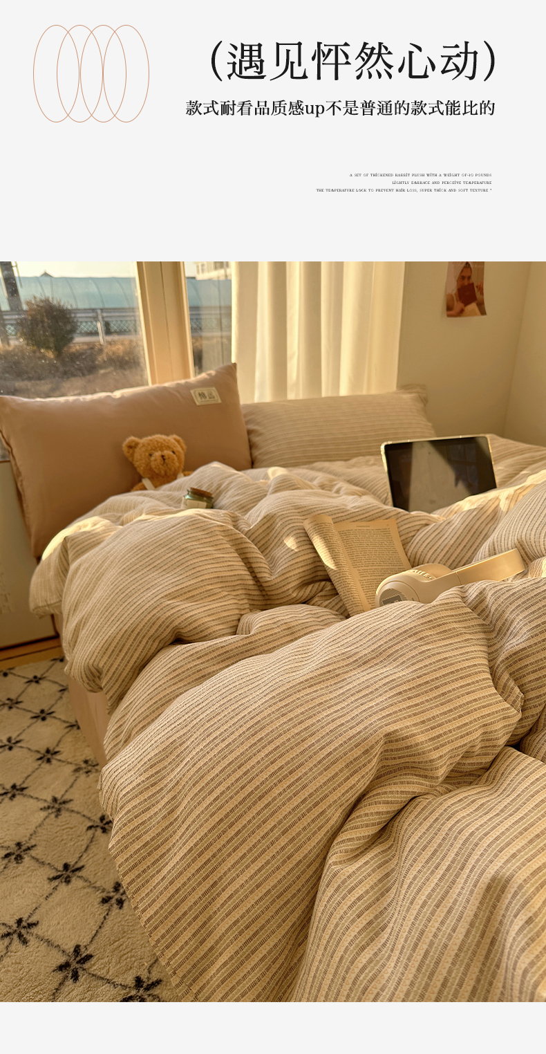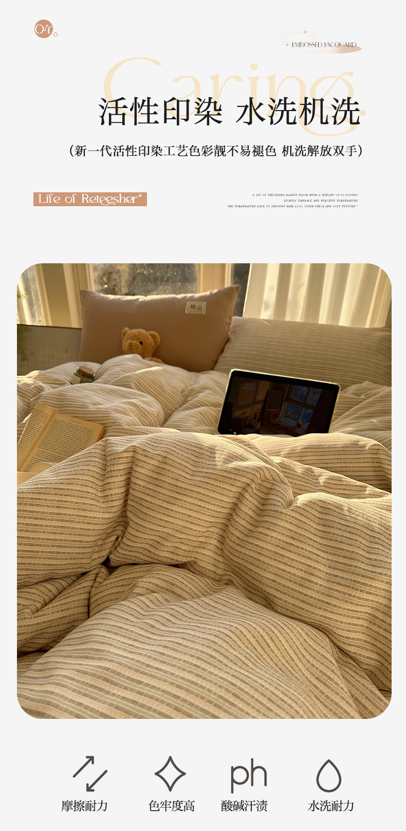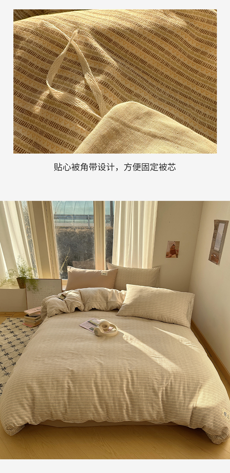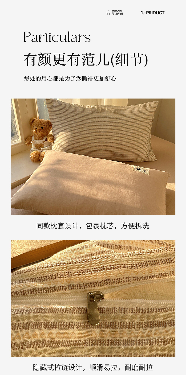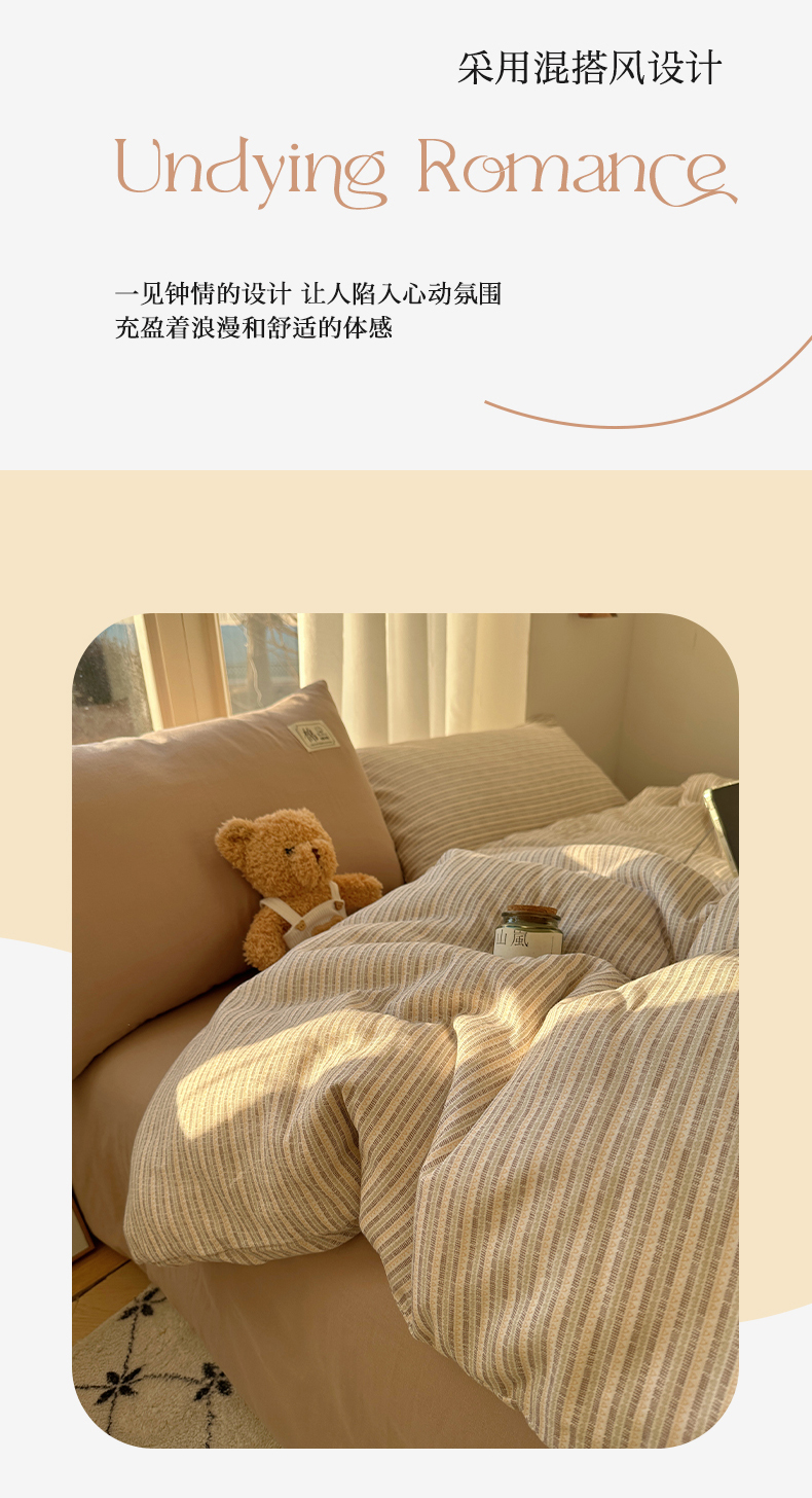 商品名称:三朵家纺 2025新款全棉双层纱混搭四件套 简洽-咖
