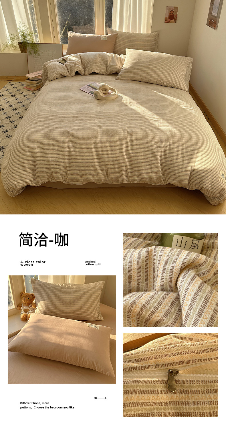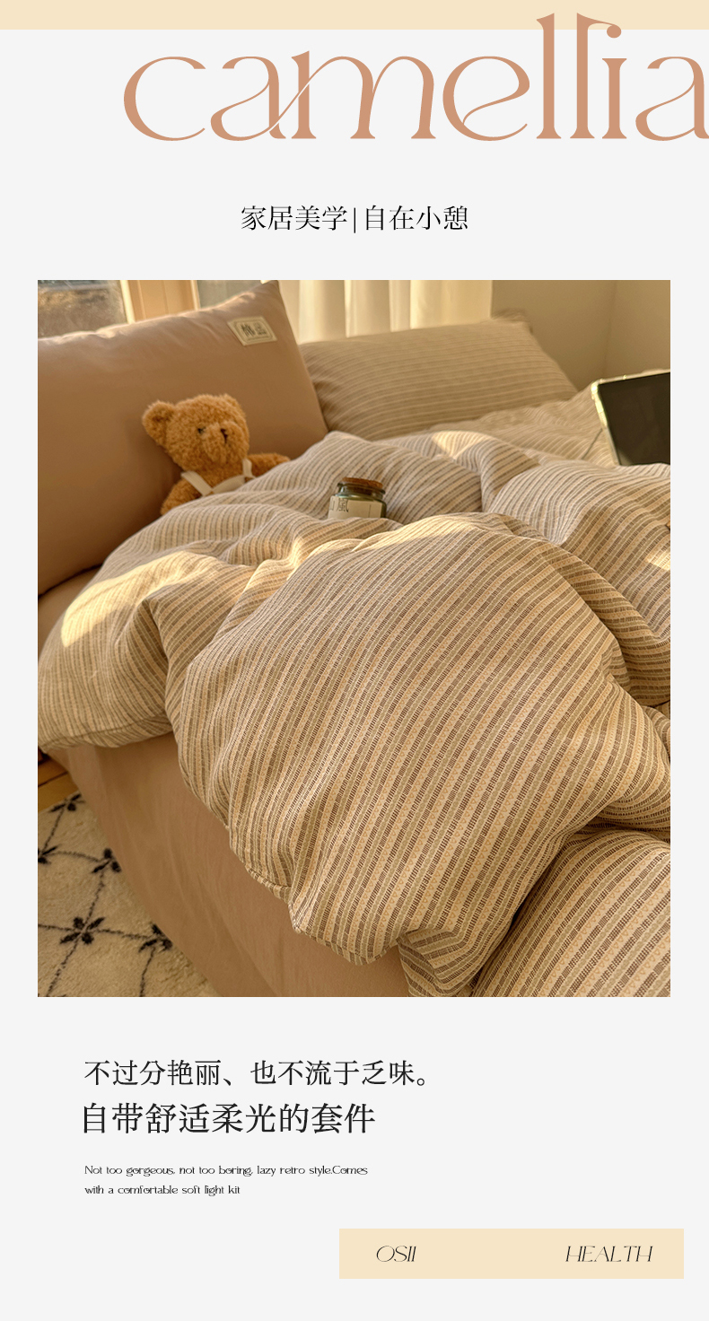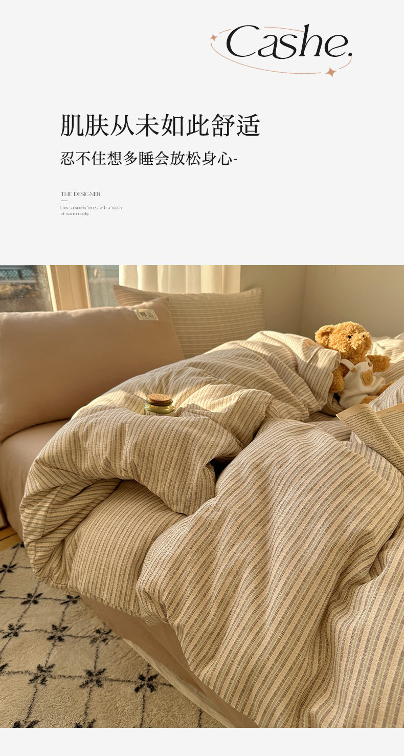 三朵家纺 2025新款全棉双层纱混搭四件套 简洽-咖
