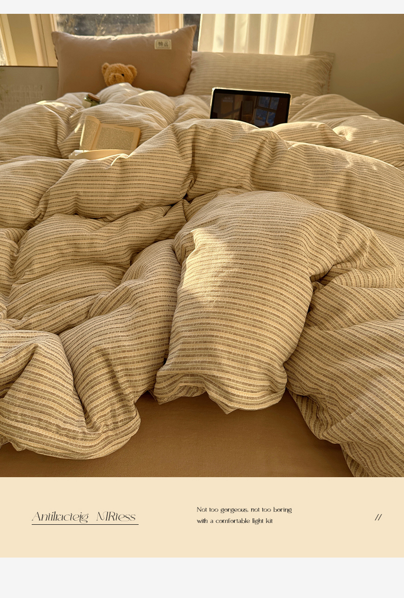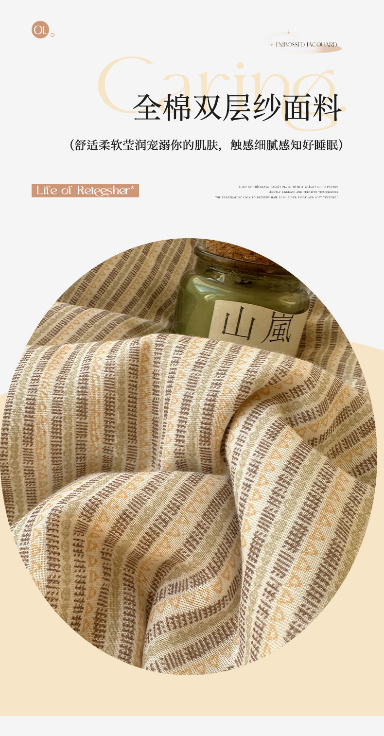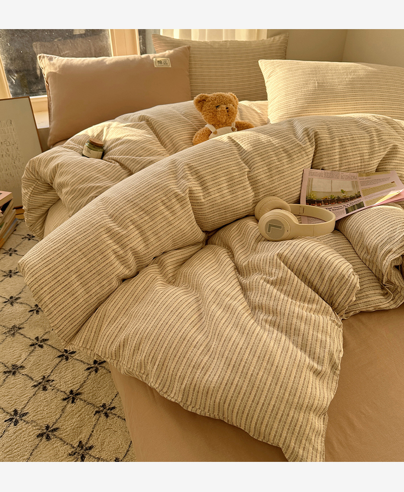 三朵家纺 2025新款全棉双层纱混搭四件套 简洽-咖