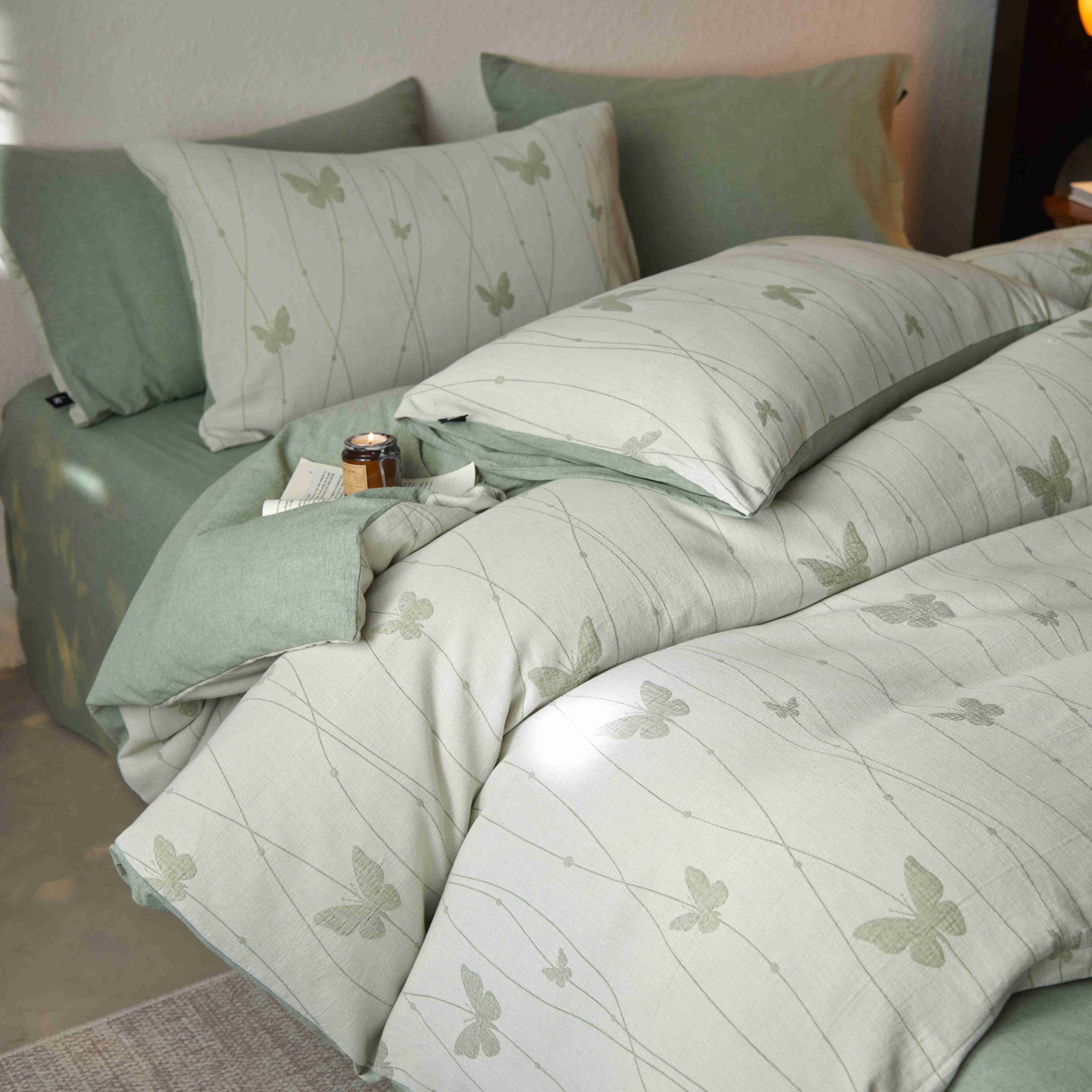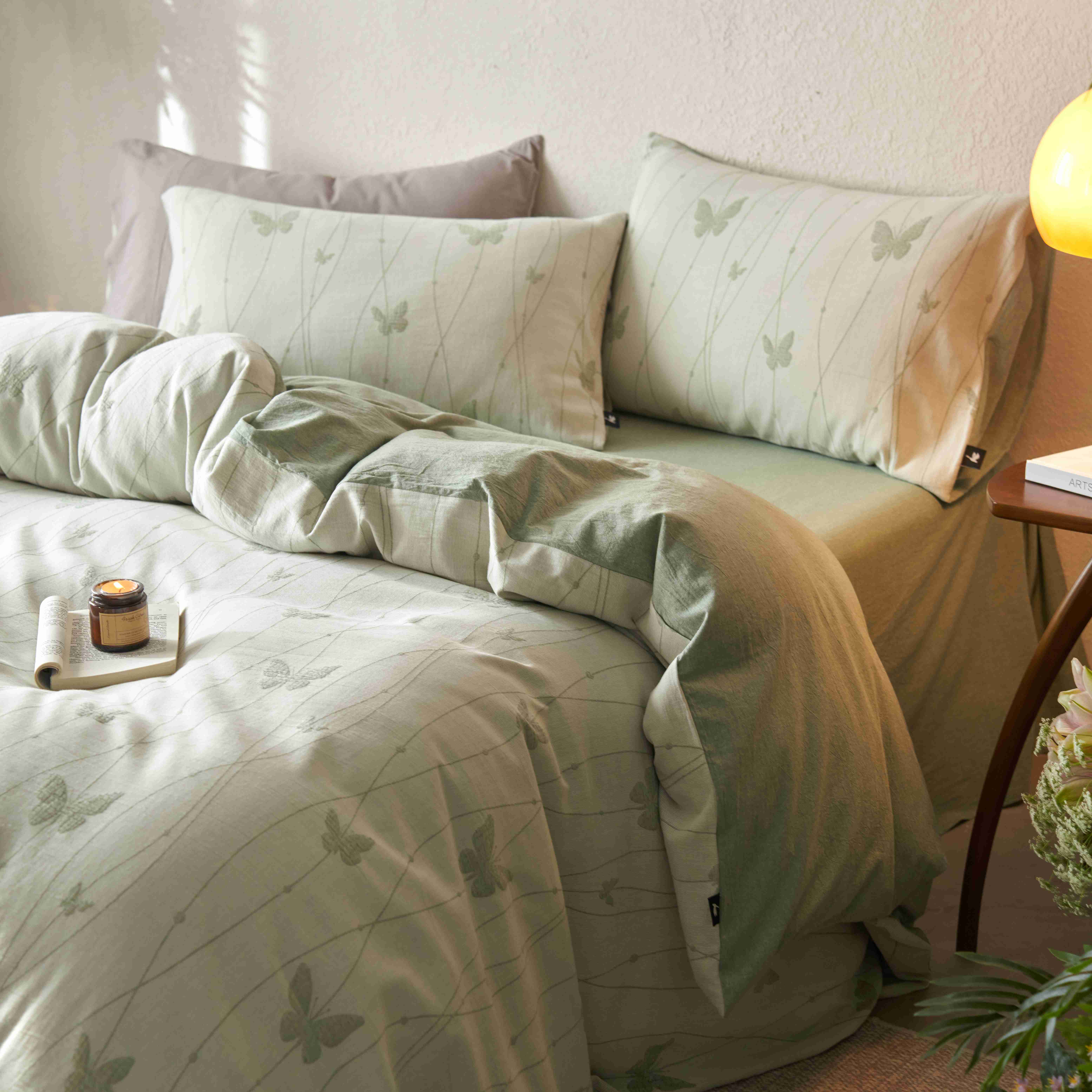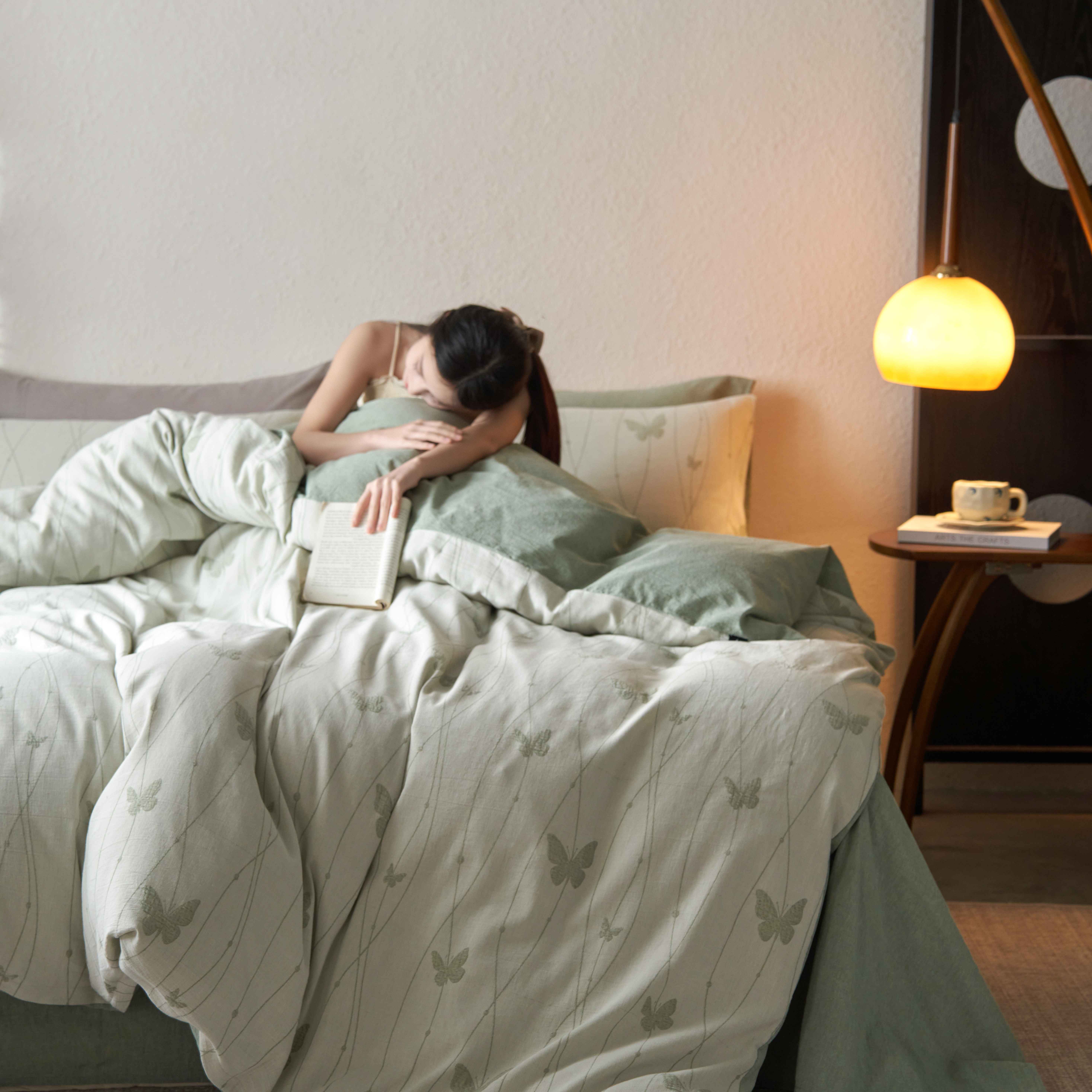 安莱生活 2025新款60s双层纱色织大提花蝶舞翩翩四件套系列 蝶舞翩翩-草绿