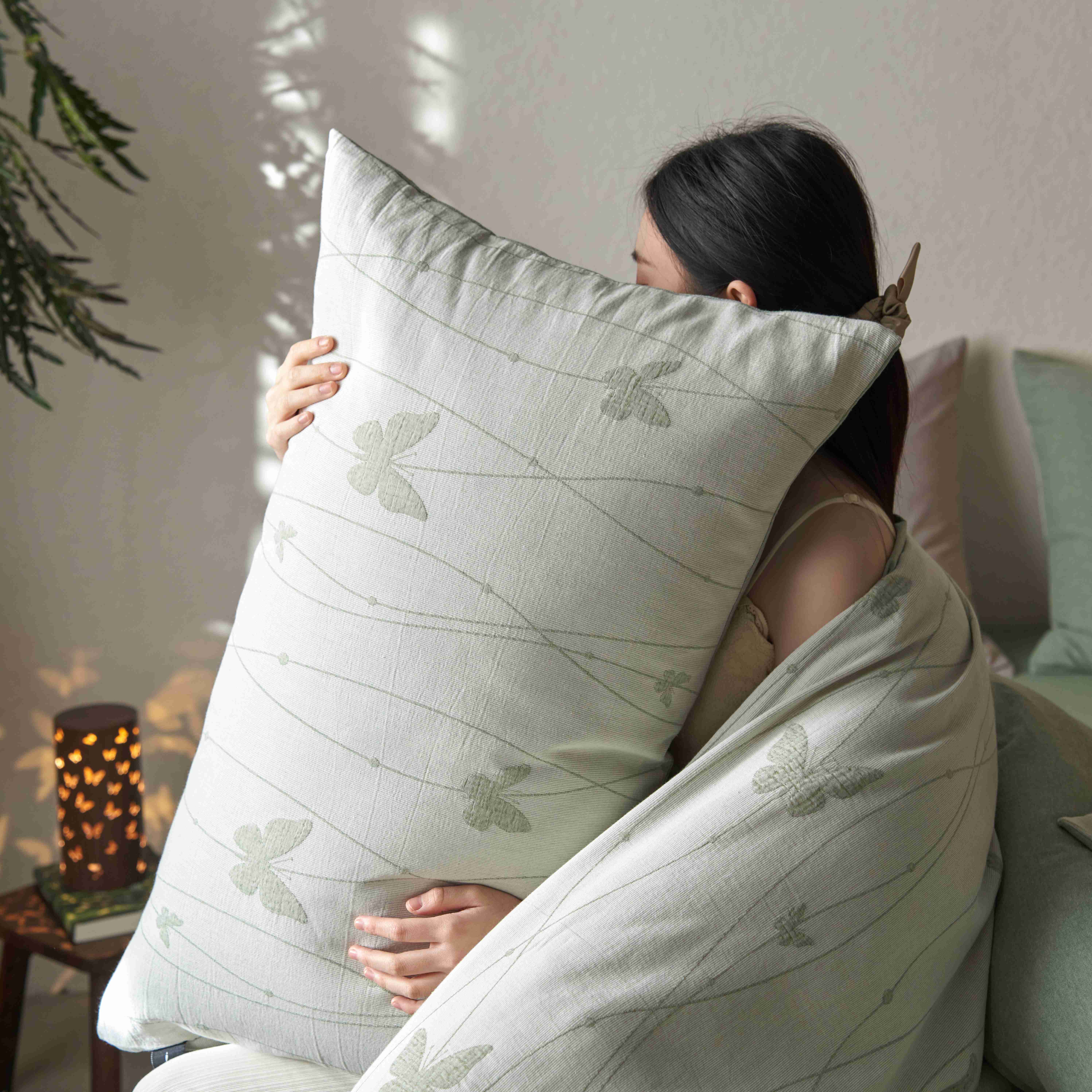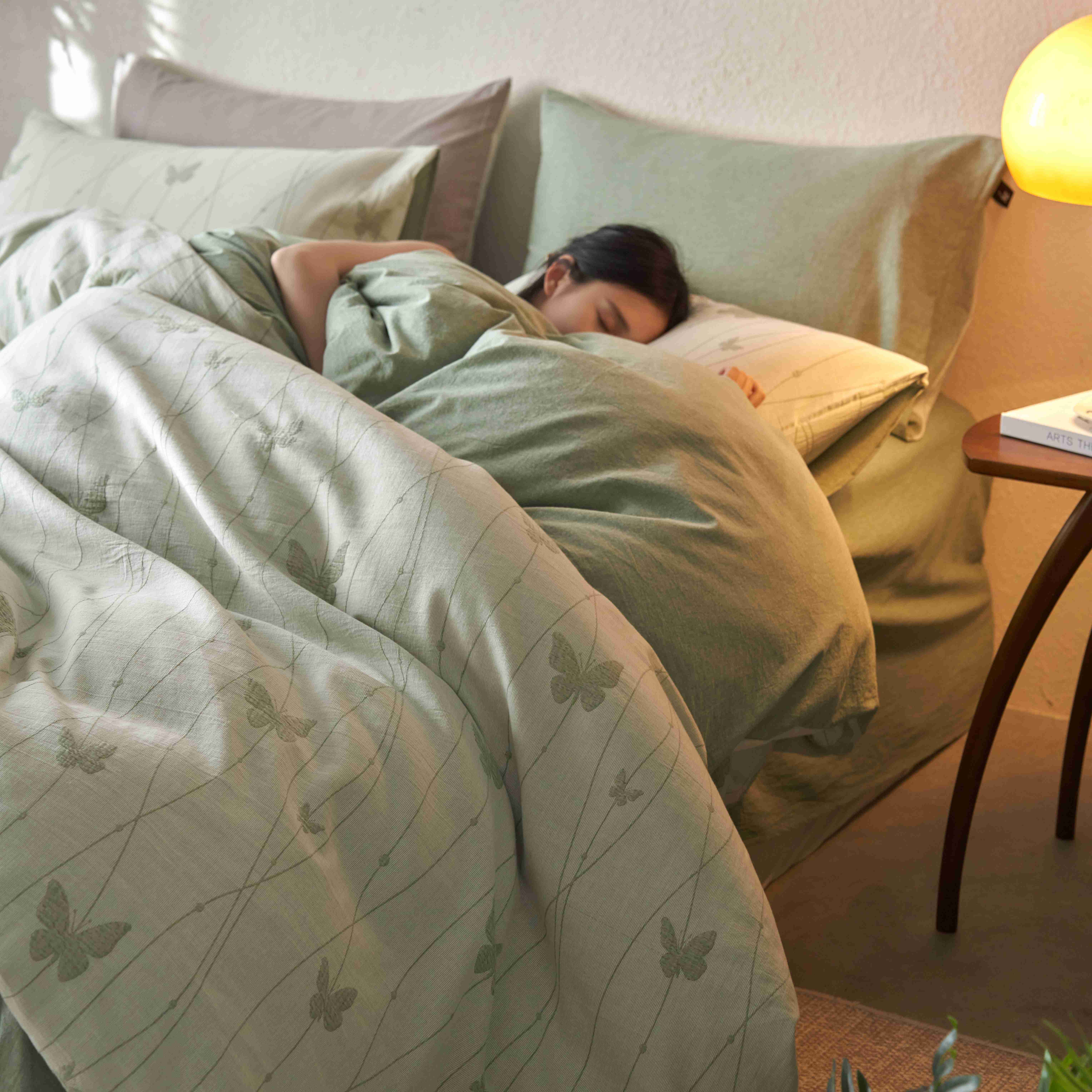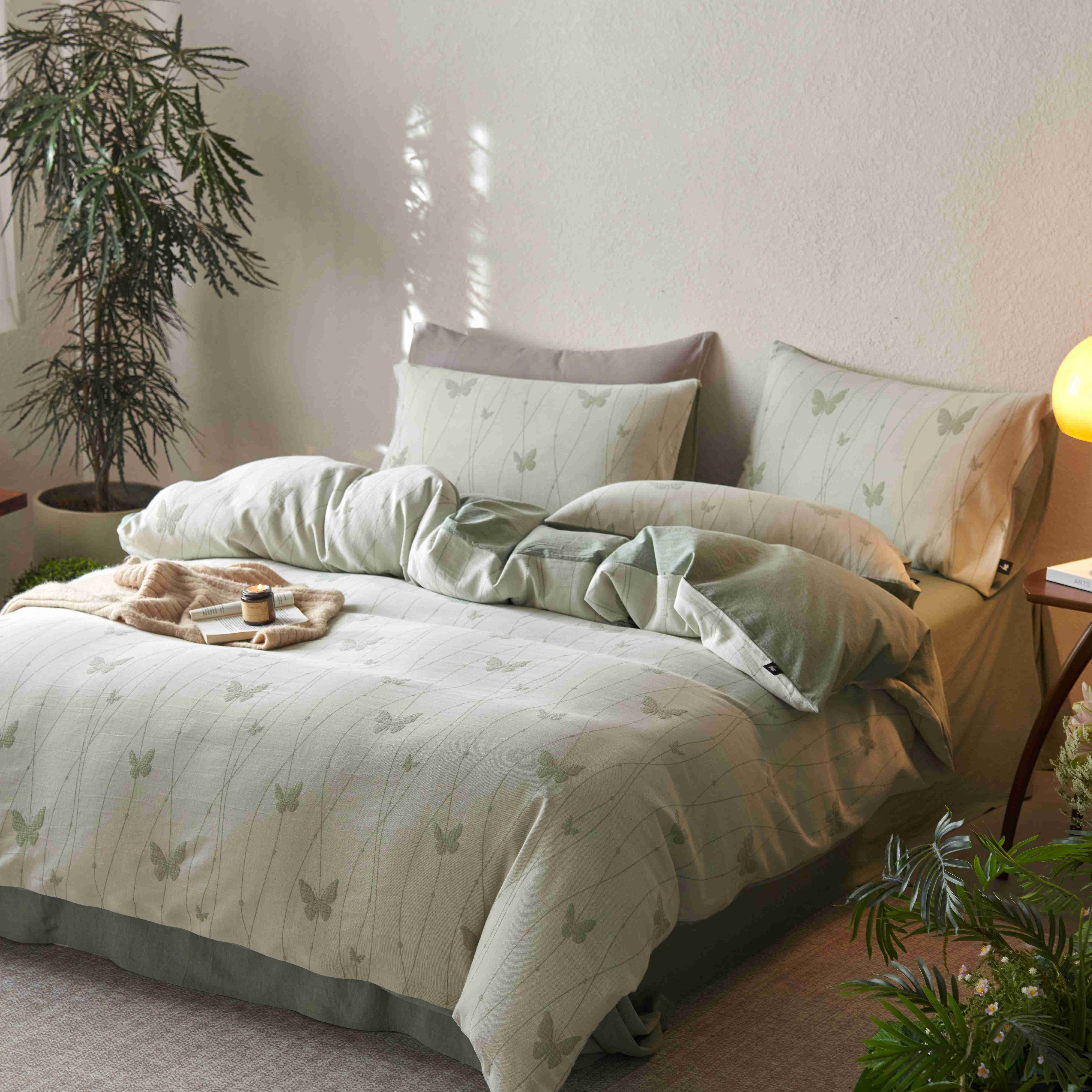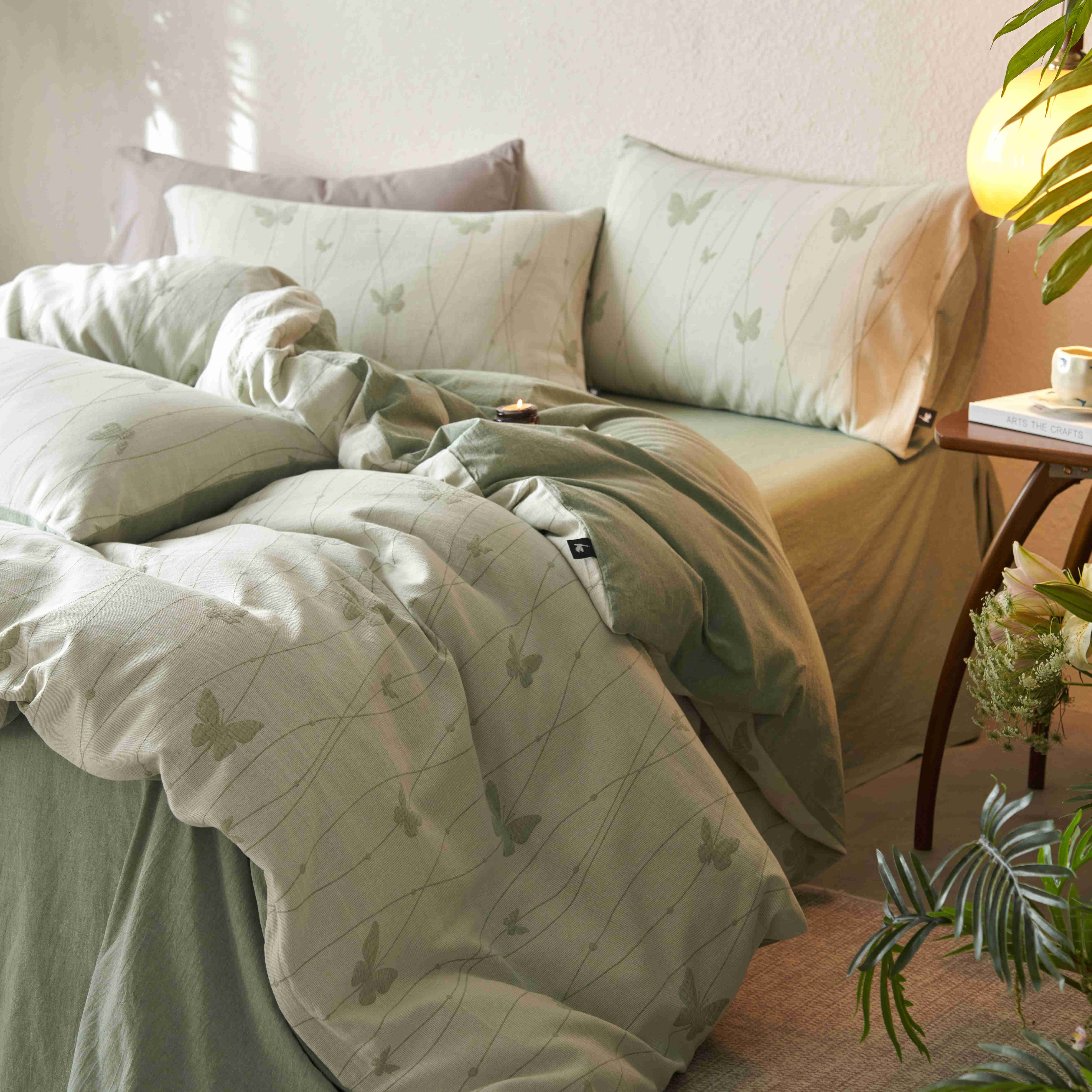 商品名称:安莱生活 2025新款60s双层纱色织大提花蝶舞翩翩四件套系列 蝶舞翩翩-草绿
