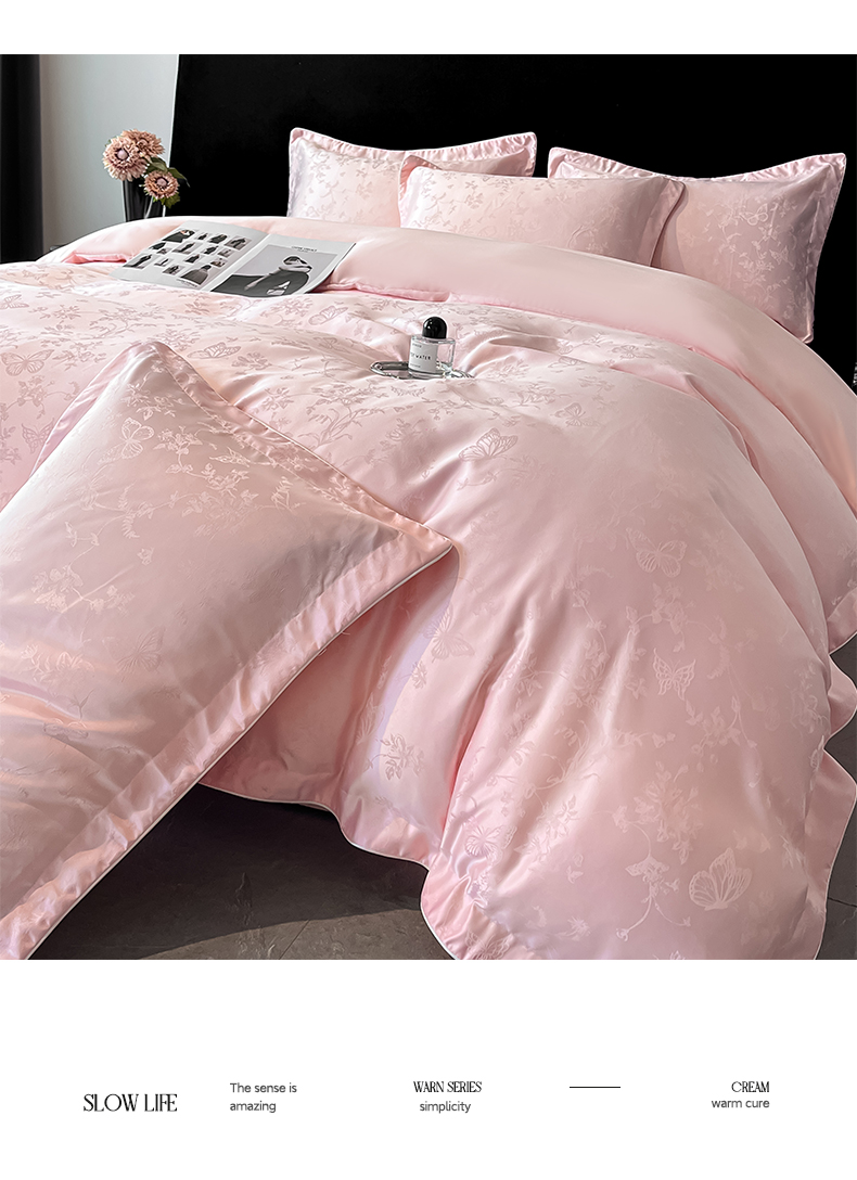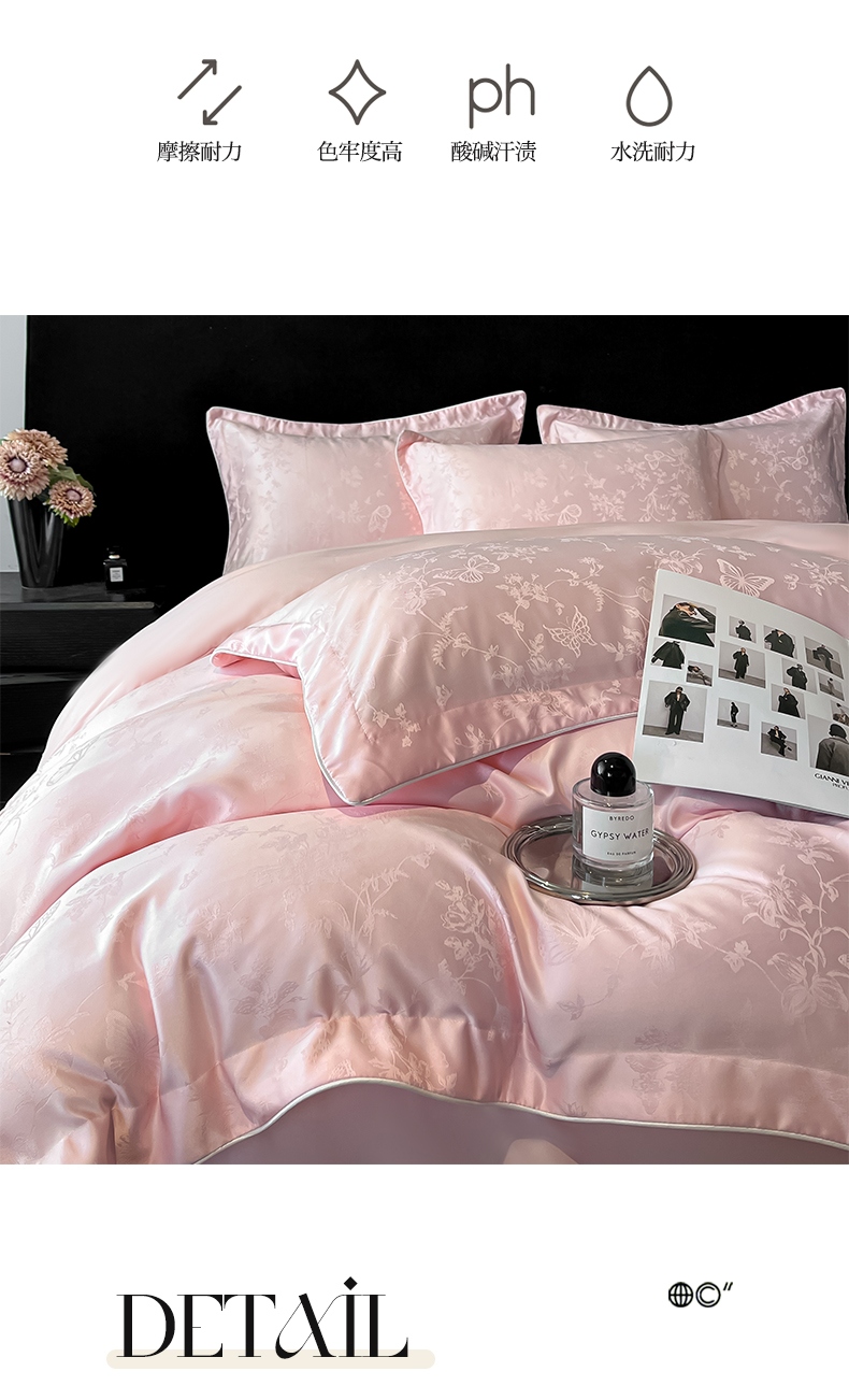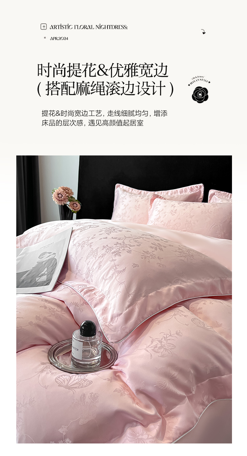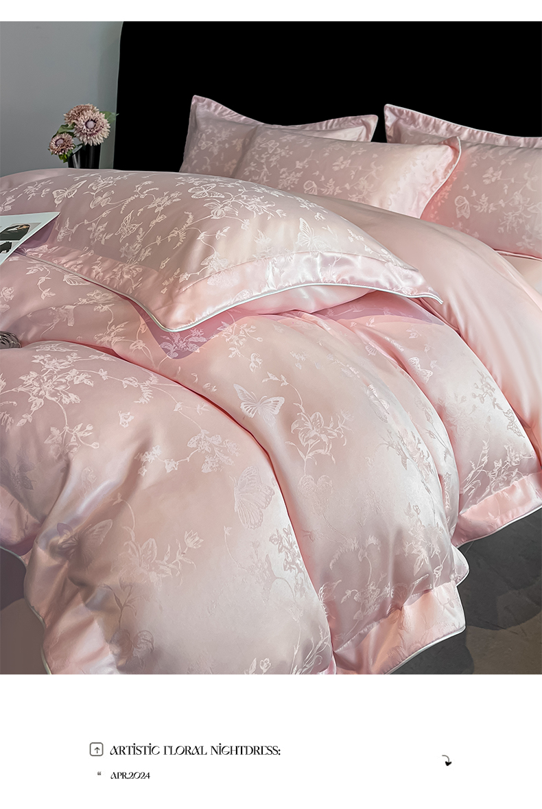 商品名称:米彩家纺 2025新款A类水洗真丝天丝提花四件套 雾中花影珍珠粉