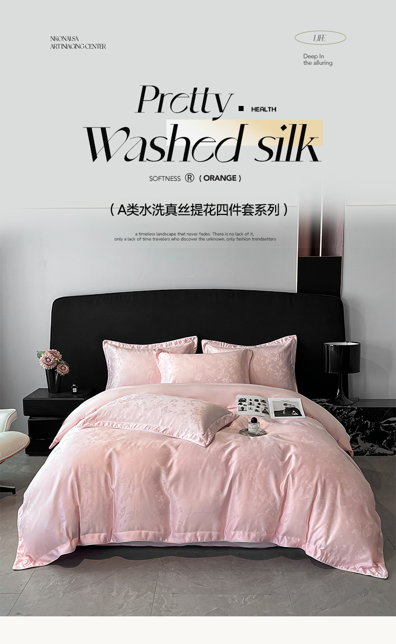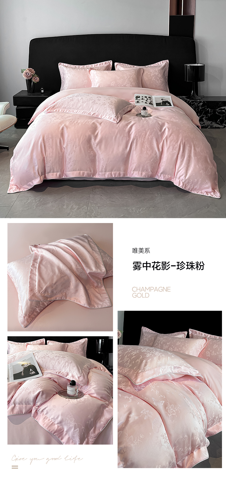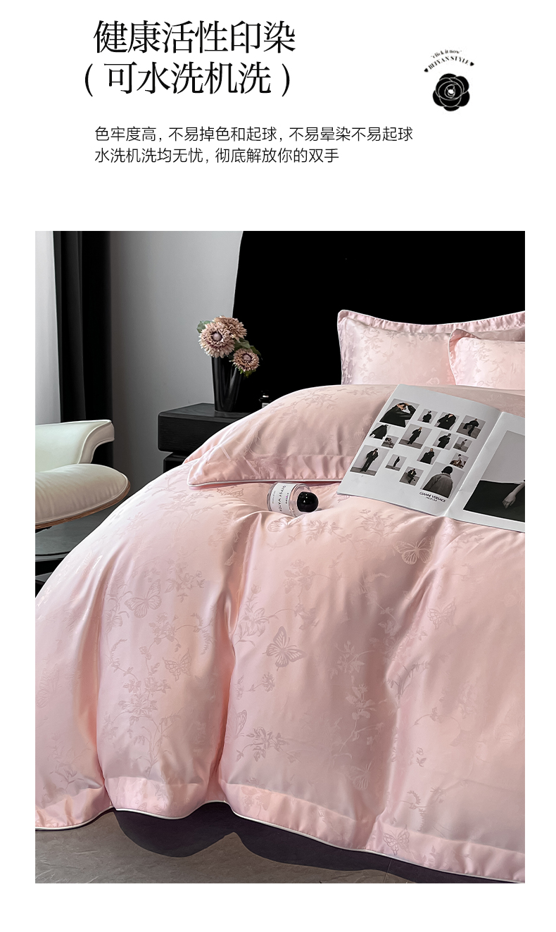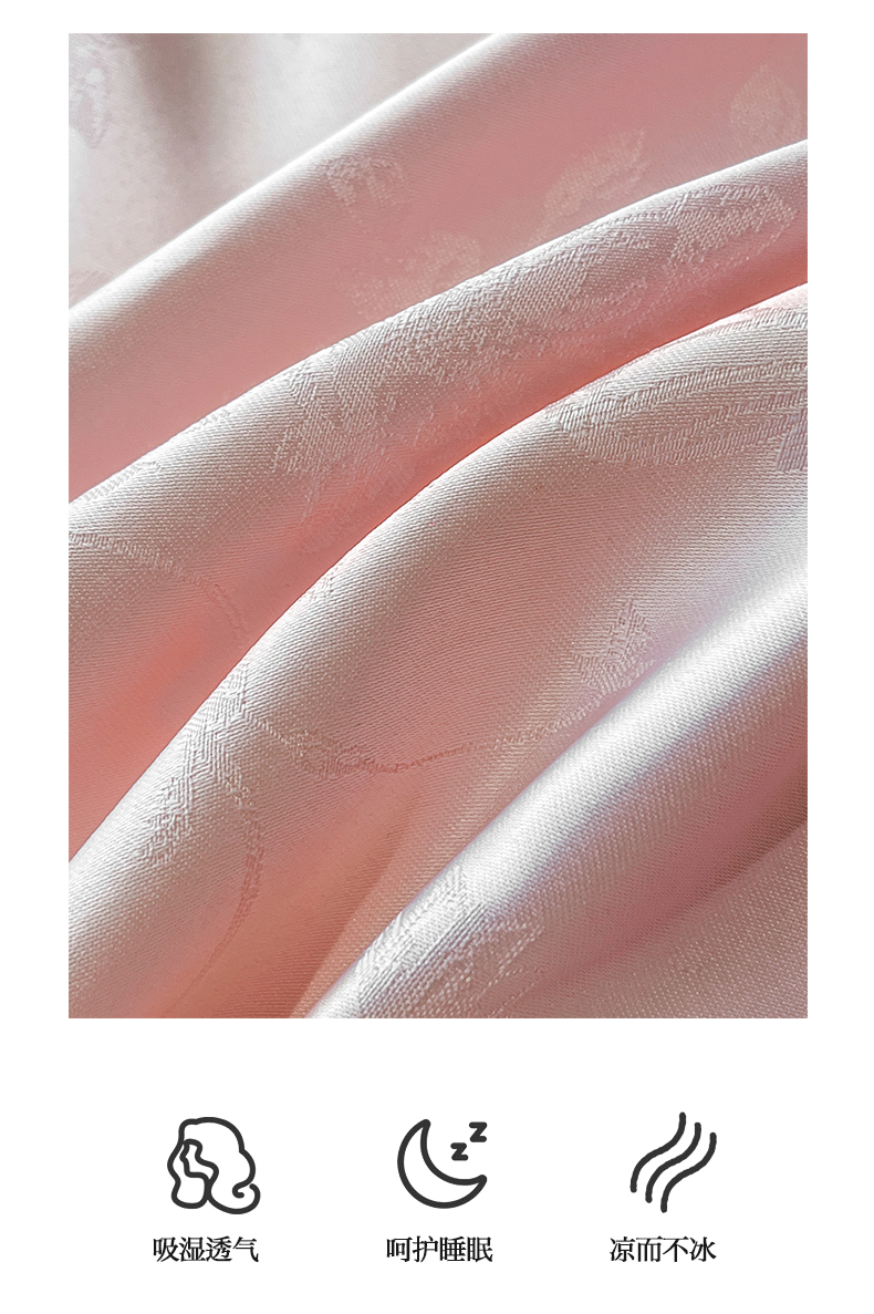商品名称:米彩家纺 2025新款A类水洗真丝天丝提花四件套 雾中花影珍珠粉