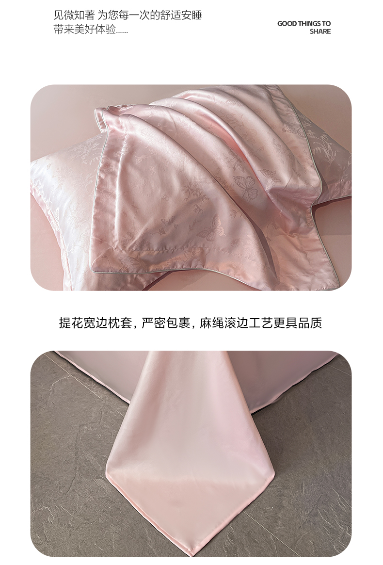 (总)米彩家纺 2025新款A类水洗真丝亮光浮雕花边四件套,粉香槟,粉玉,奶昔白,浅灰,天兰