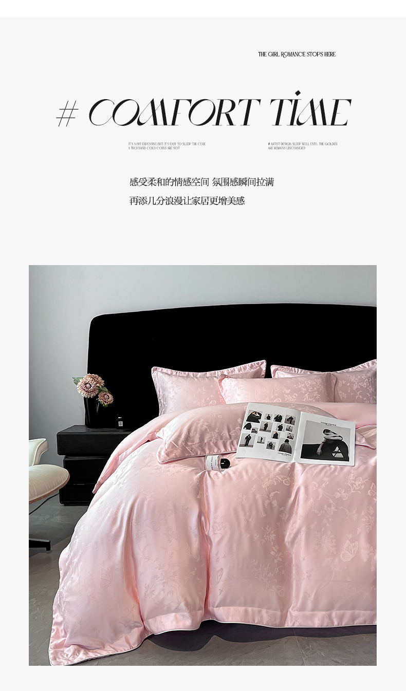 米彩家纺 2025新款A类水洗真丝天丝提花四件套 雾中花影珍珠粉
