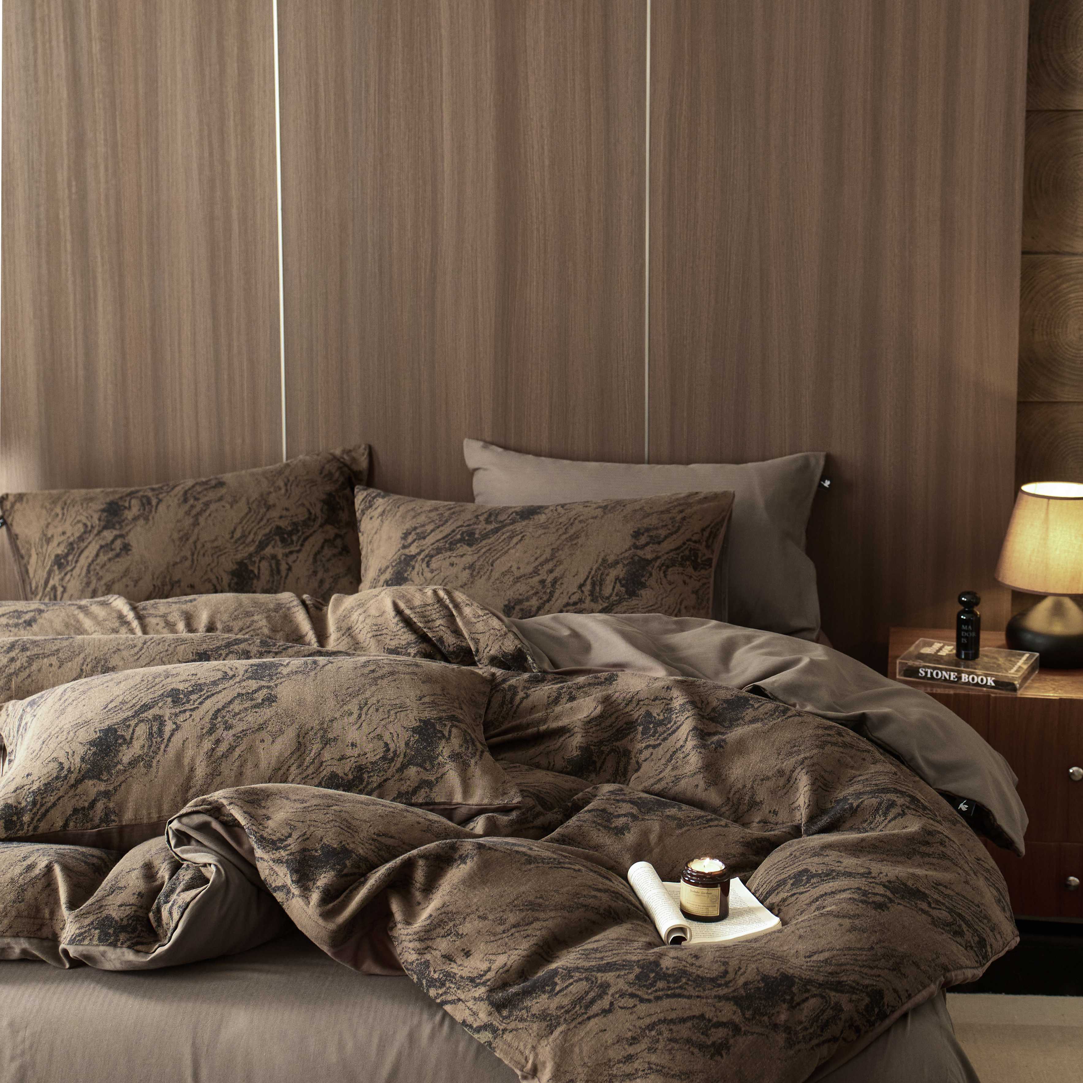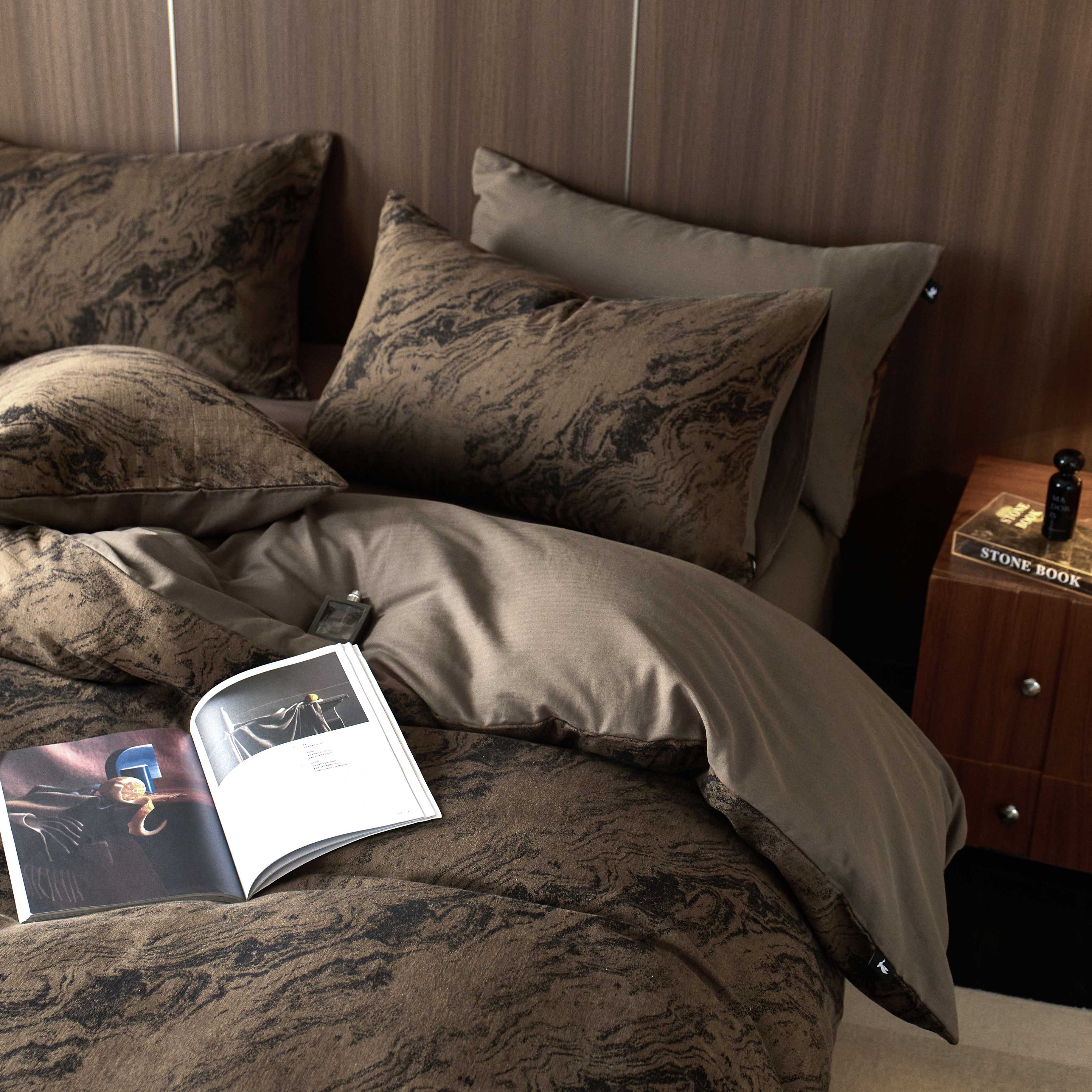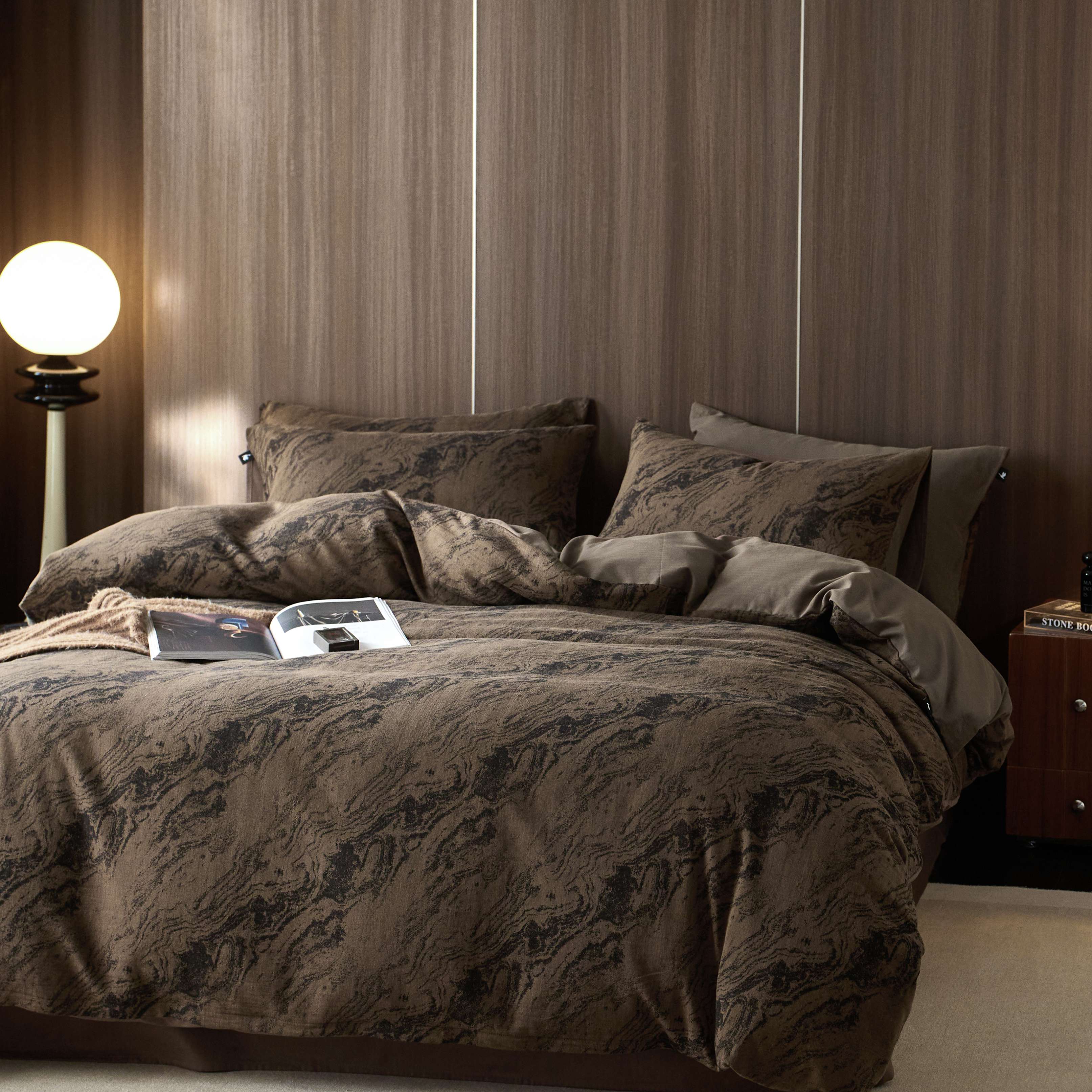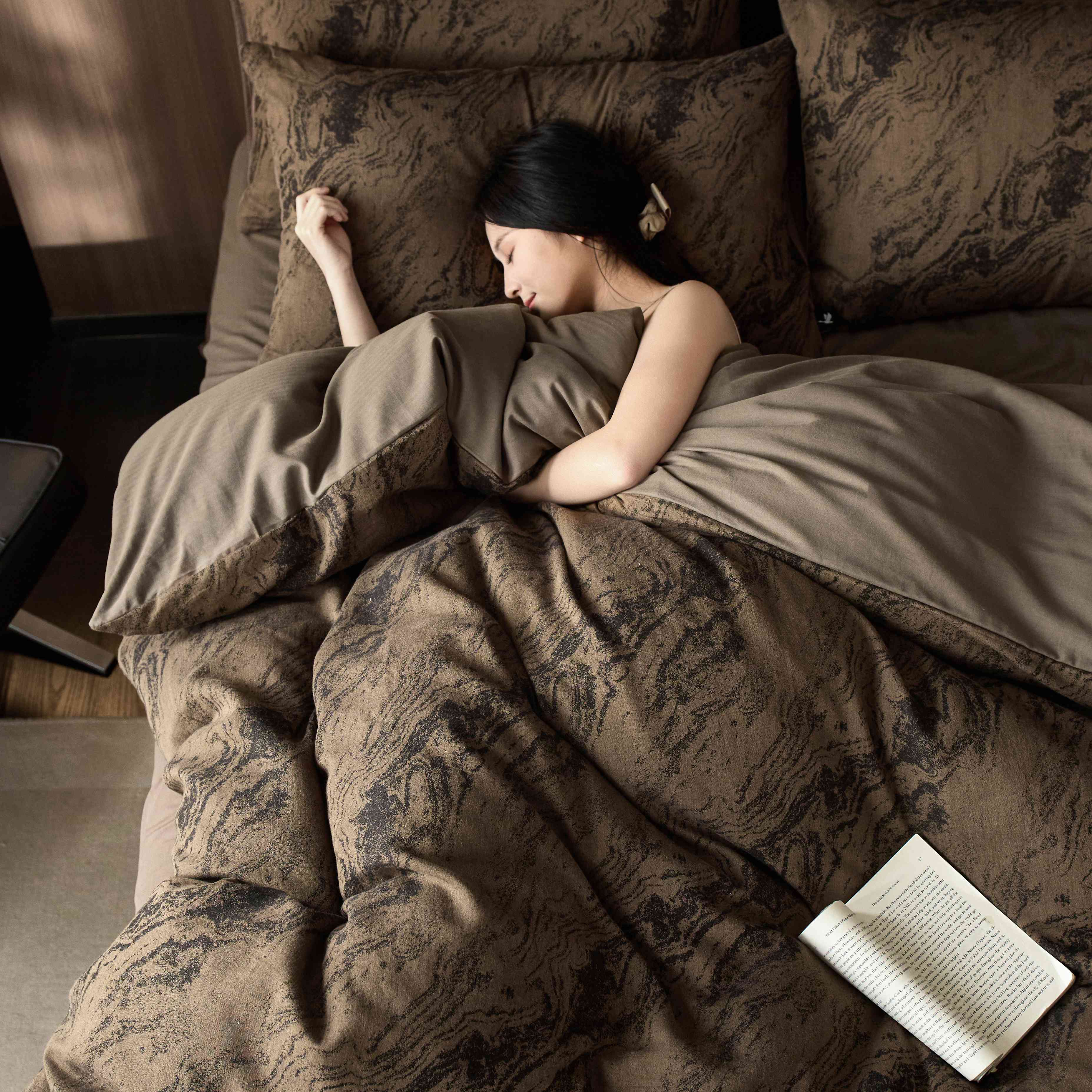 安莱生活 2025年全棉色织人字纹提花三系列四件套 镜花园-咖