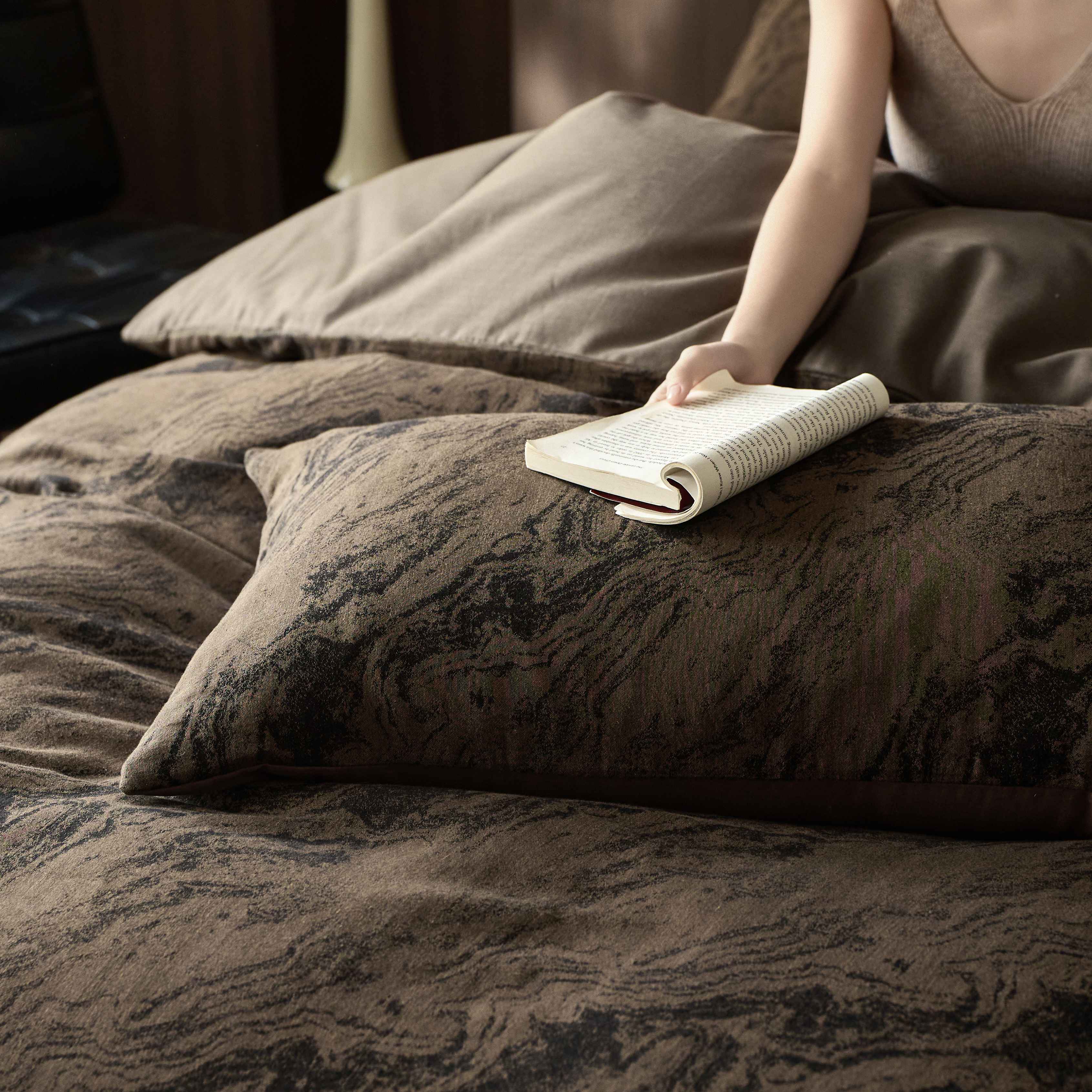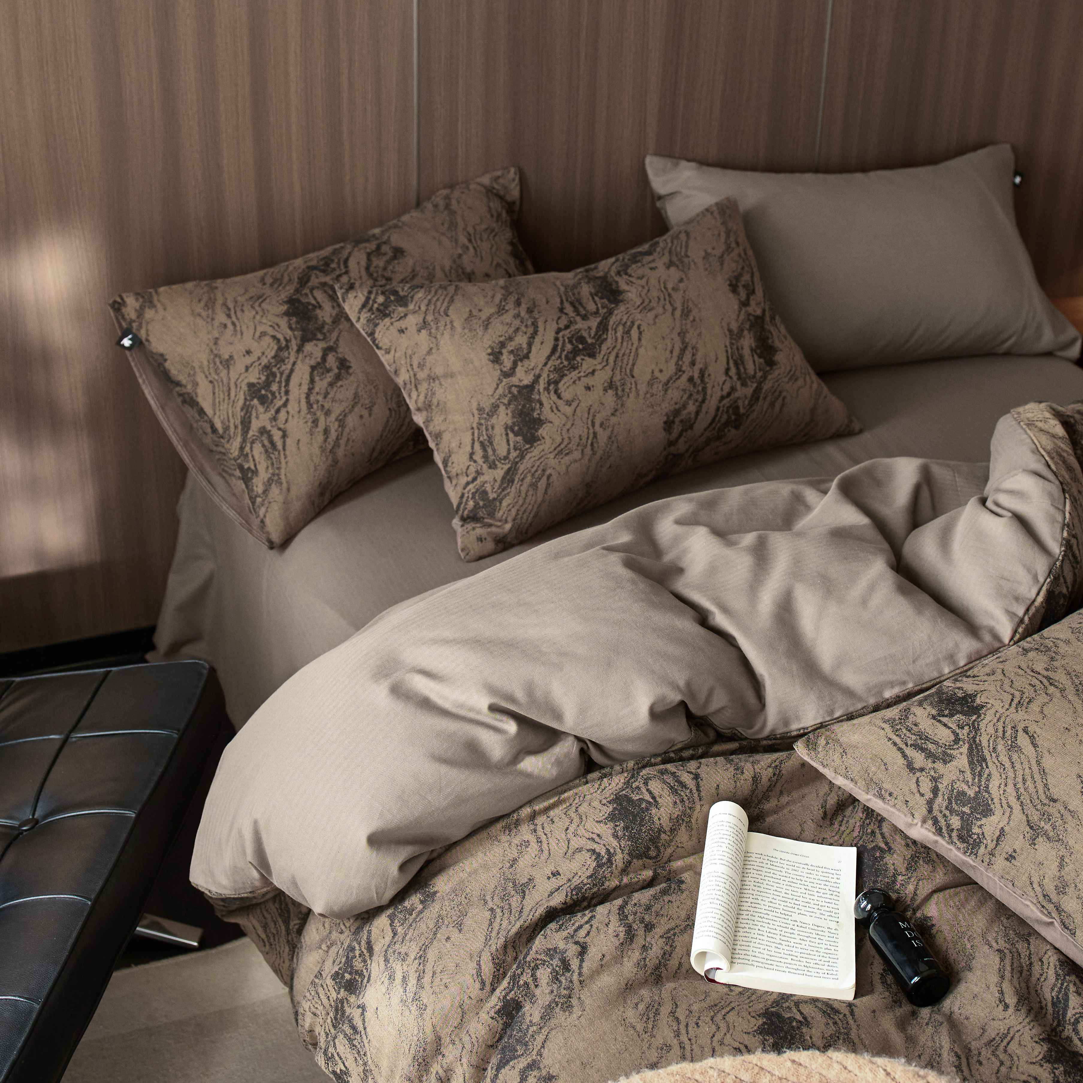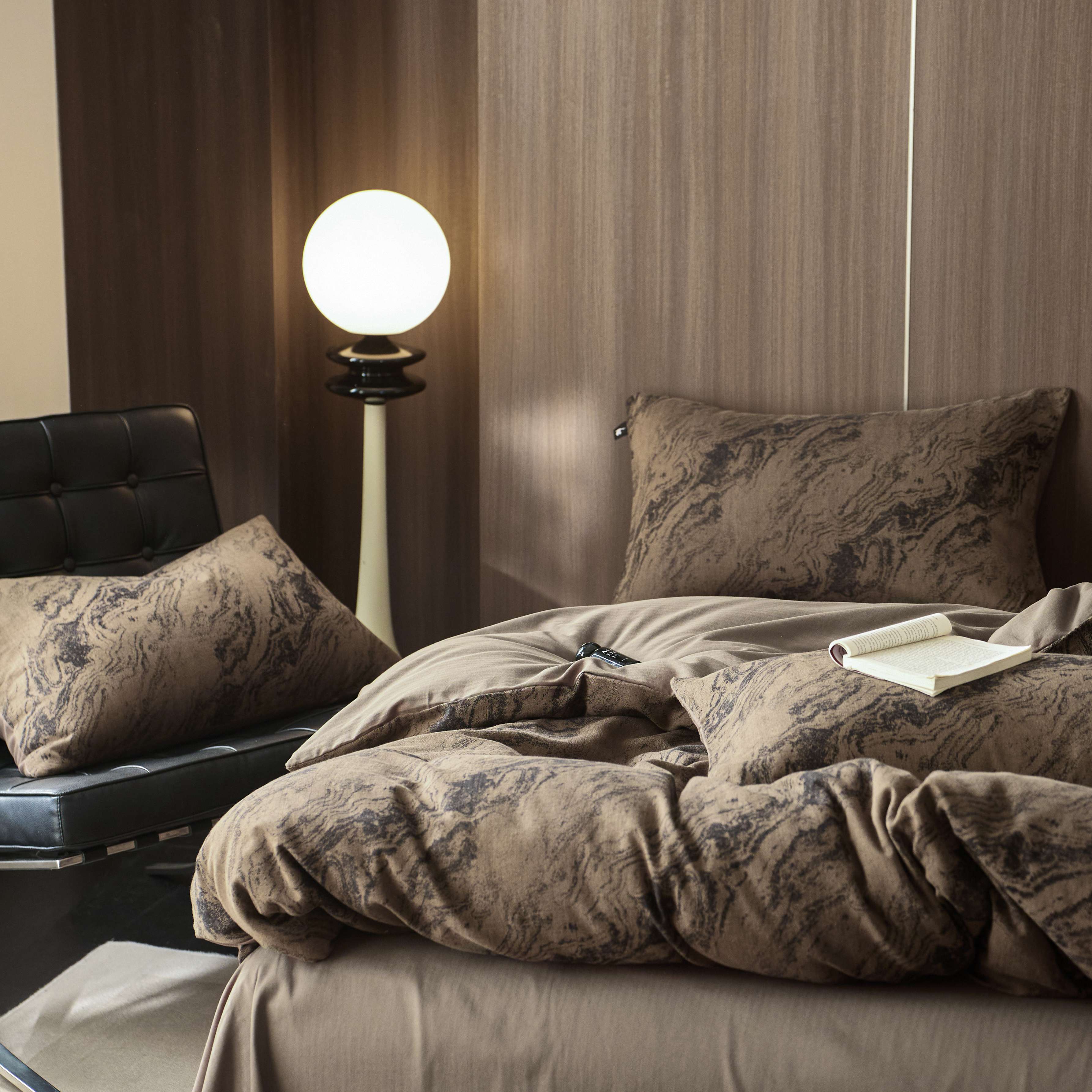 安莱生活 2025年全棉色织人字纹提花三系列四件套 镜花园-咖