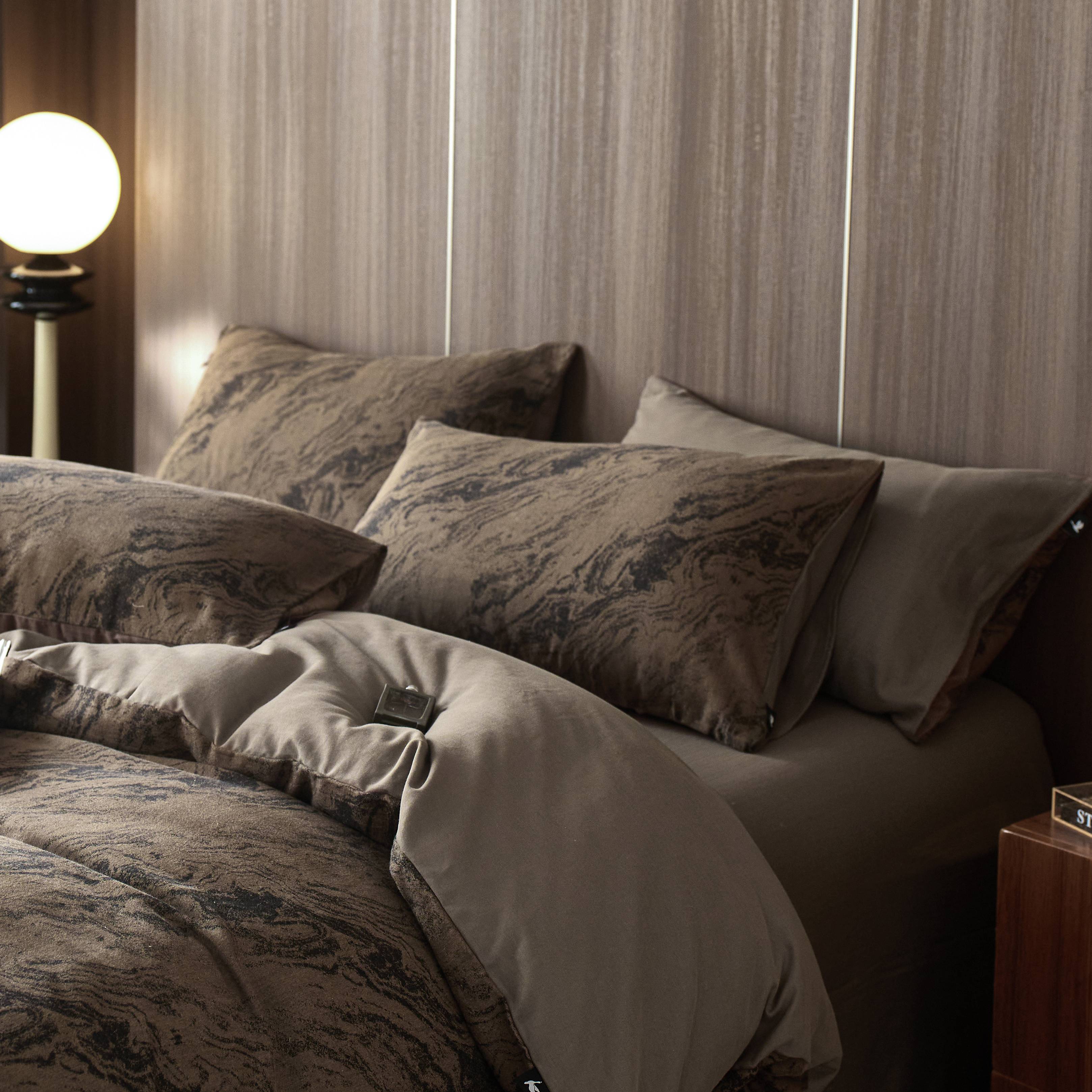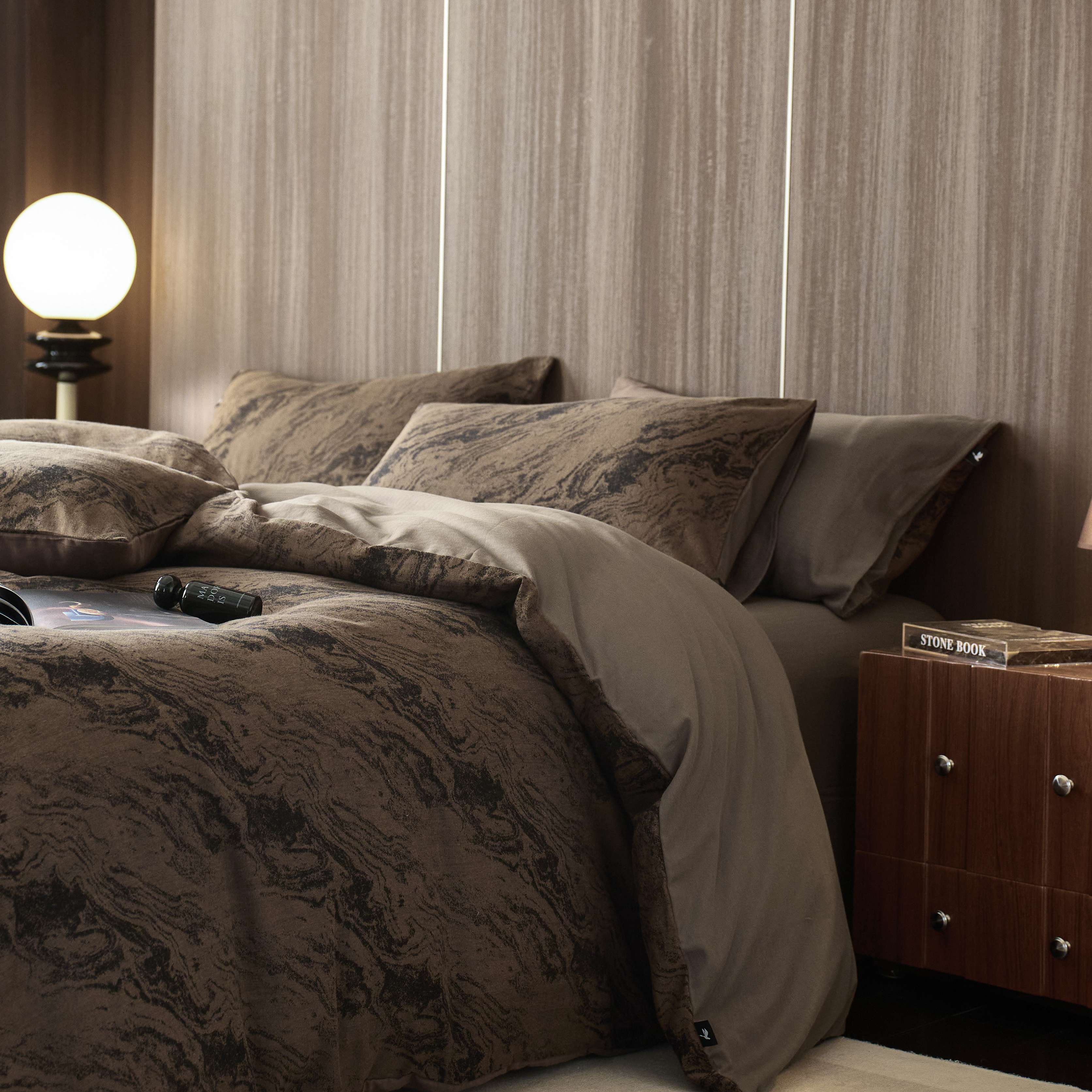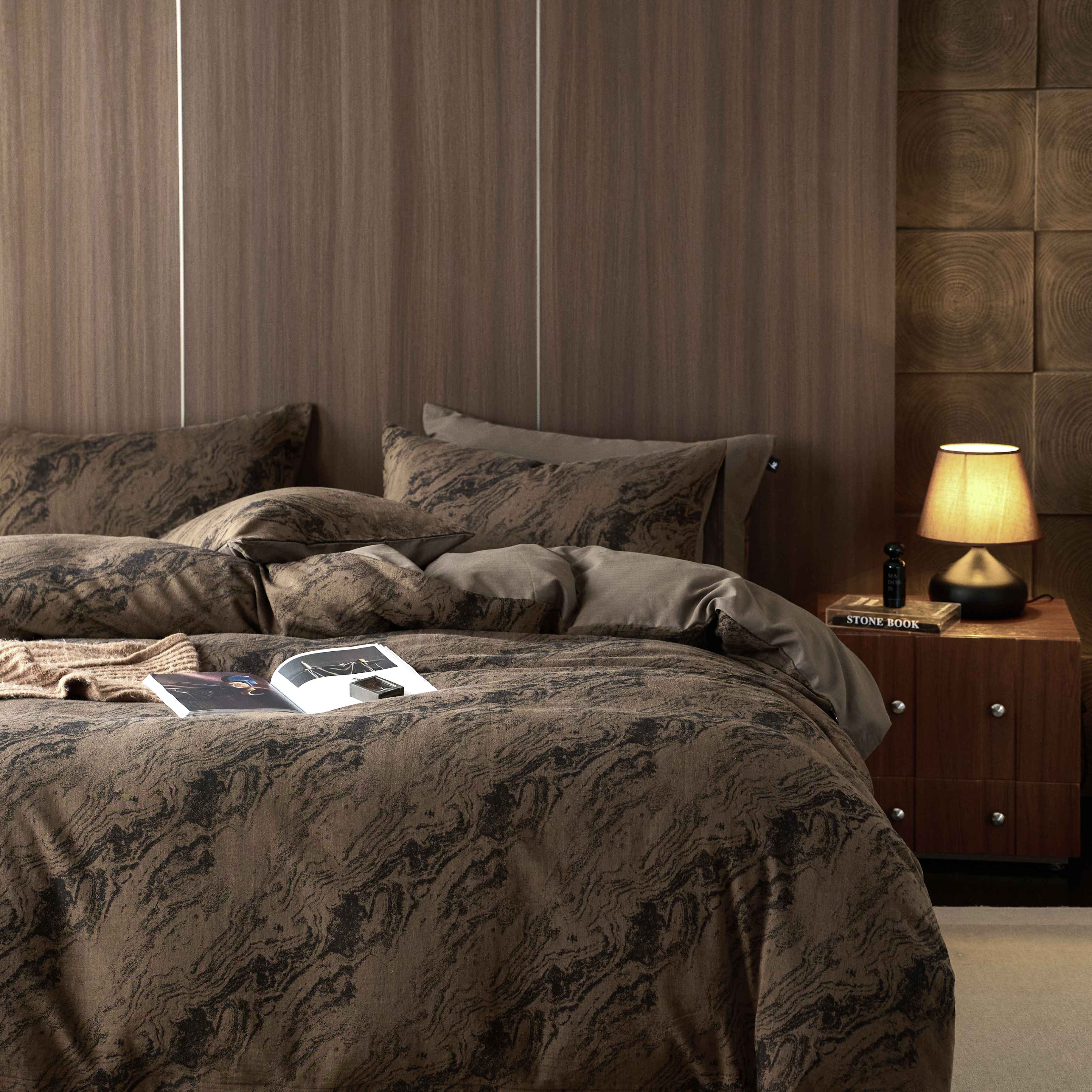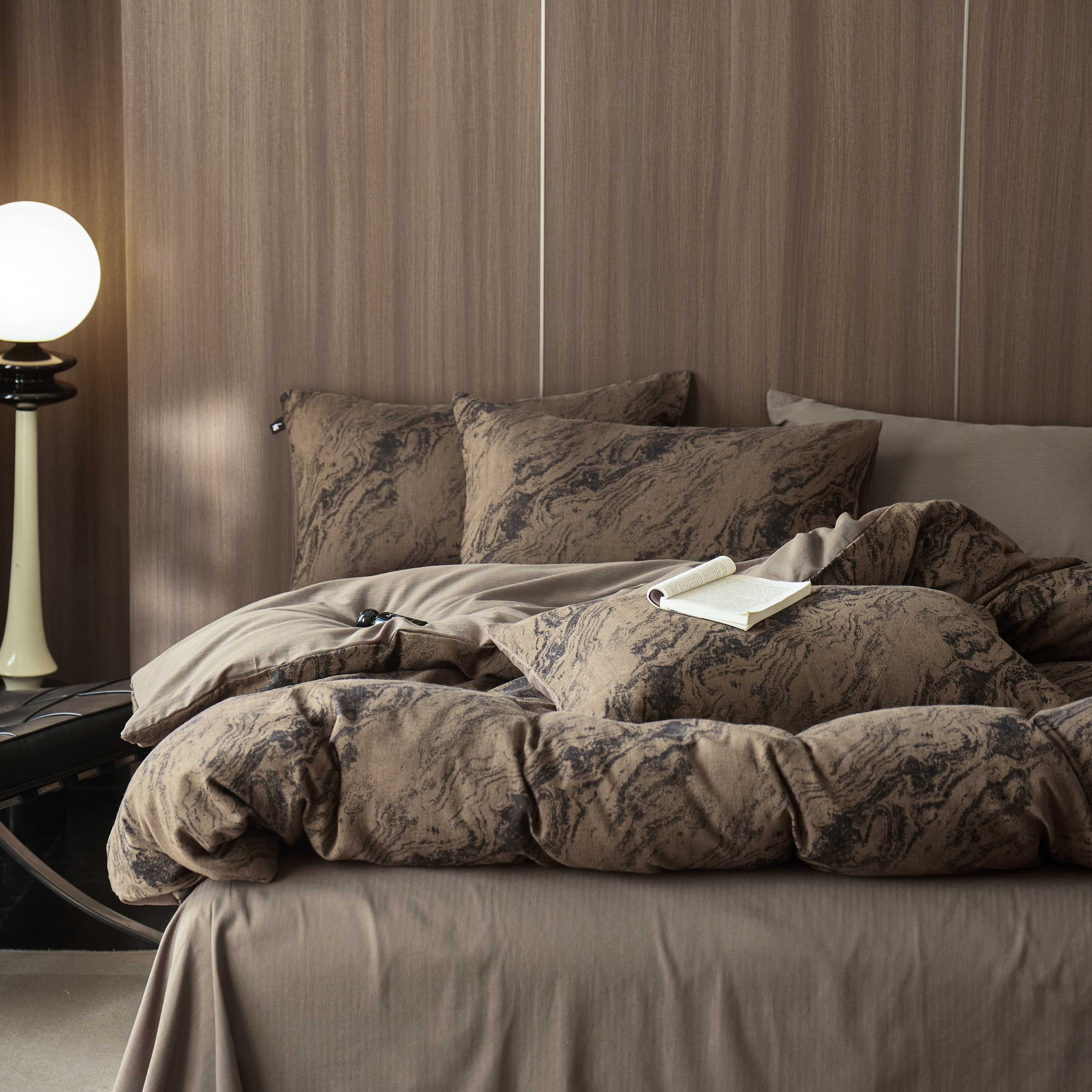 安莱生活 2025年全棉色织人字纹提花三系列四件套 镜花园-咖
