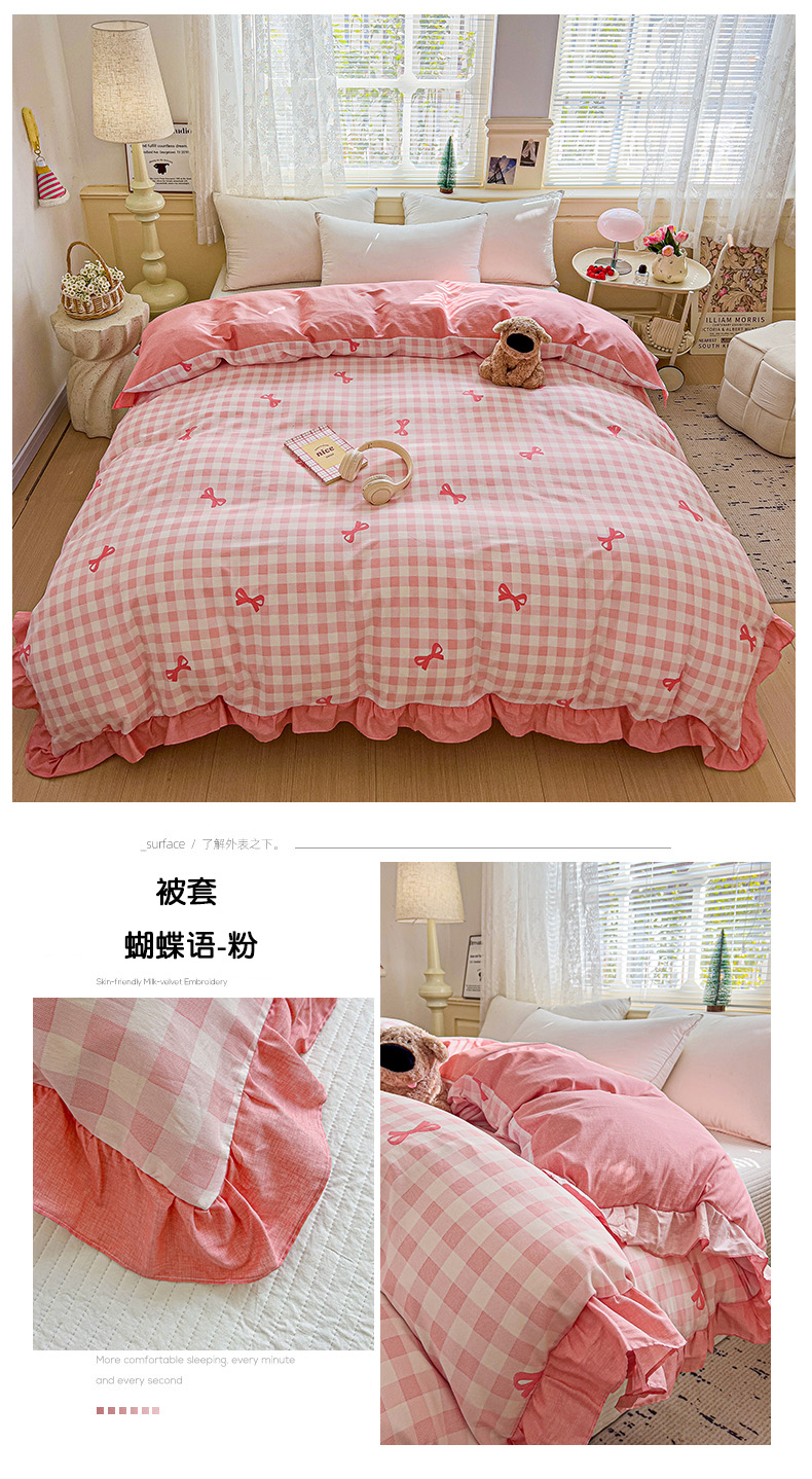 忆生活家纺 2025新款韩版全棉花边款-单被套系列 蝴蝶语-粉