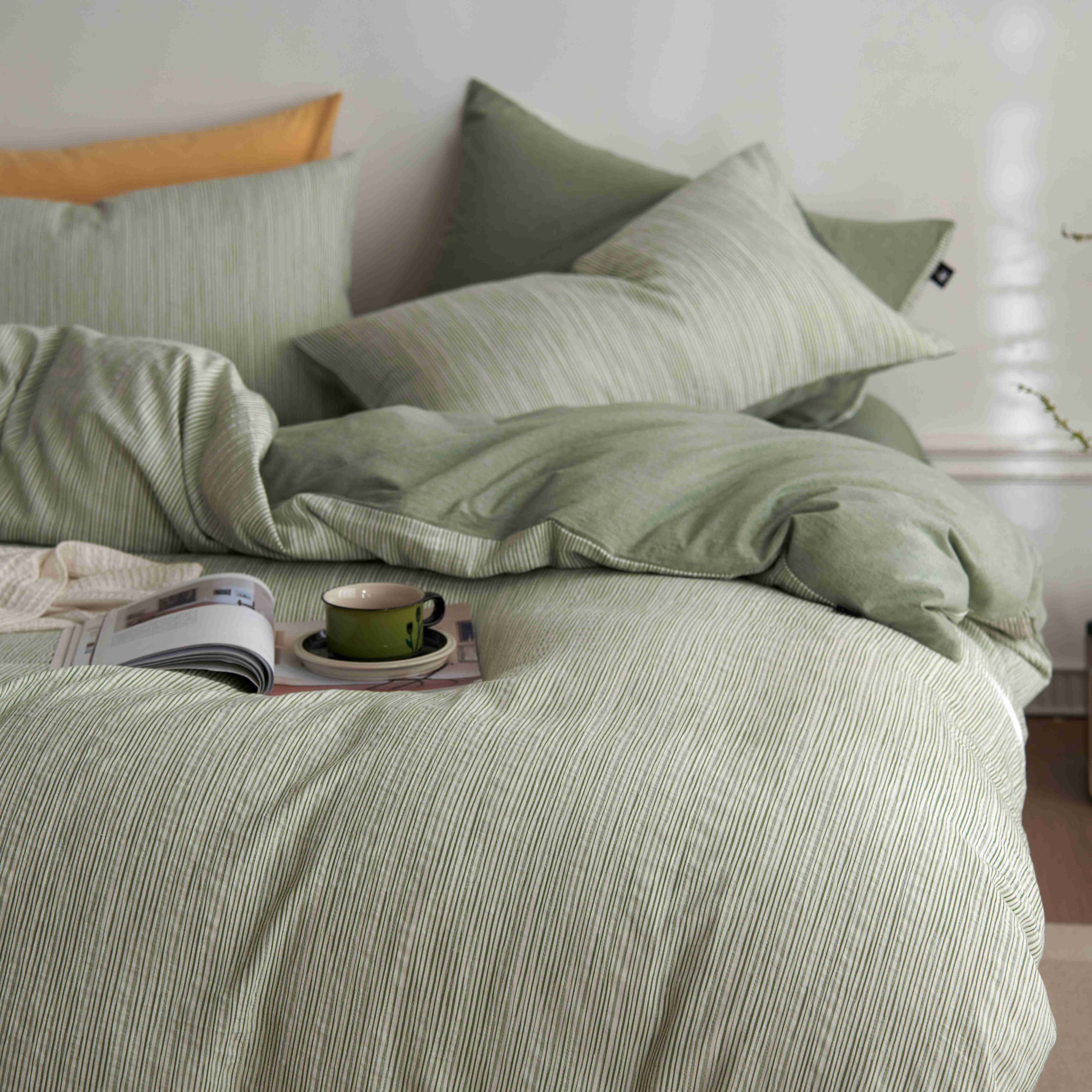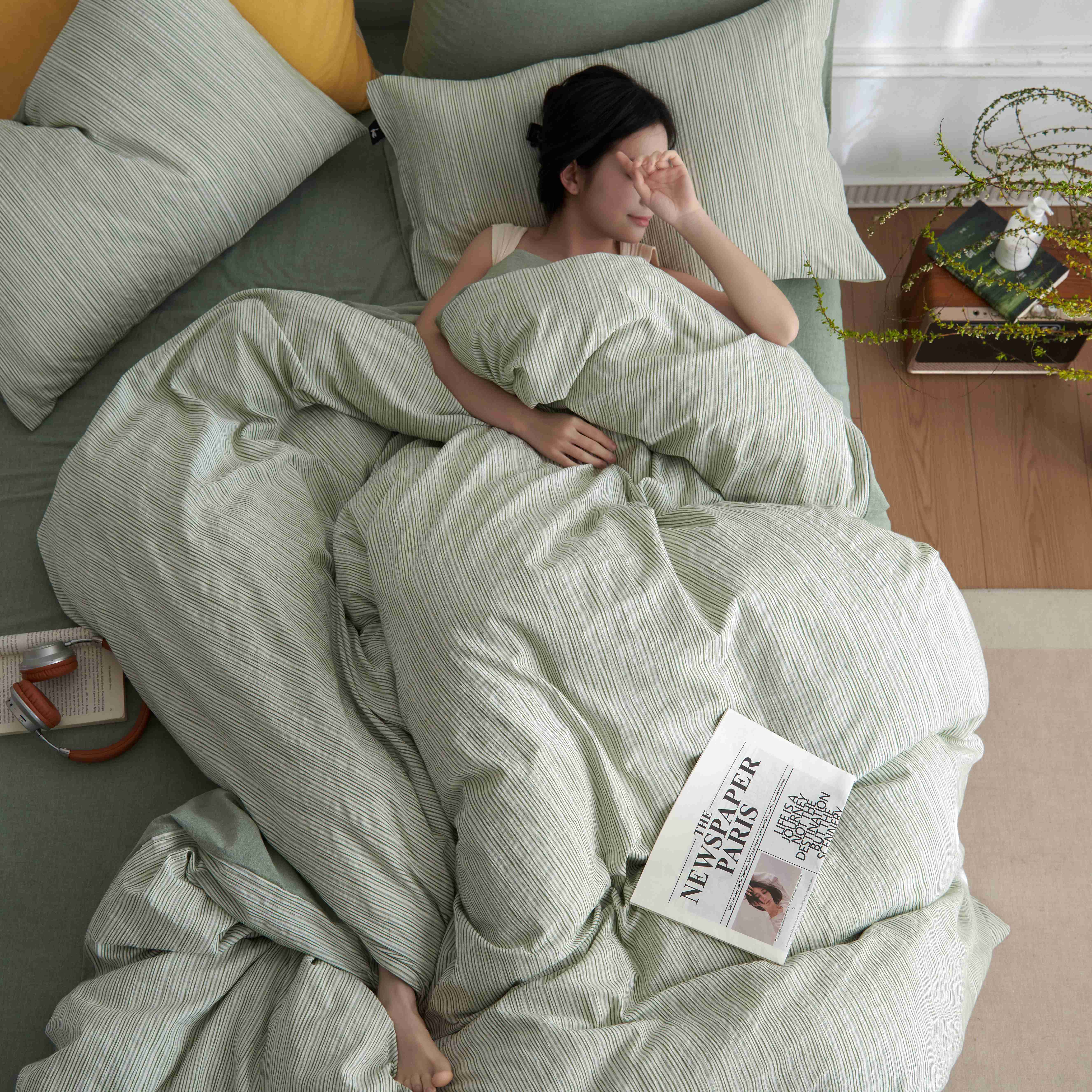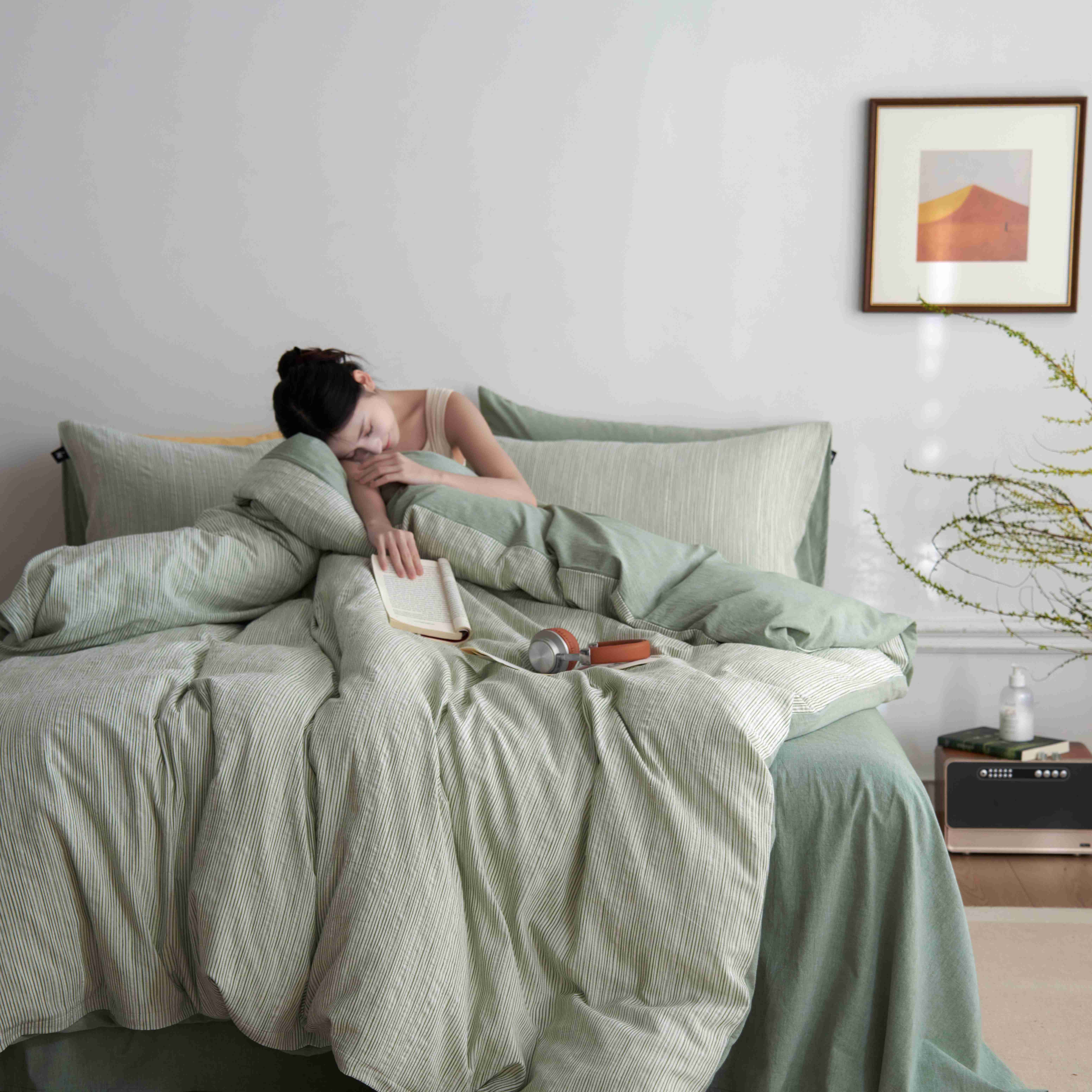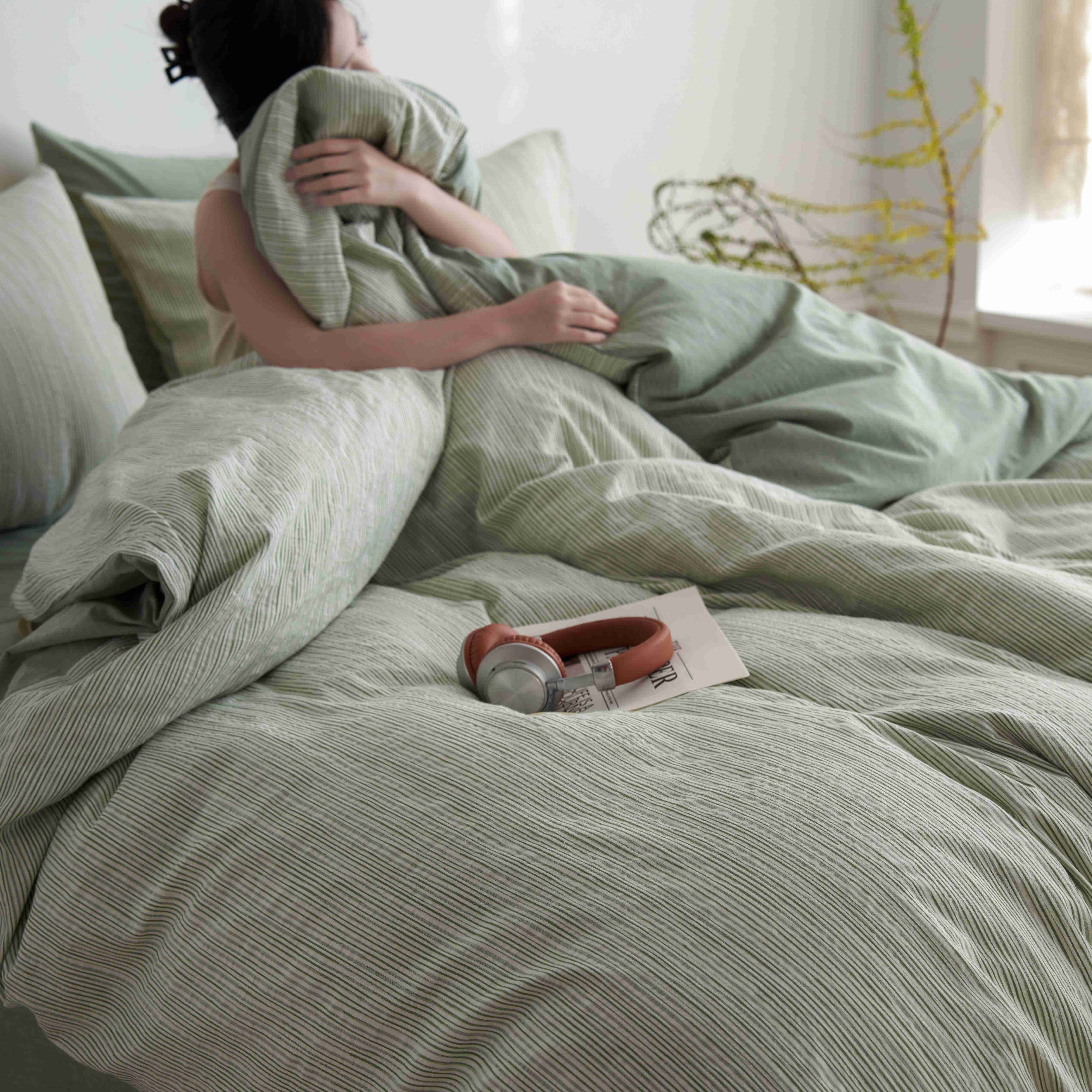 安莱生活 2025新款60s色织大提花秘境条纹四件套系列 绿白混条