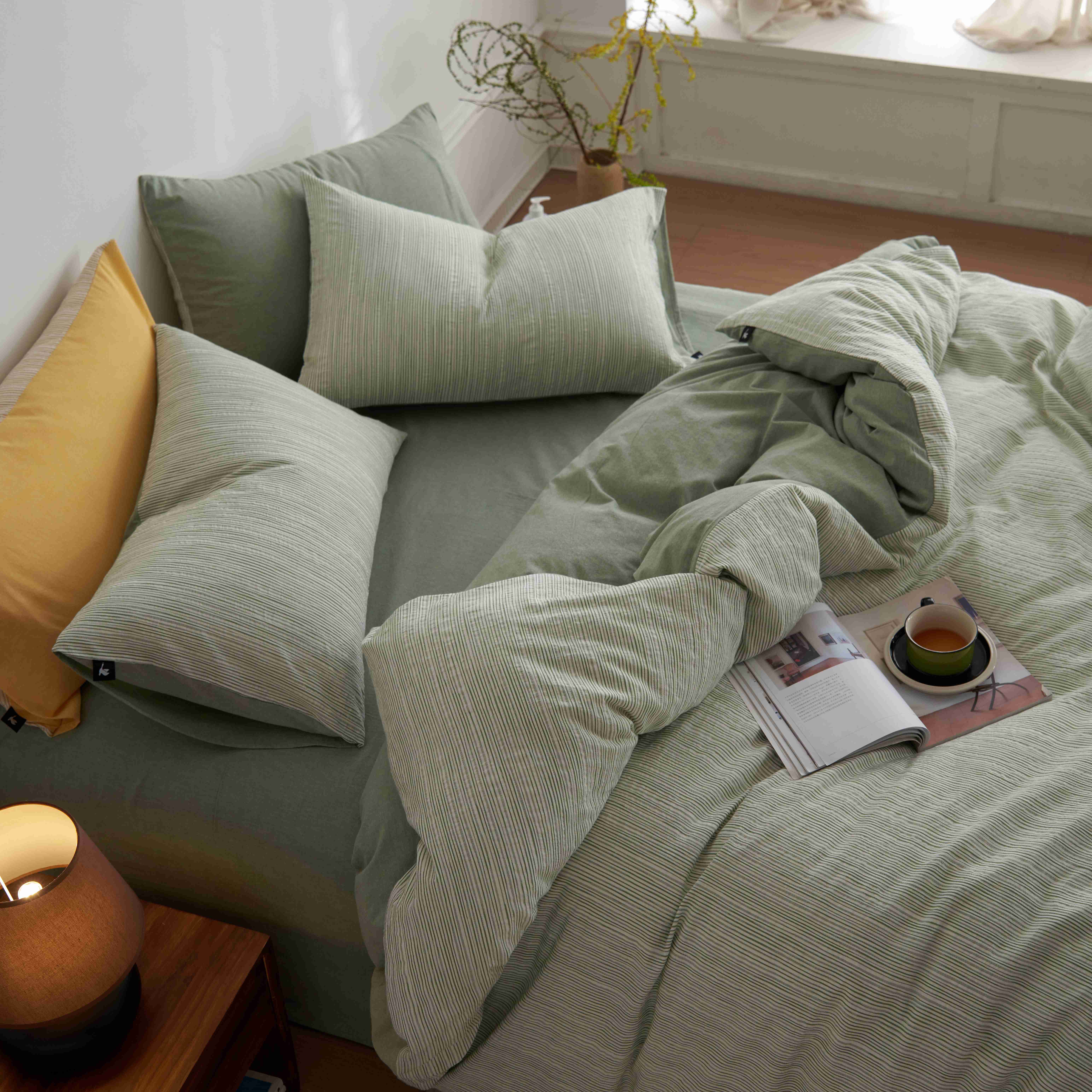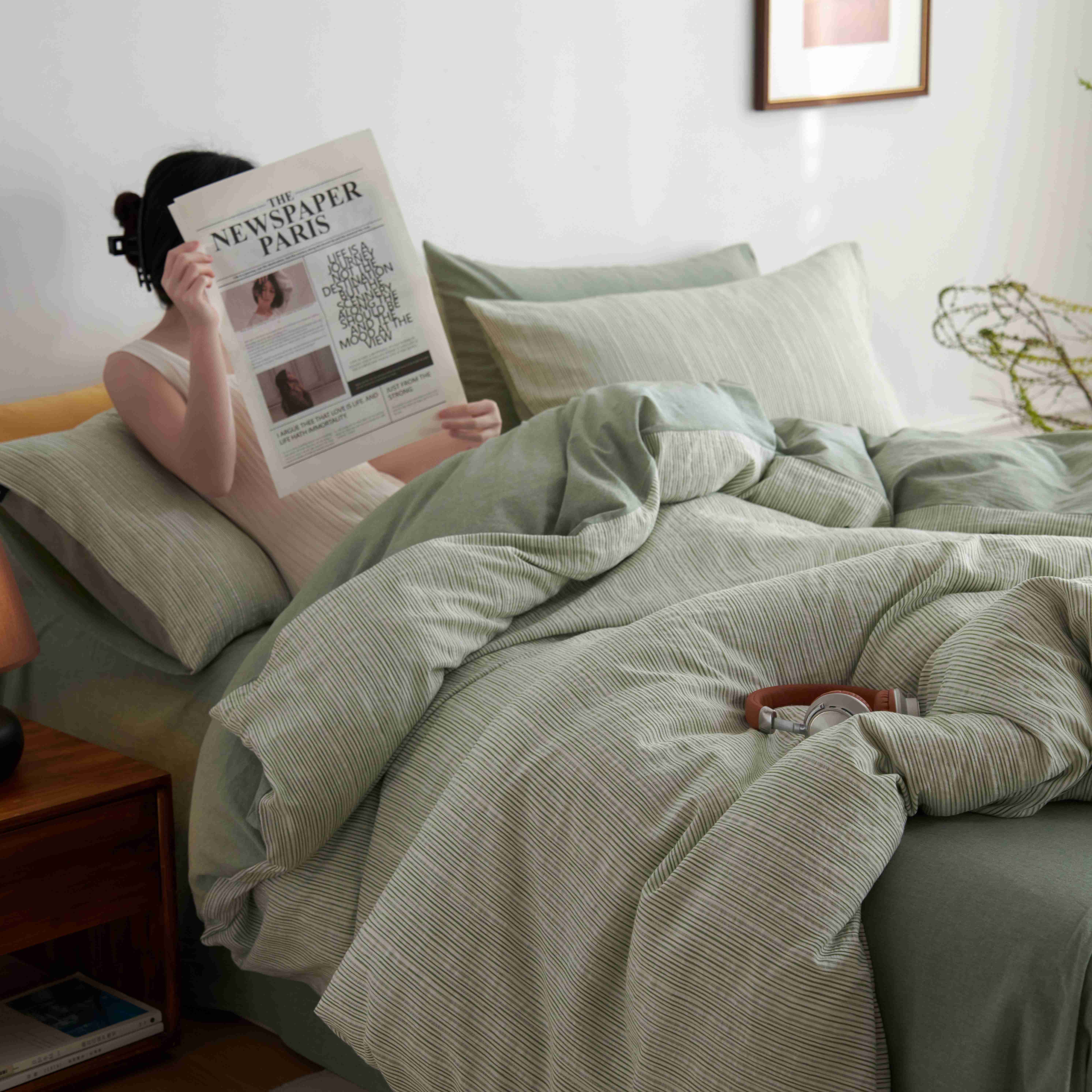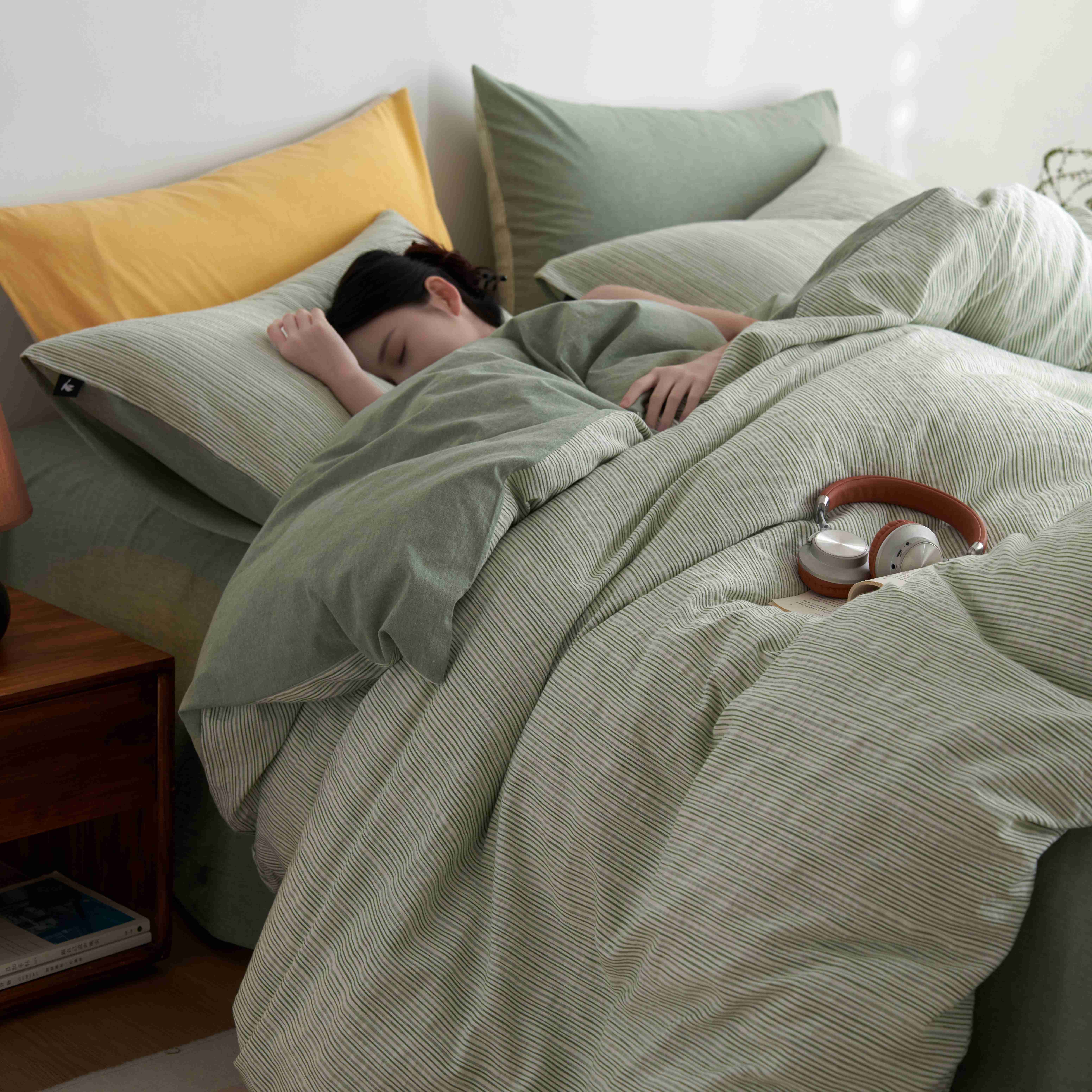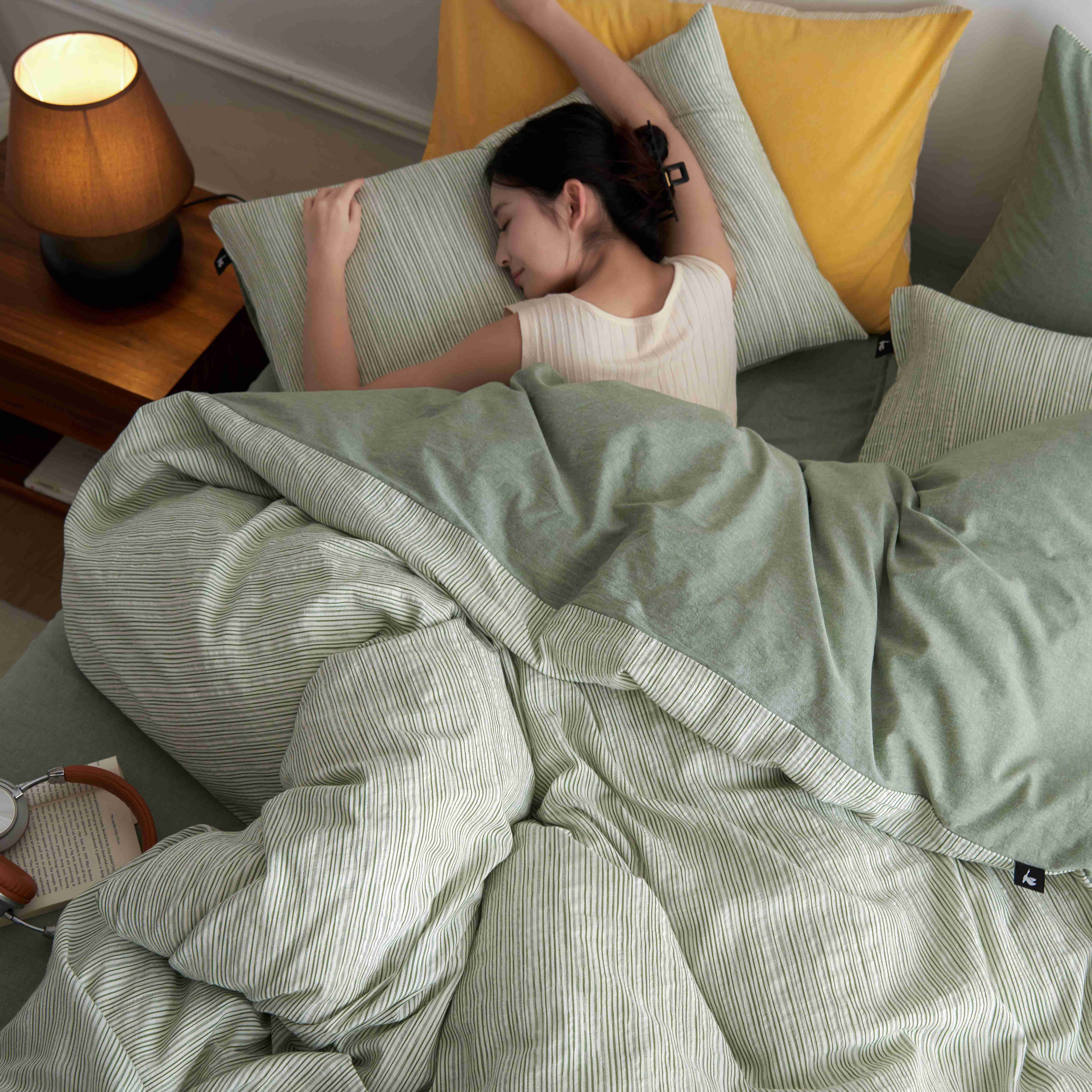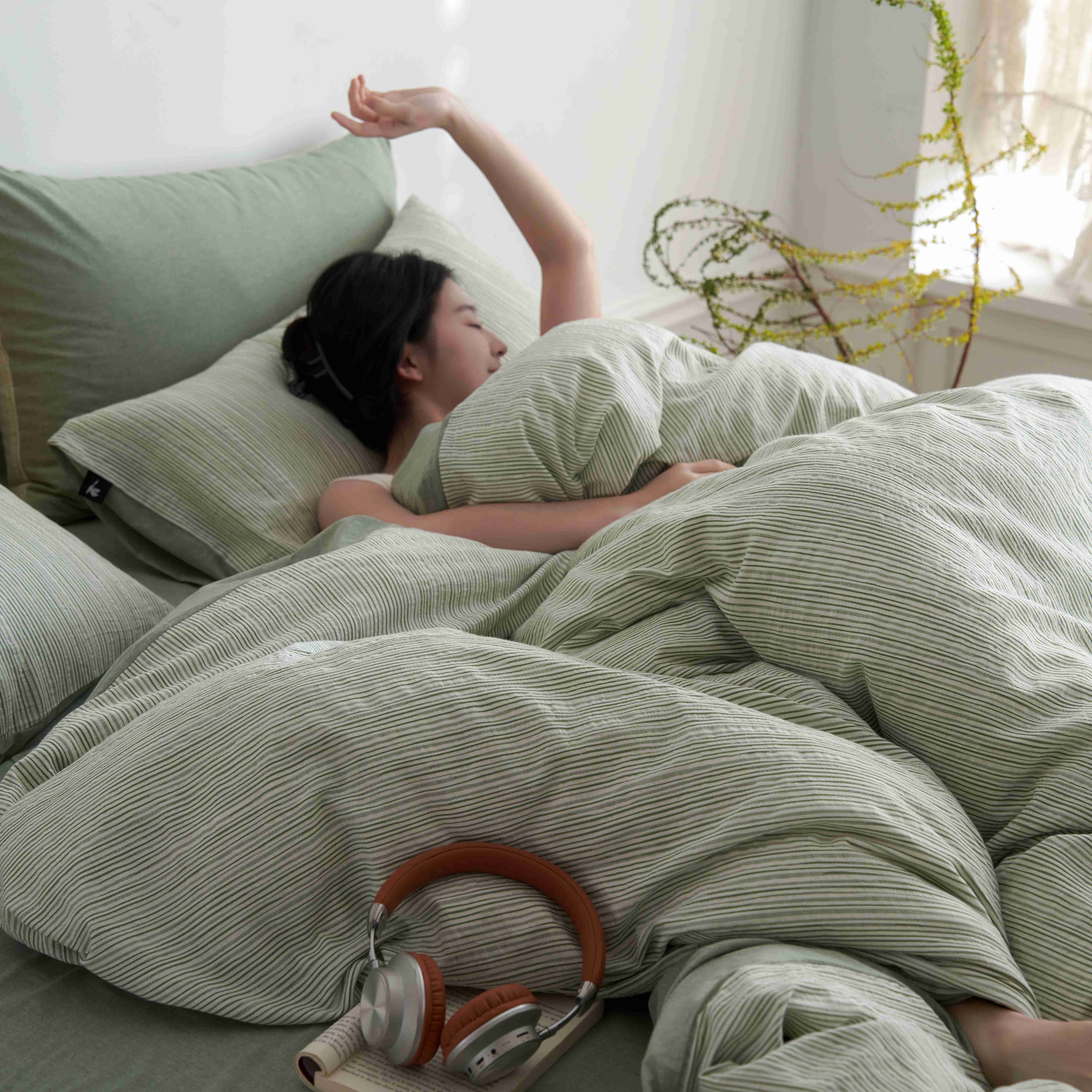 安莱生活 2025新款60s色织大提花秘境条纹四件套系列 绿白混条