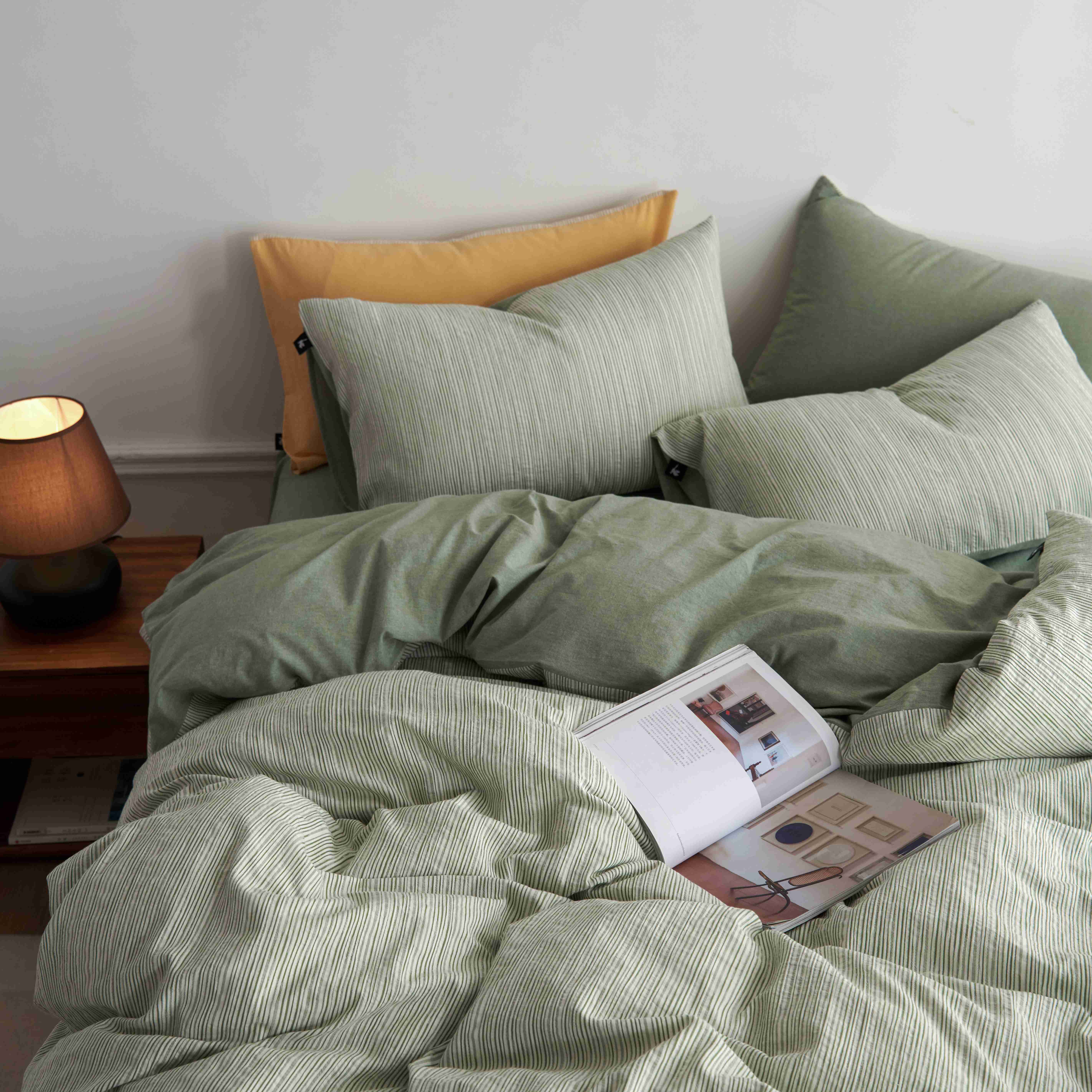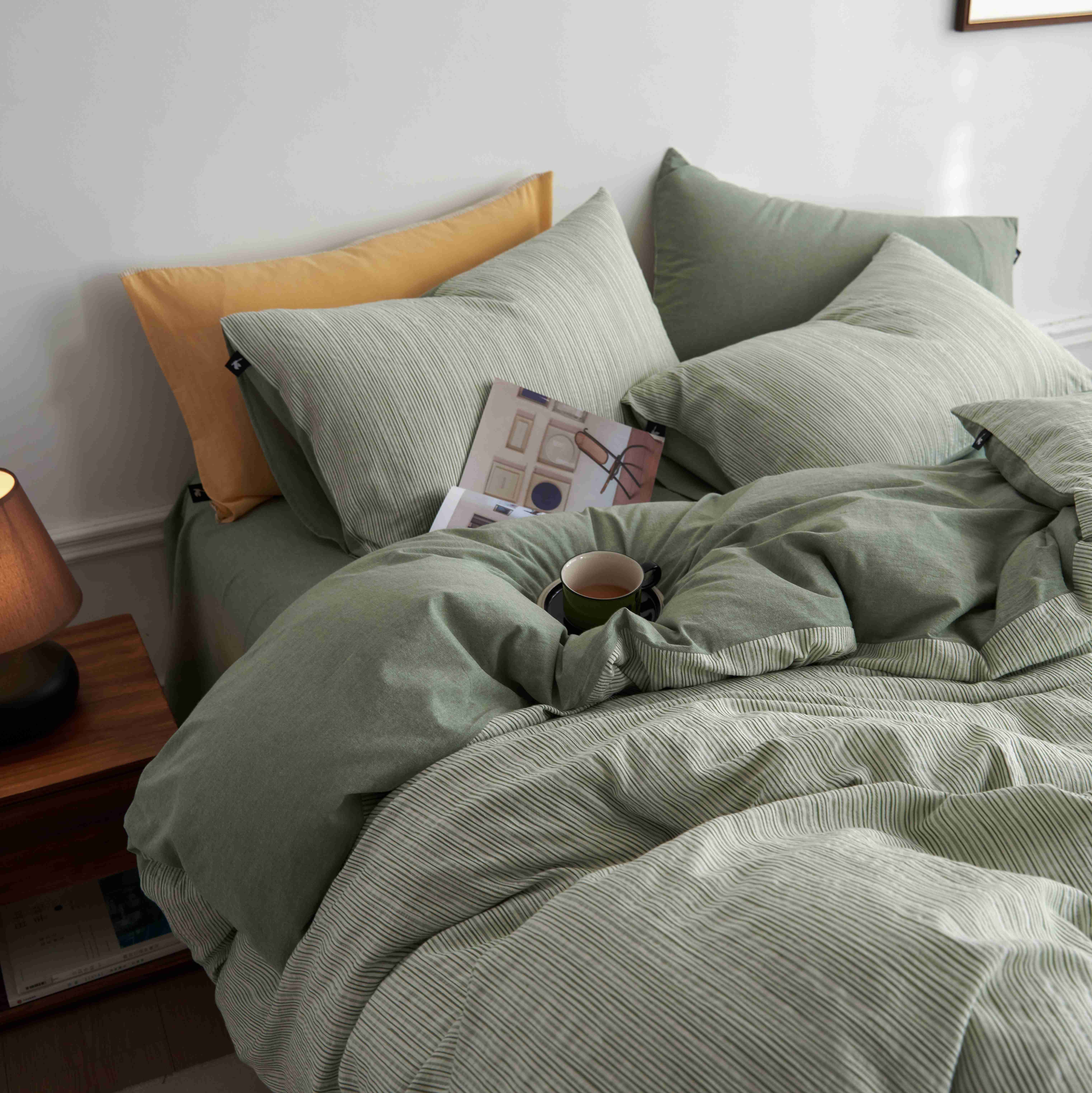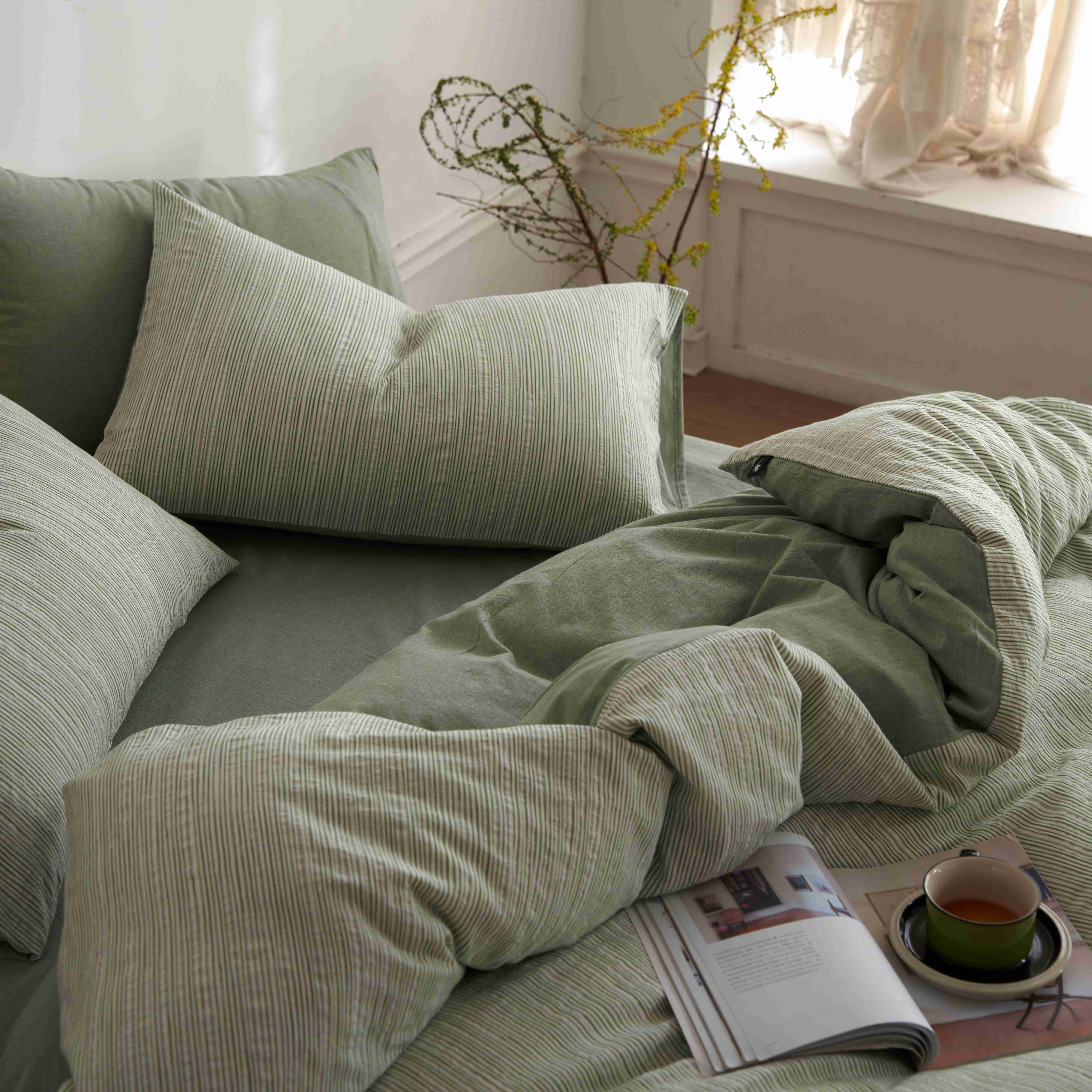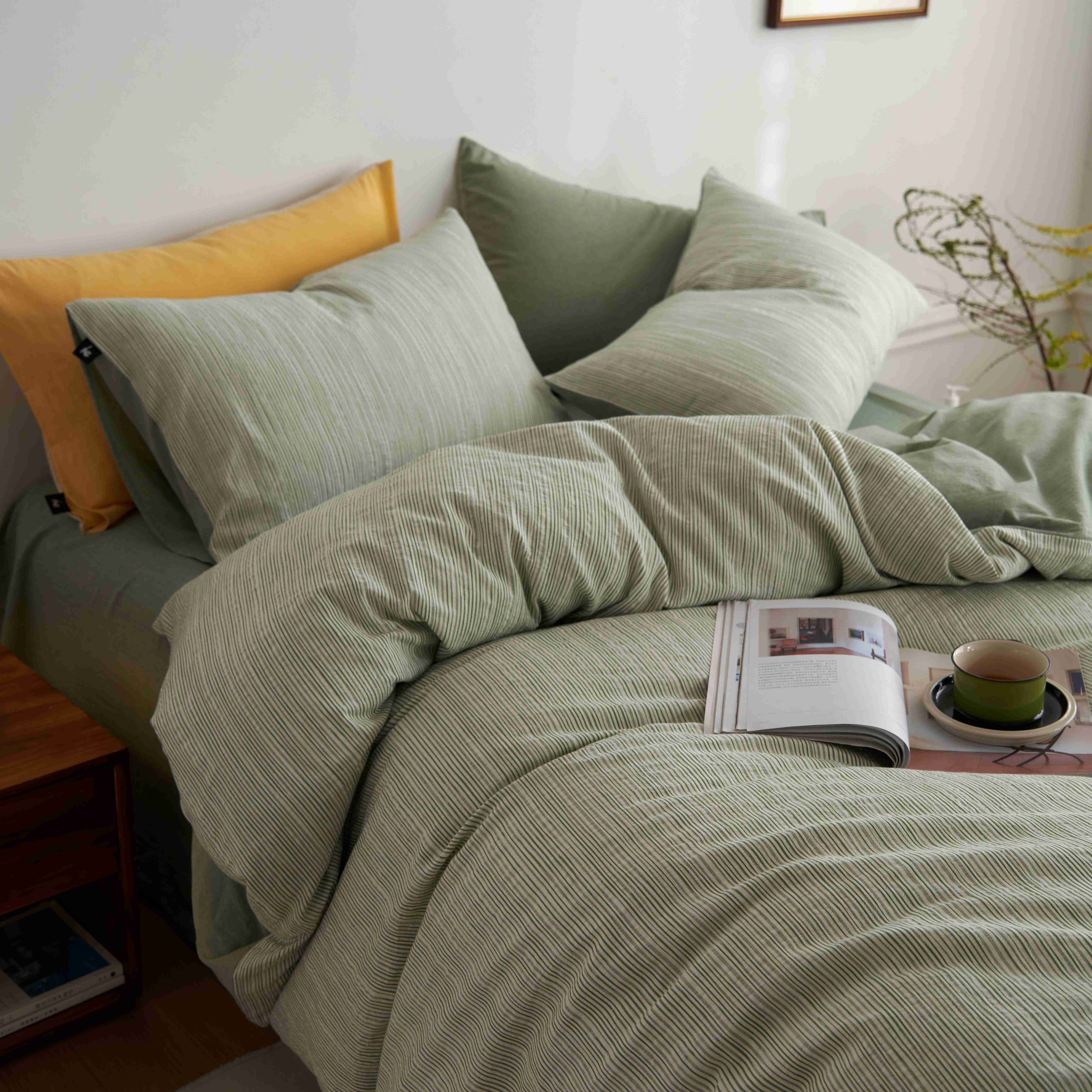安莱生活 2025新款60s色织大提花秘境条纹四件套系列 绿白混条