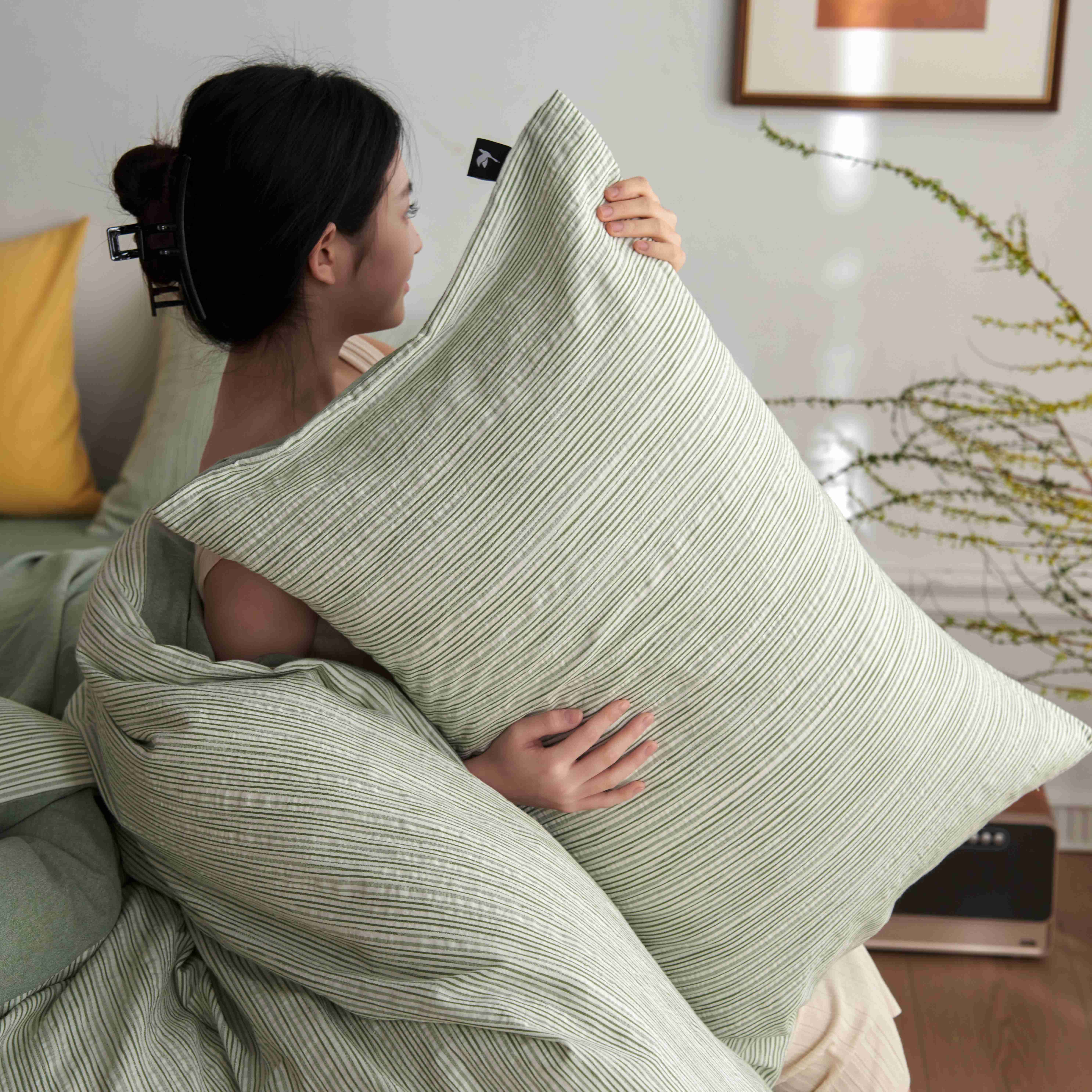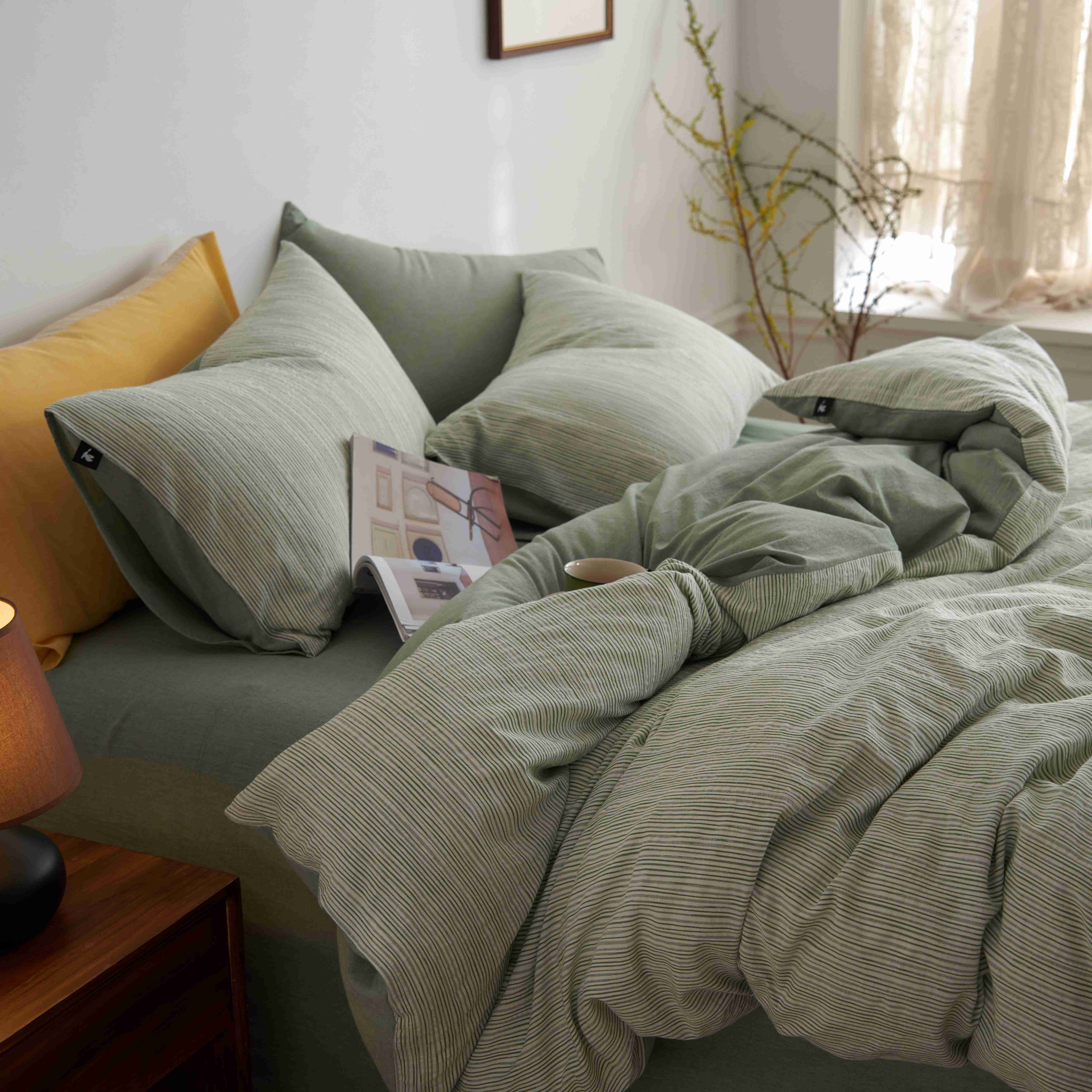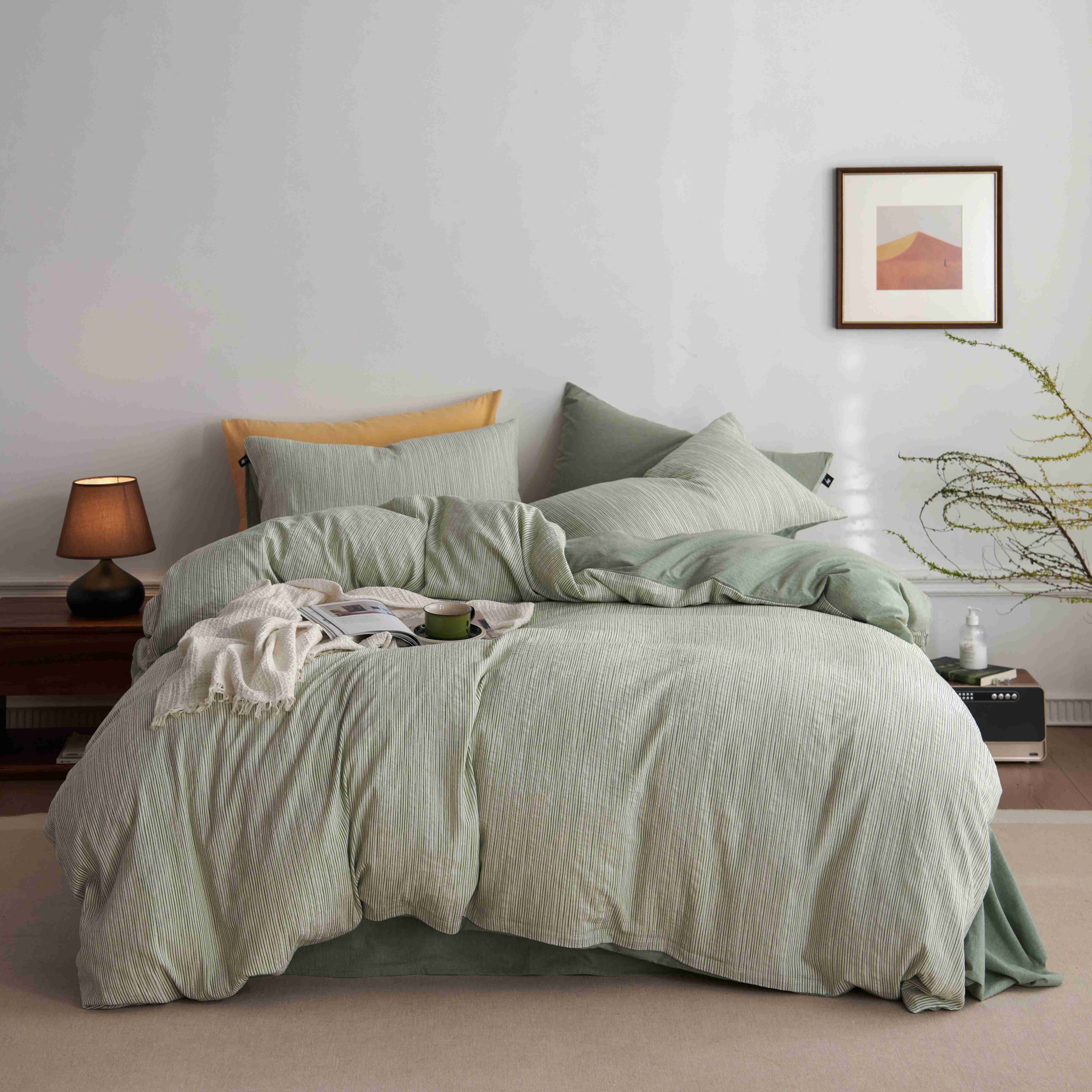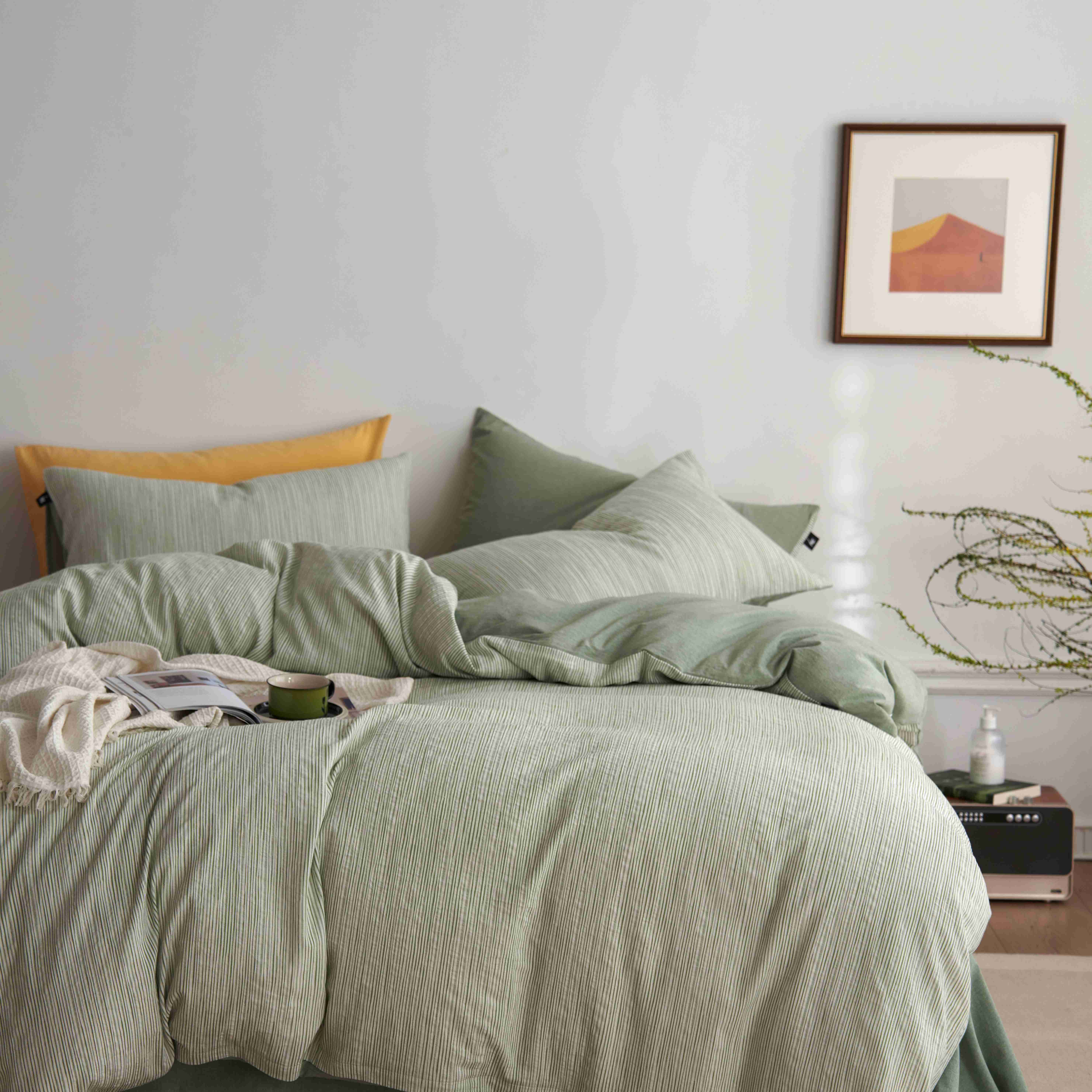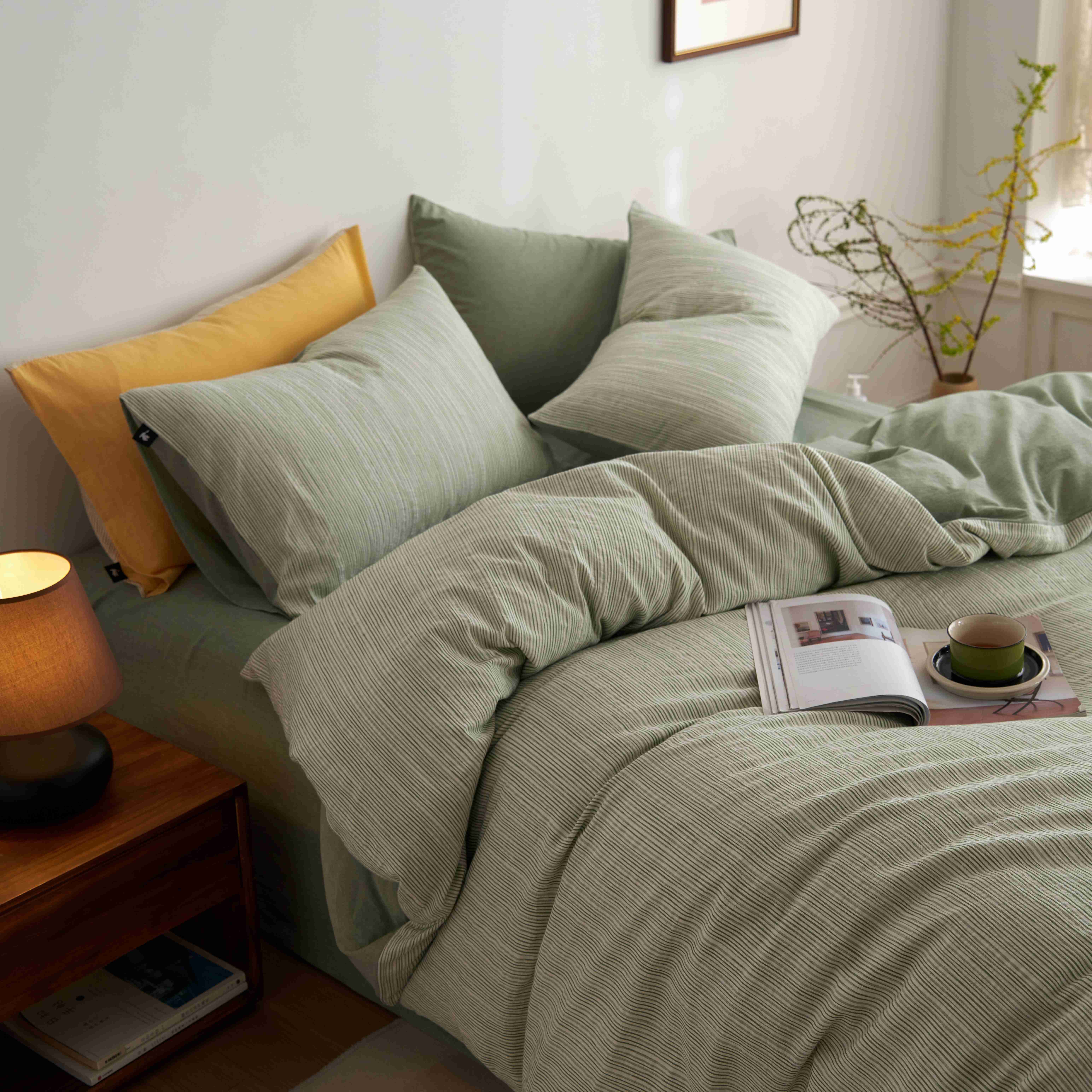 安莱生活 2025新款60s色织大提花秘境条纹四件套系列 绿白混条