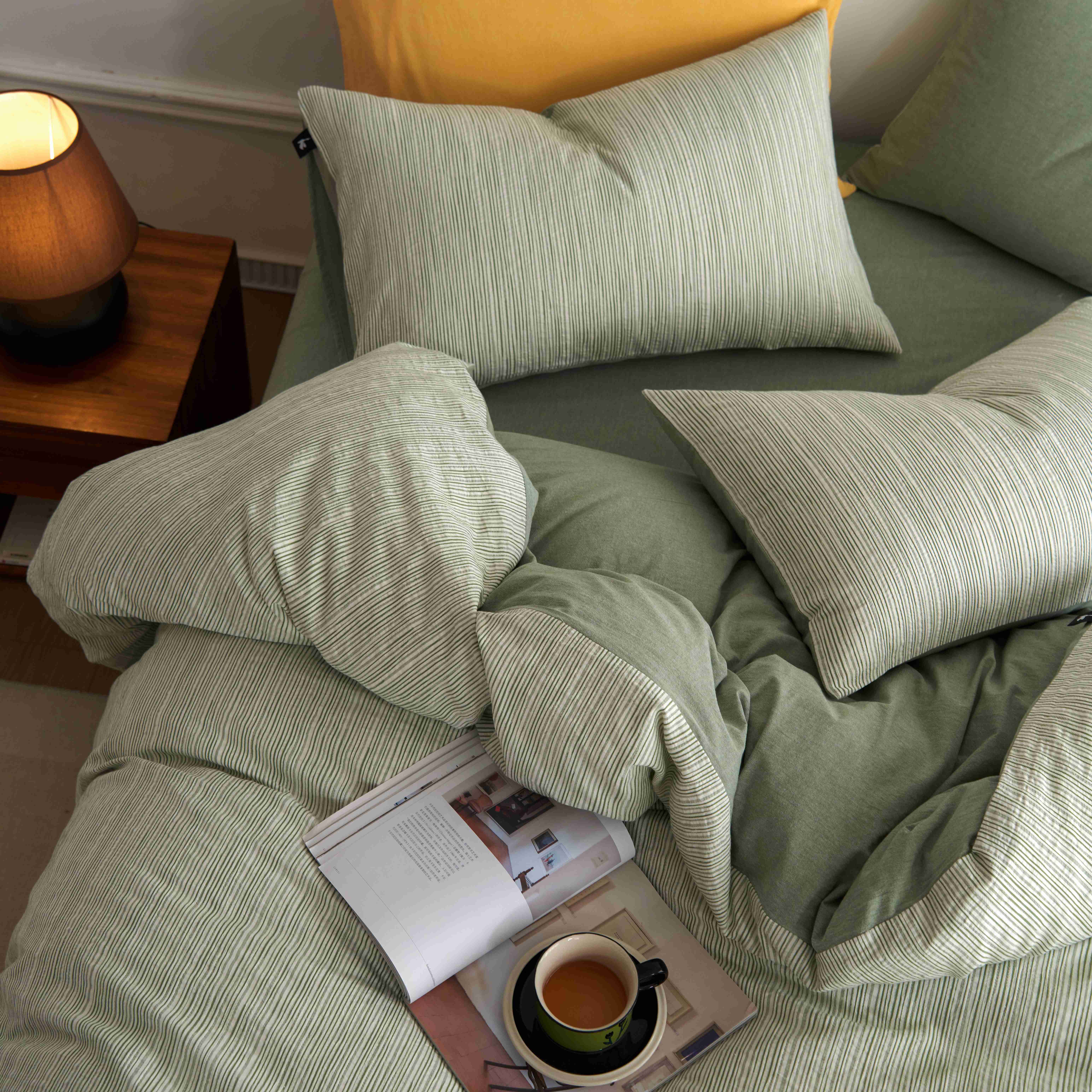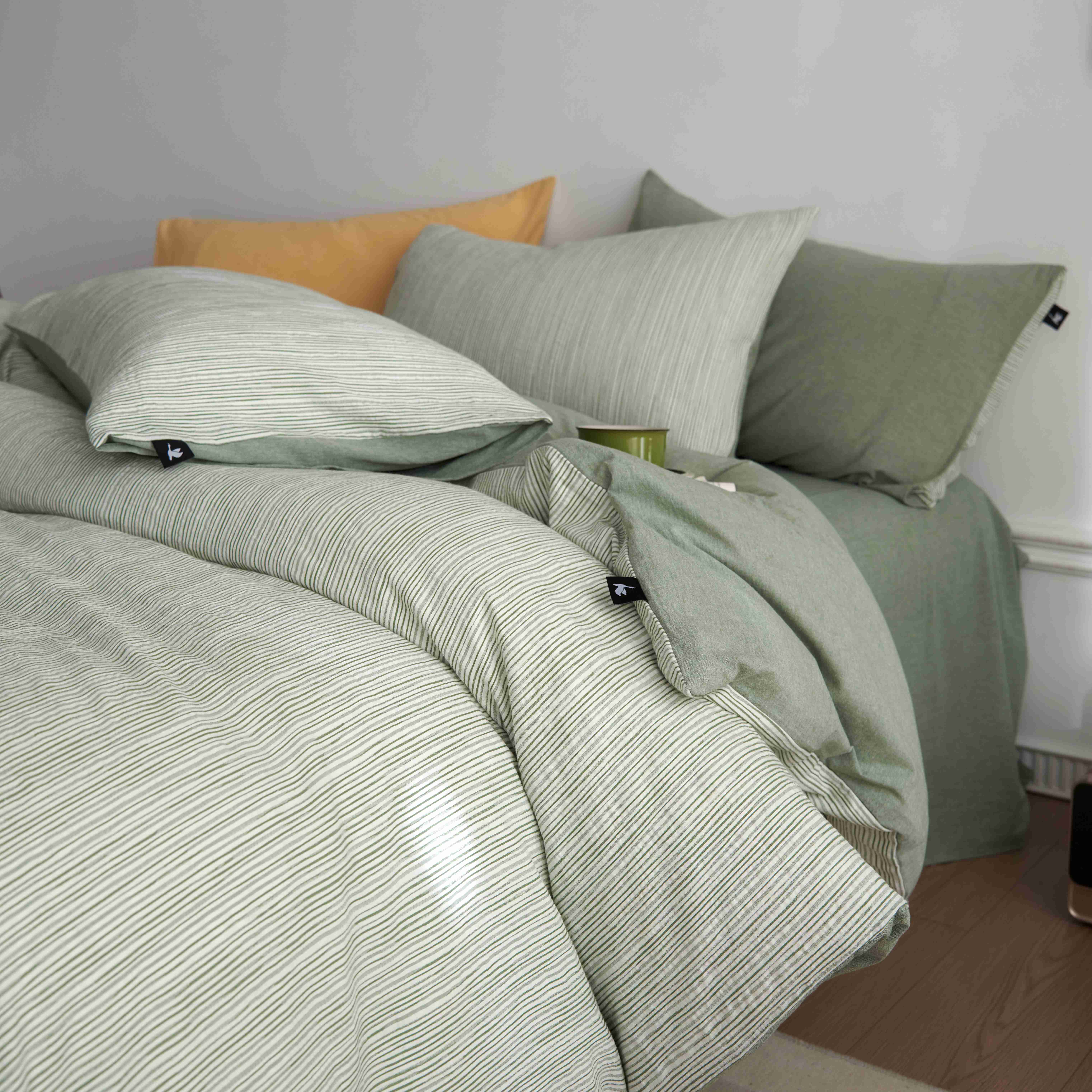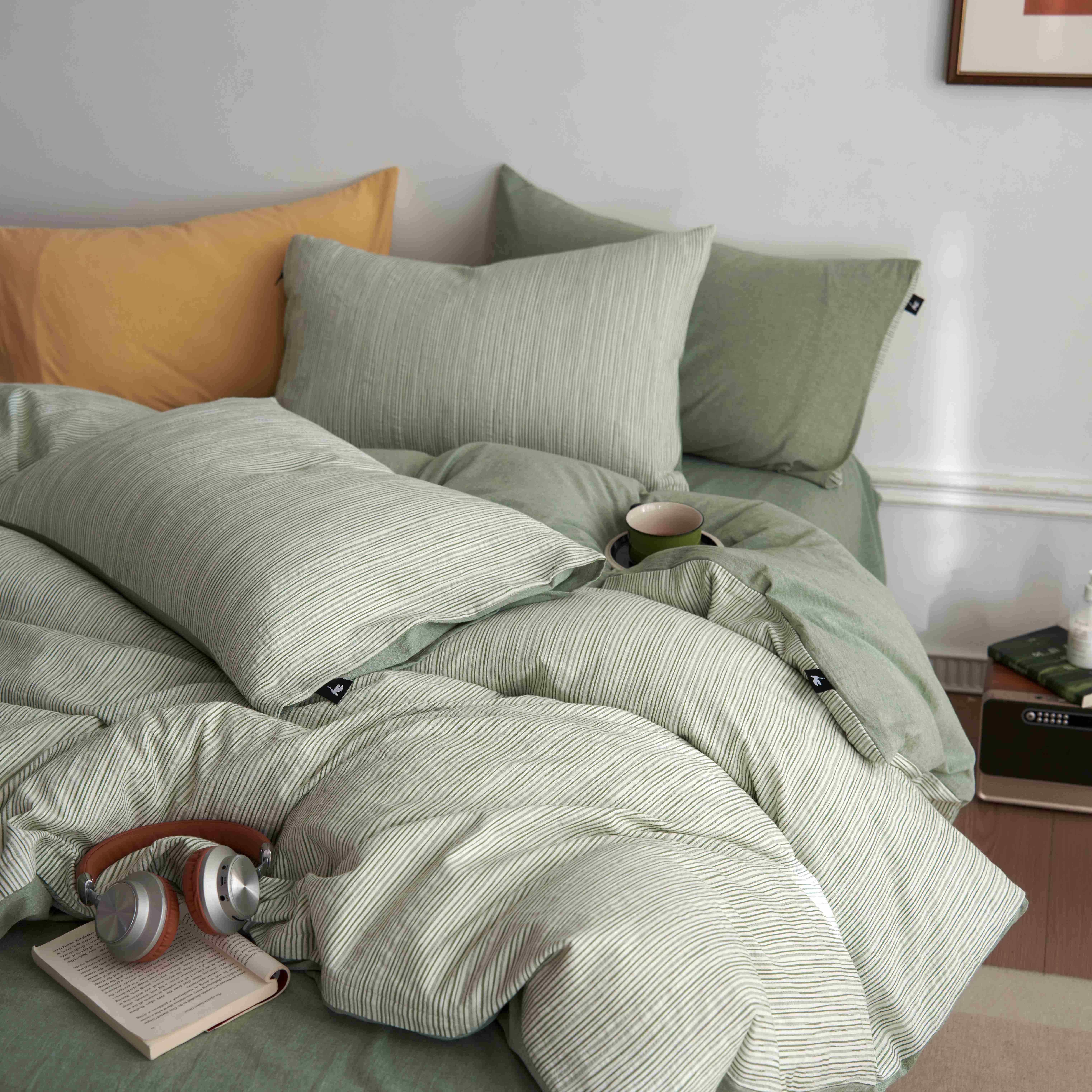 商品名称:安莱生活 2025新款60s色织大提花秘境条纹四件套系列 绿白混条