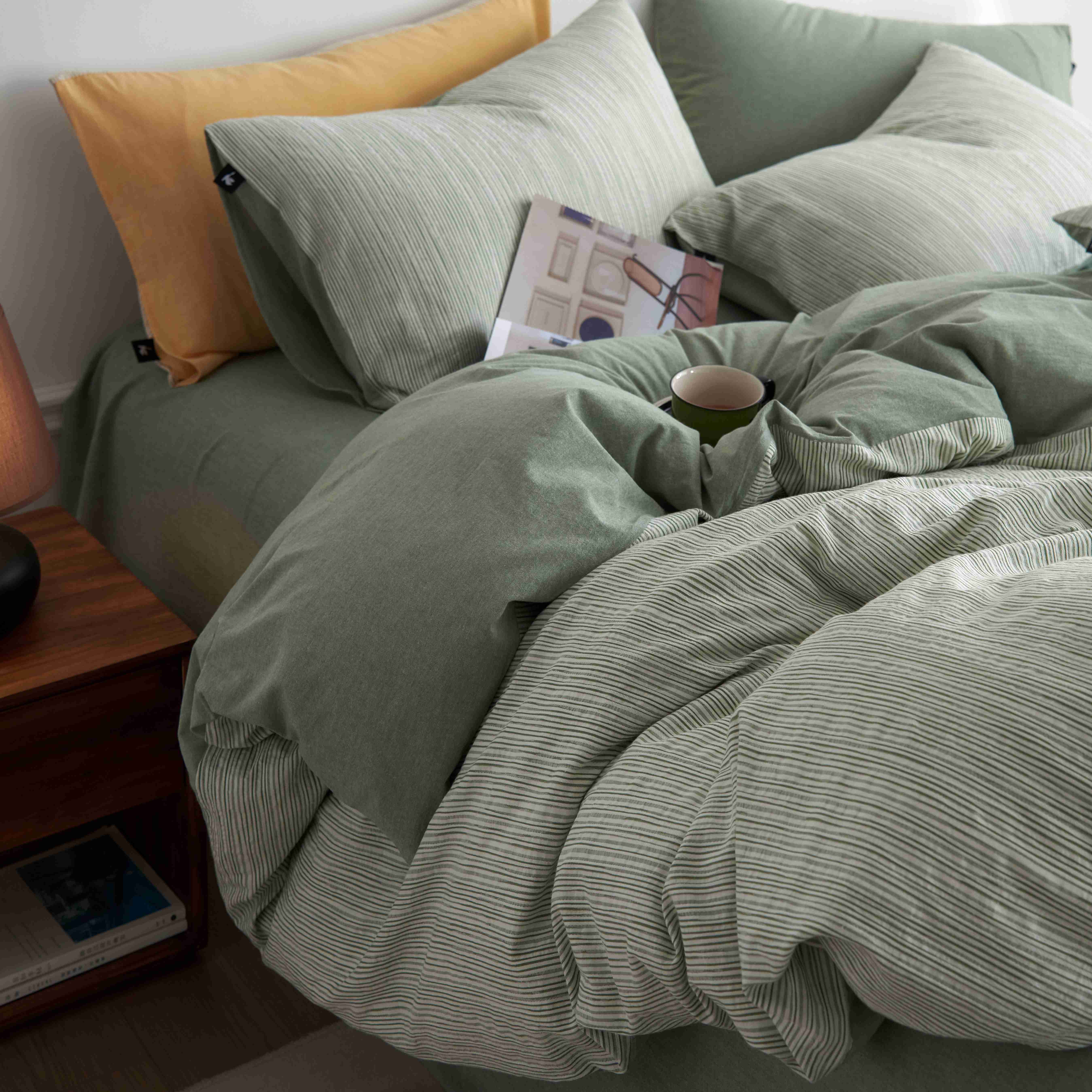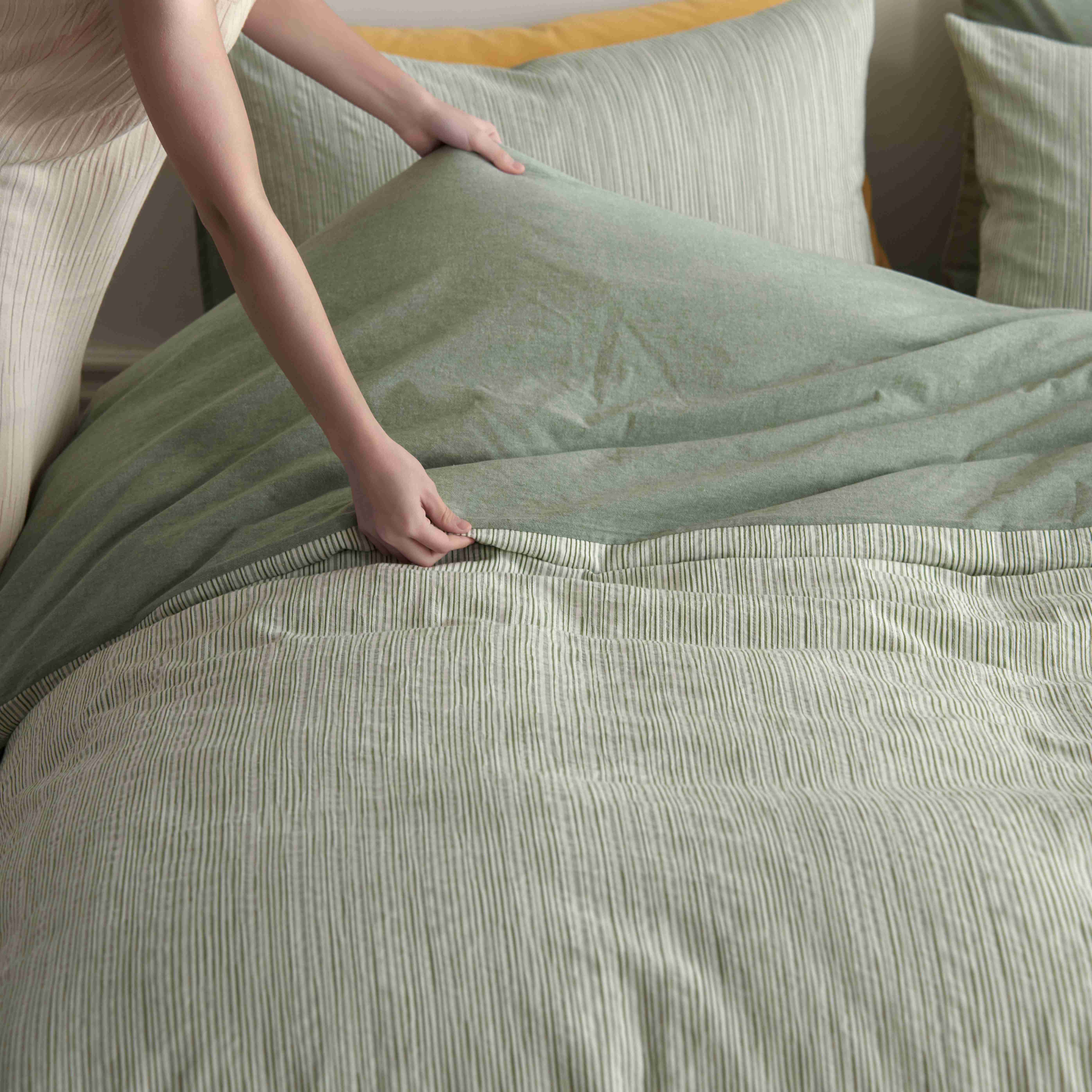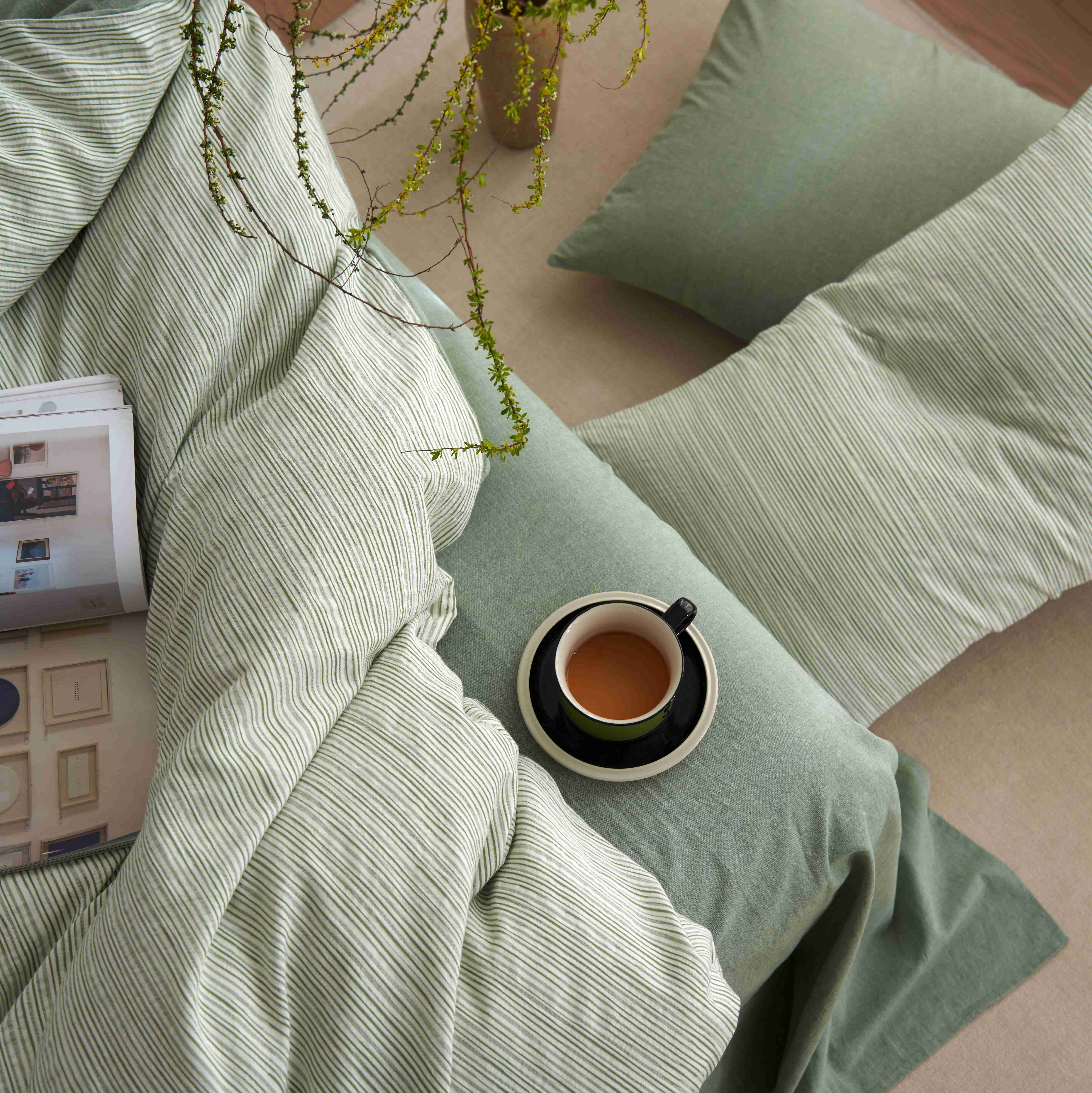 商品名称:安莱生活 2025新款60s色织大提花秘境条纹四件套系列 绿白混条