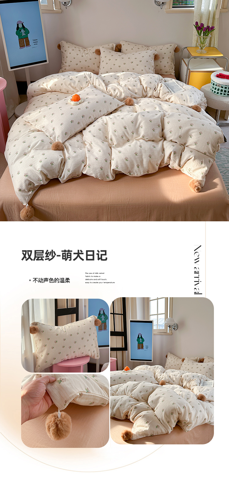 金爱家 2025新款亲肤舒适纯棉双层纱四件套 双层纱-花未央