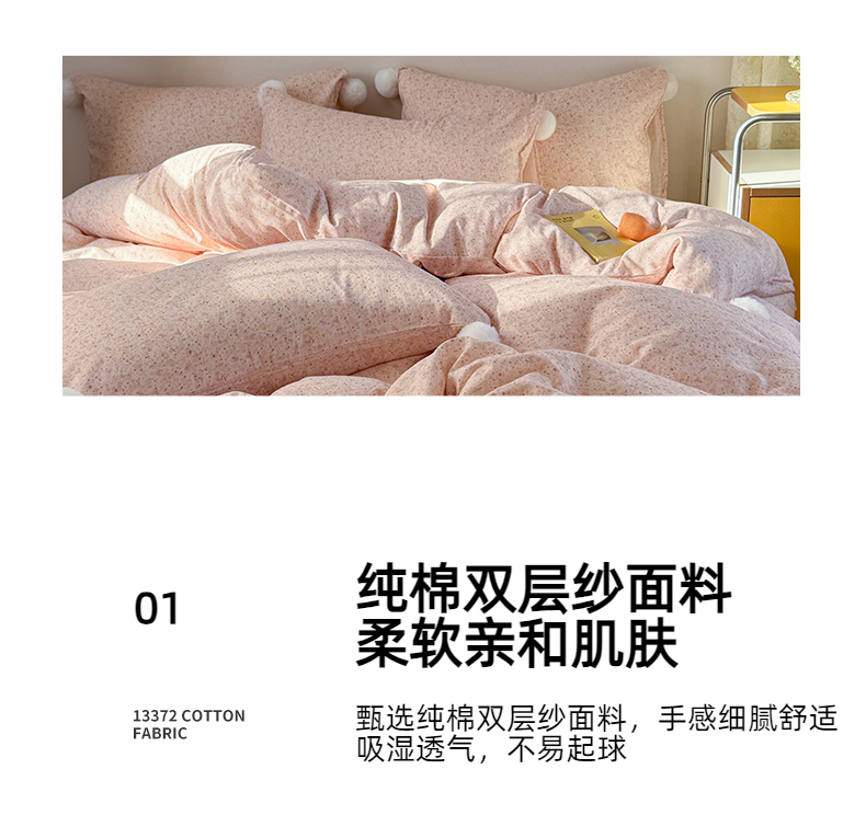 商品名称:金爱家 2025新款亲肤舒适纯棉双层纱四件套 双层纱-花未央