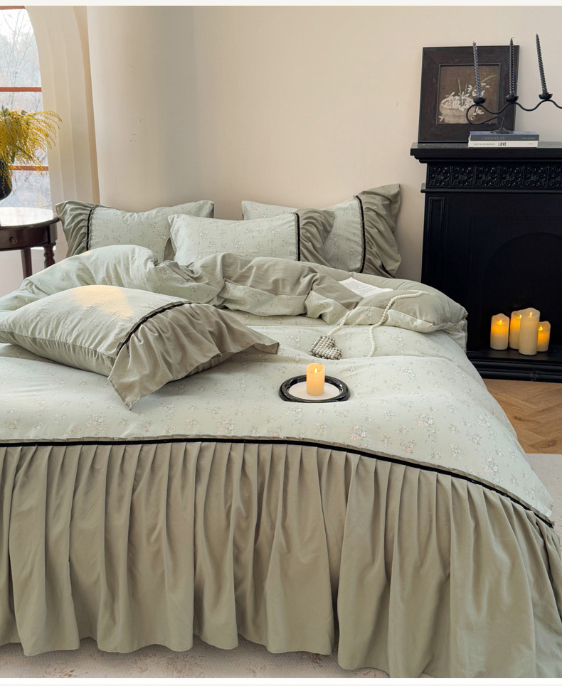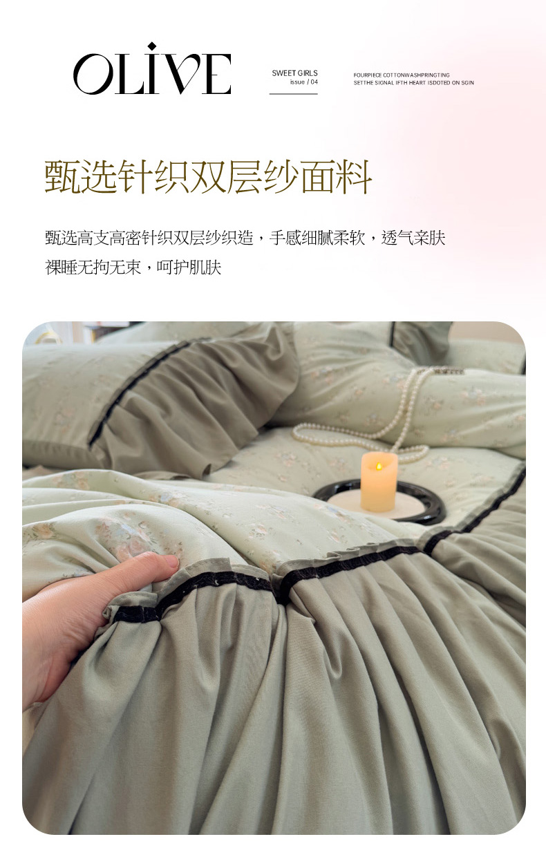 当前位置: 91家纺网 > 商品网购 > 床品套件 > 四件套 > 其它四件套 > 沐慕 2025新款法式针织双层纱印花系列四件套 绿茶