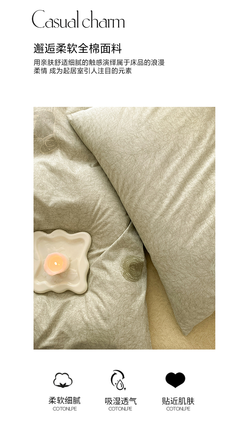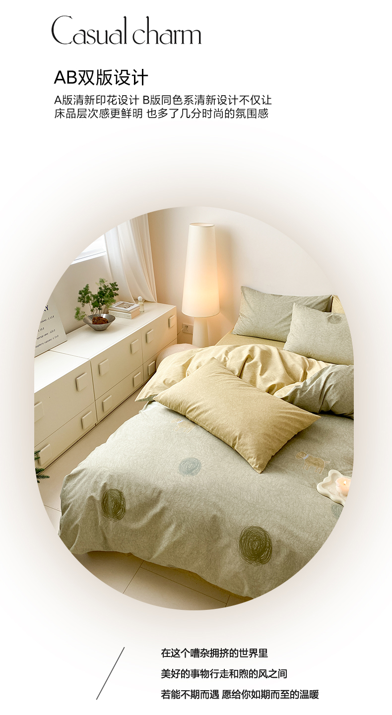 宜家坊 2025开春新品全棉喷气13070小清新印花纯棉全棉四件套-风格一 线条小狗