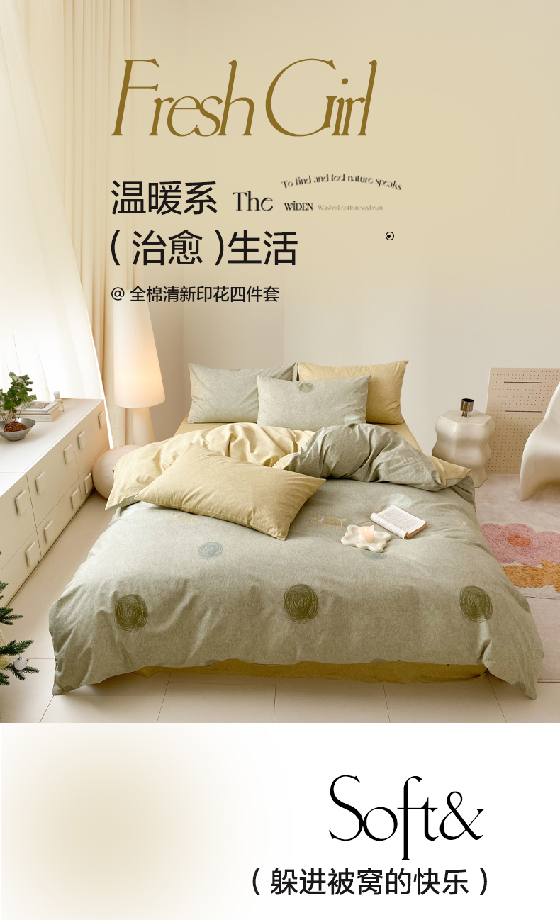 (总)宜家坊 2025新款A类全棉纯棉色织水洗棉宽边断角工艺四件套 可定制尺寸,小幸运-绿豆沙,小幸运-橙灰,小幸运-粉蓝,爱的邂逅-粉,爱的邂逅-灰,爱的邂逅-蓝,爱的邂逅-绿,幸福恋曲-粉,幸福恋曲-蓝