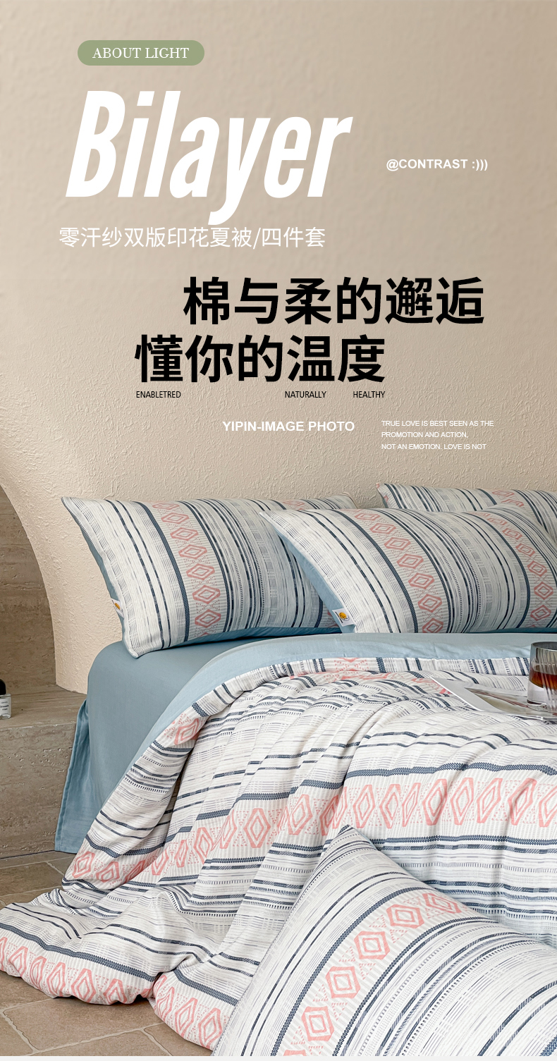 慕晨 2025新款全棉双层纱四件套莱赛尔夏被莱赛尔夏被四件套天丝夏凉被直播 逸彩