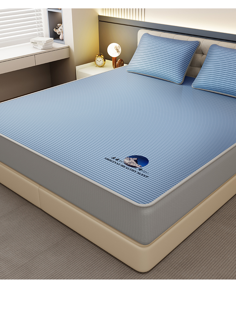 鑫姿 2025新款5A抗菌A类冰丝凉席-条纹款 条纹床笠-蓝色