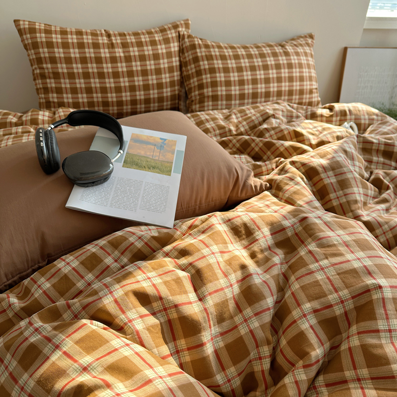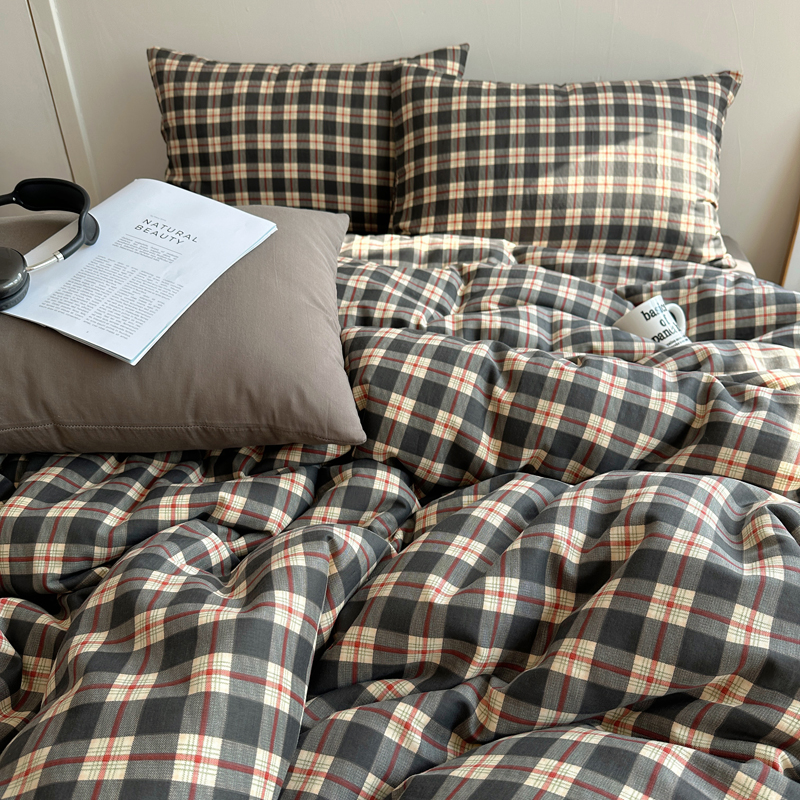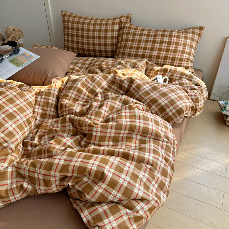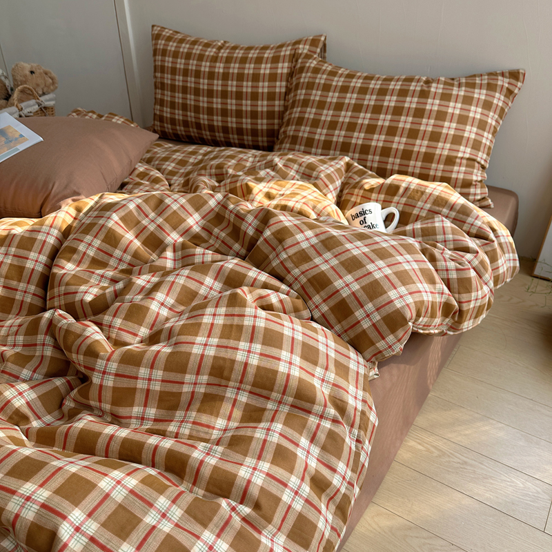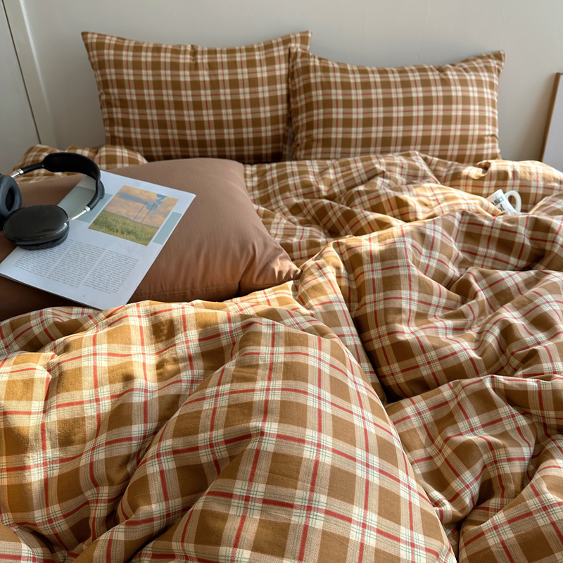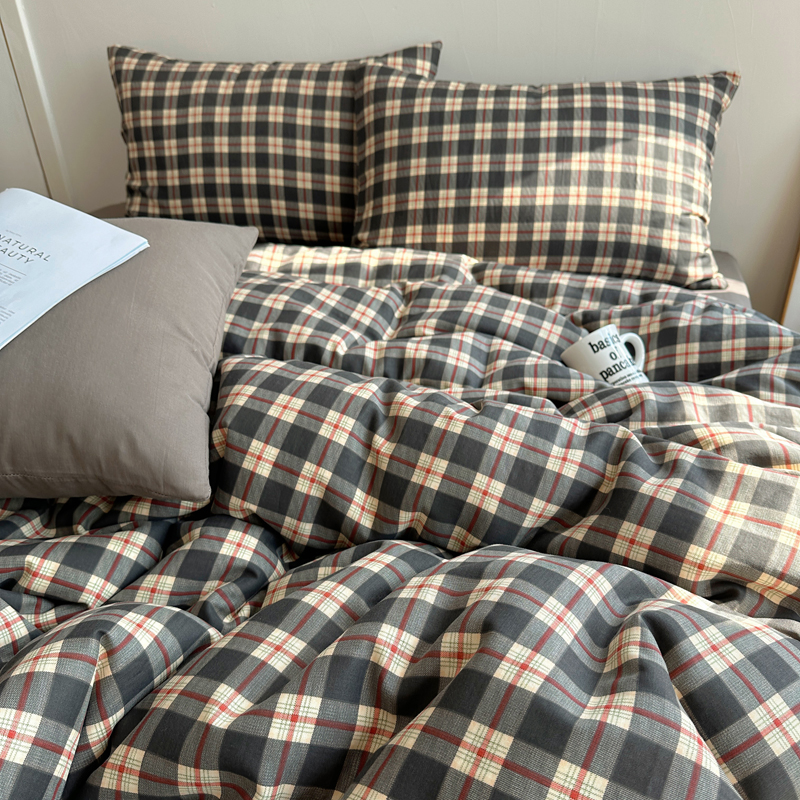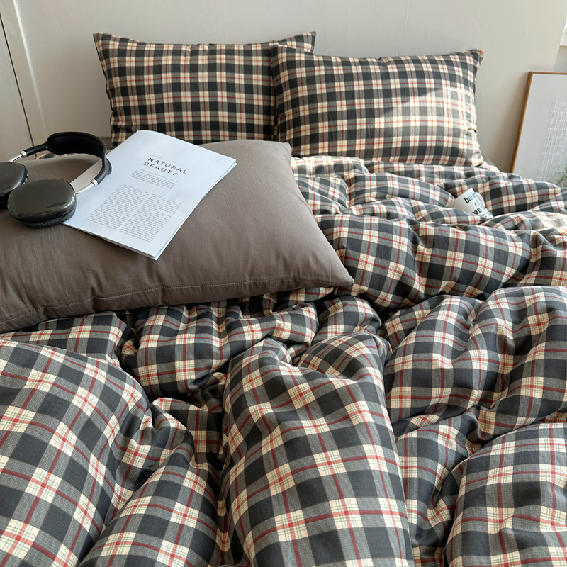 商品名称:(总)桃喜 2025新款春夏双层纱复古格子系列四件套(会员-5)