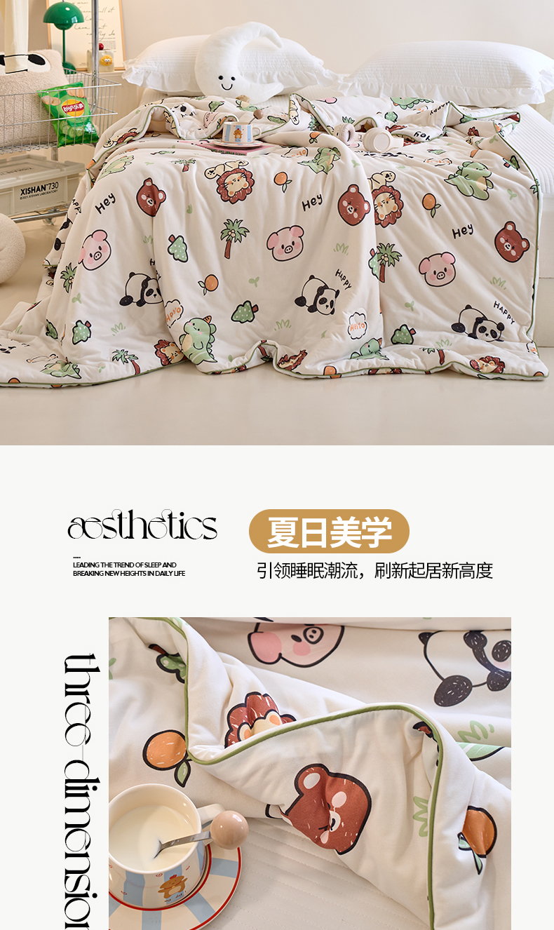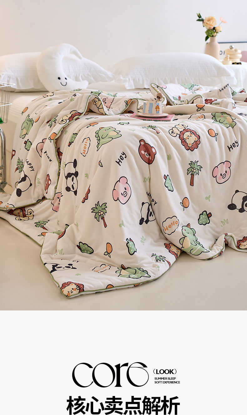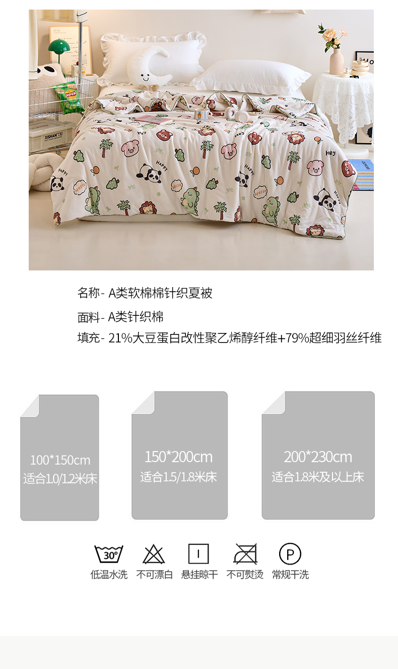 商品名称:维洋家纺 2025升级21%大豆新款A类牛奶丝针织夏被(四周踩棉)软糯凉感夏被空调被 动物乐园