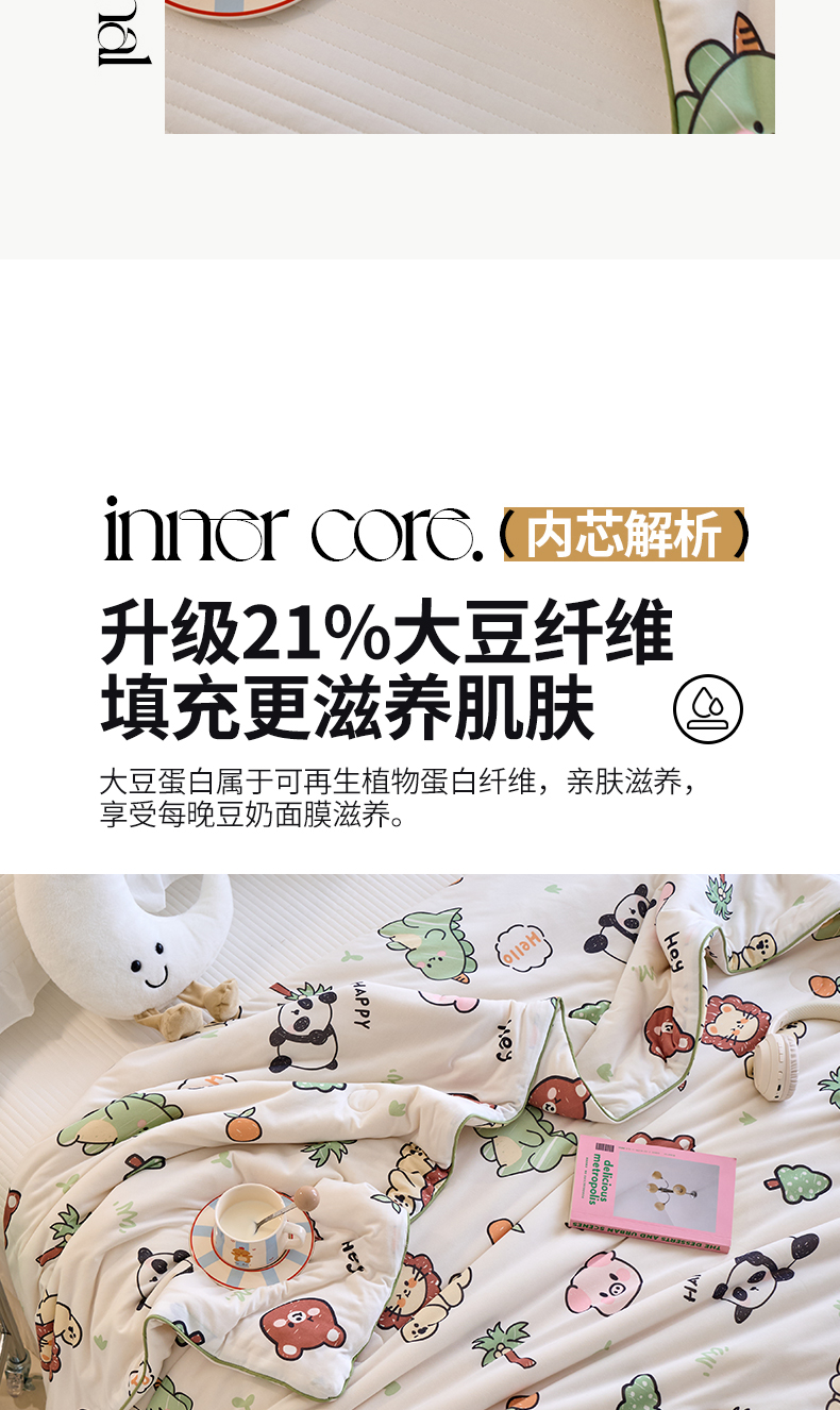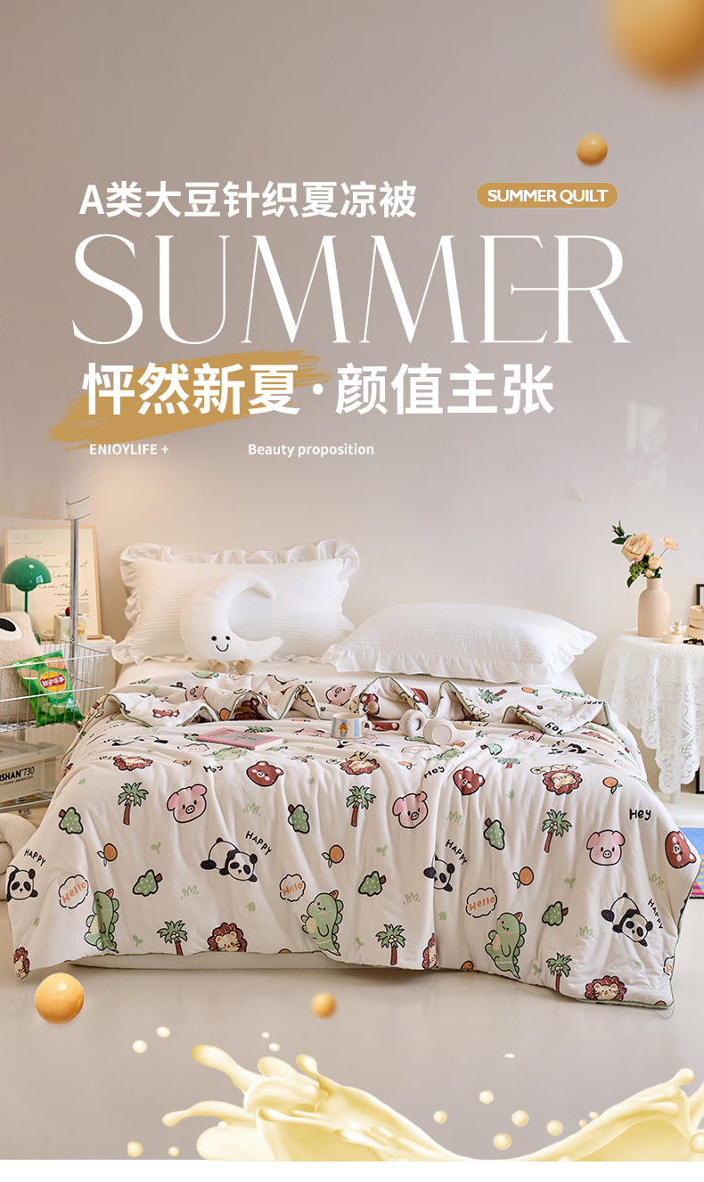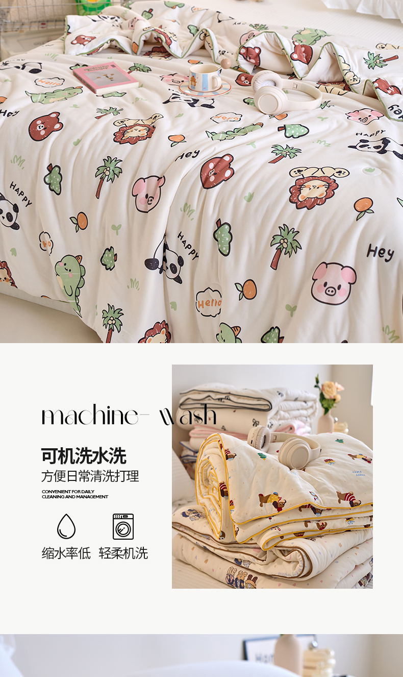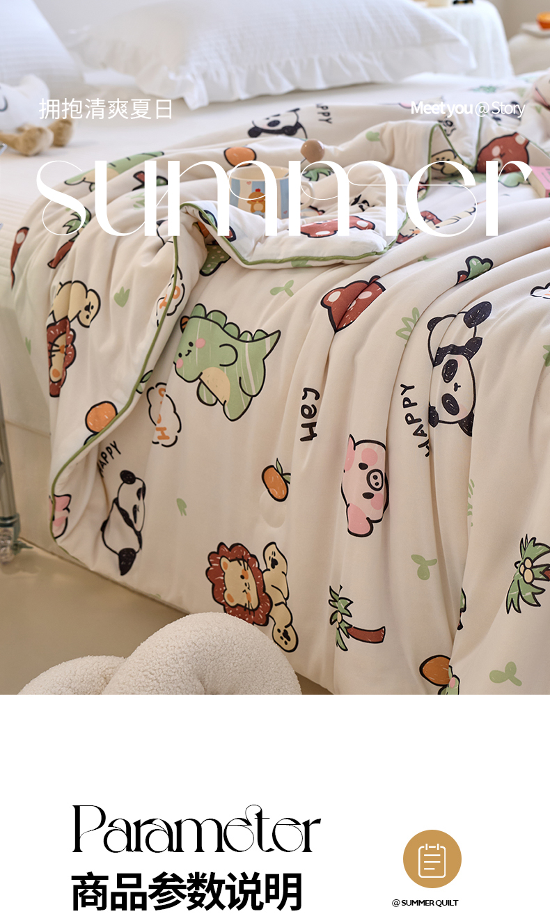商品名称:维洋家纺 2025升级21%大豆新款A类牛奶丝针织夏被(四周踩棉)软糯凉感夏被空调被 动物乐园