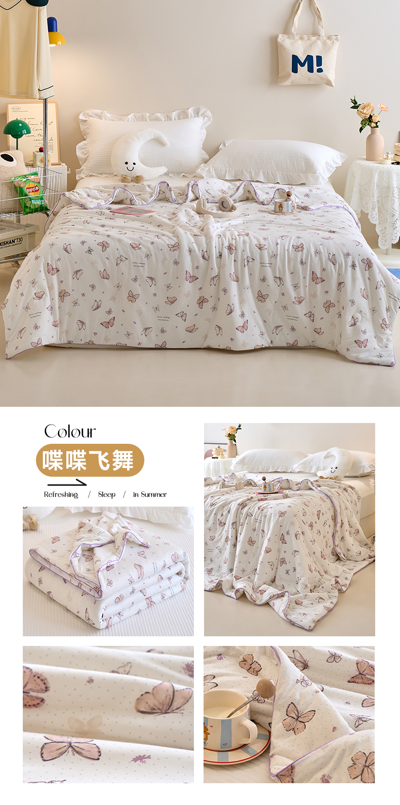 (总)维洋家纺 2025新款双层纱云感刺绣大豆被被子被芯,金棕蝴蝶结,奶咖蝴蝶,奶油蝴蝶结,奶油粉花朵,奶油绿花朵
