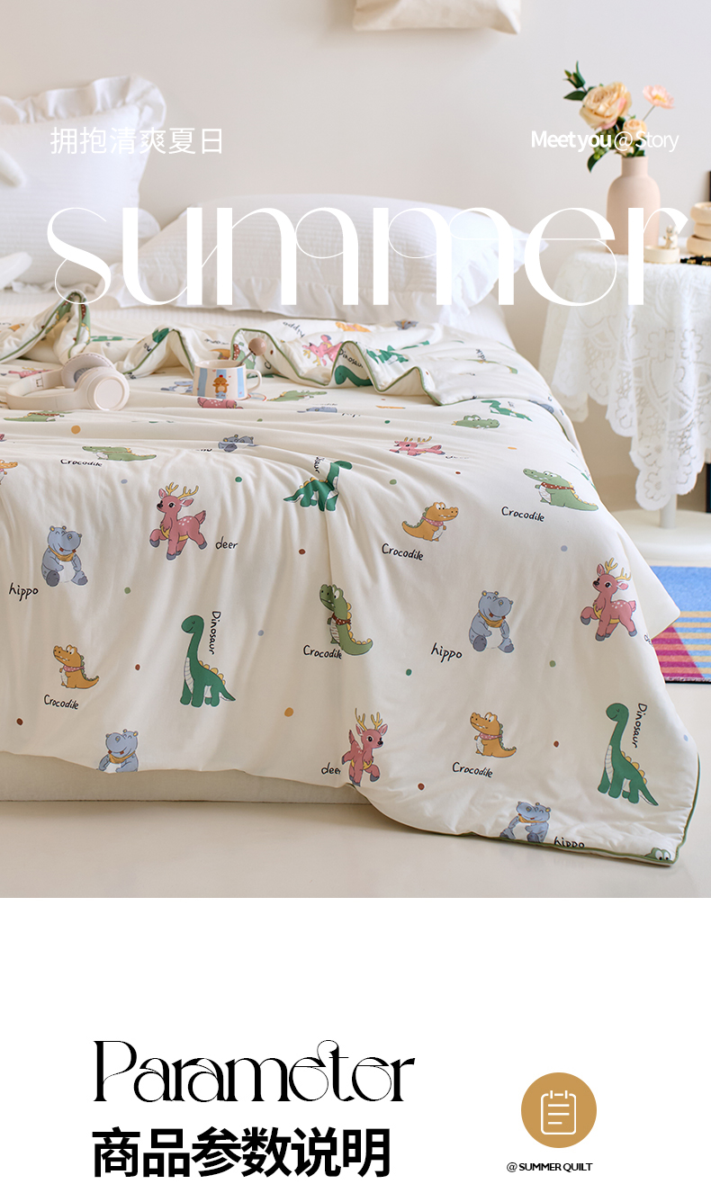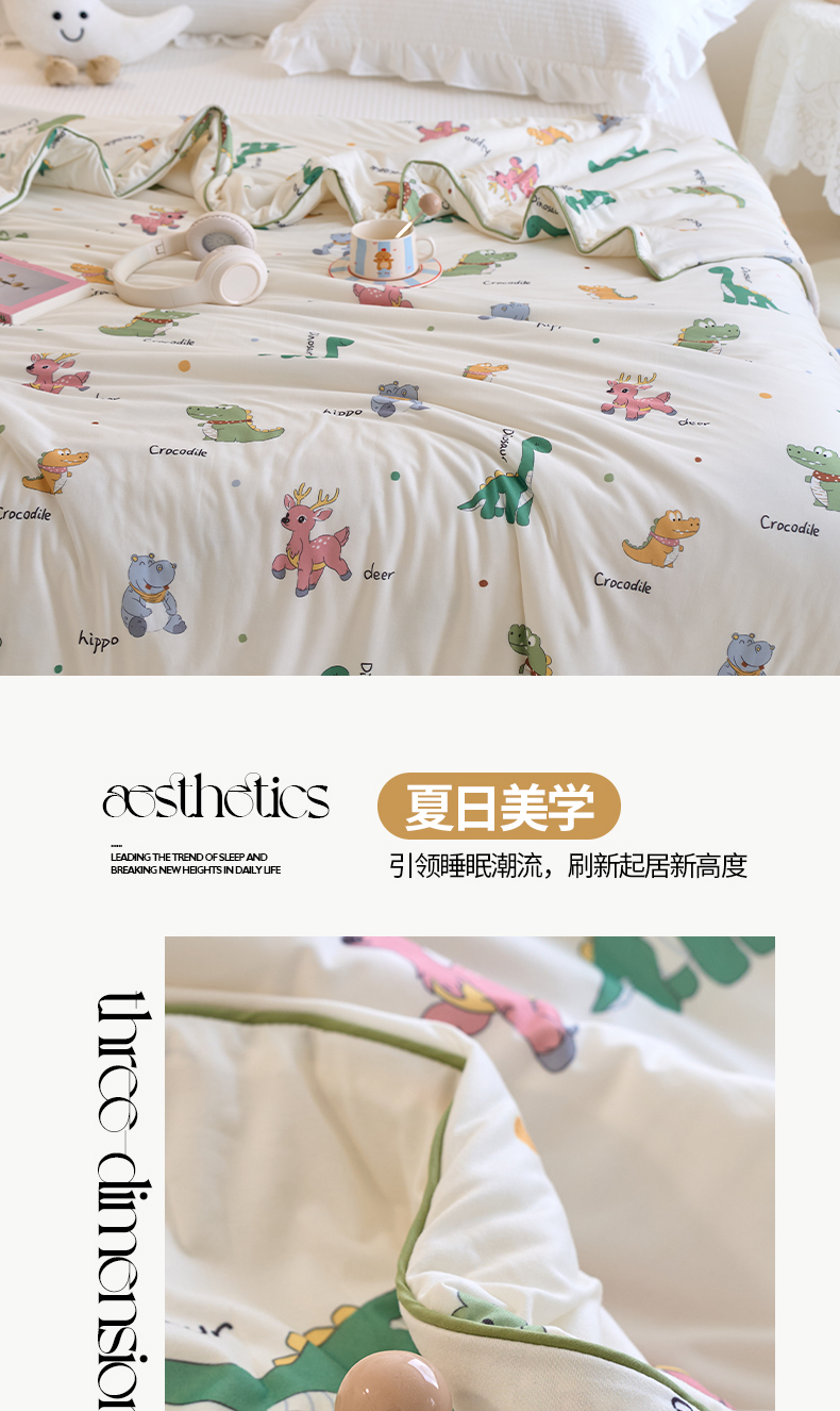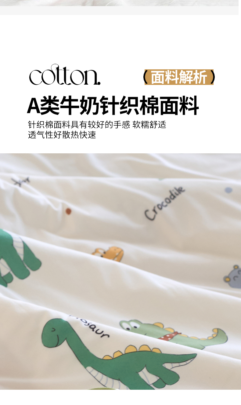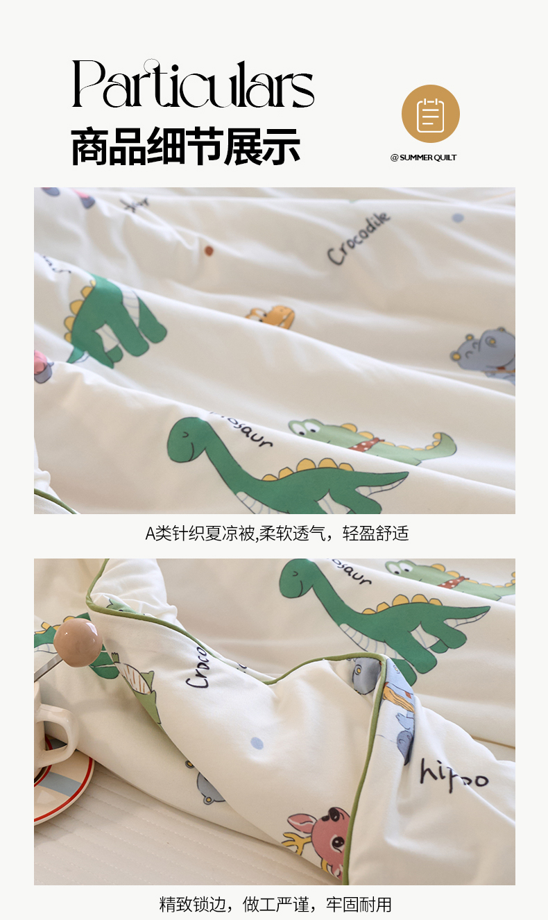 商品名称:维洋家纺 2025升级21%大豆新款A类牛奶丝针织夏被(四周踩棉)软糯凉感夏被空调被 小恐龙