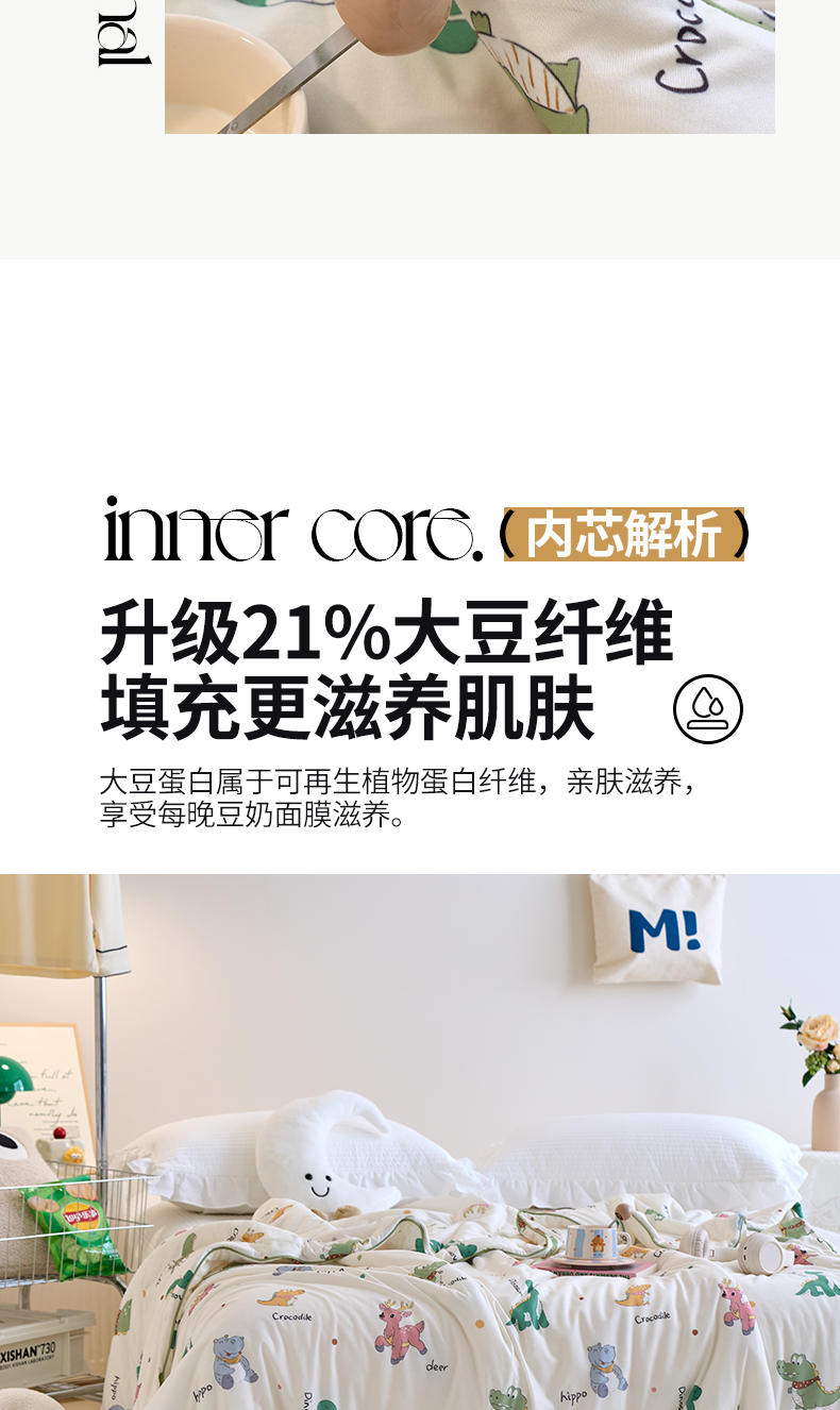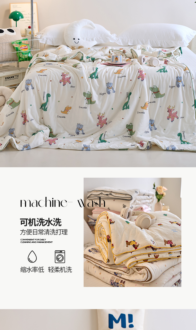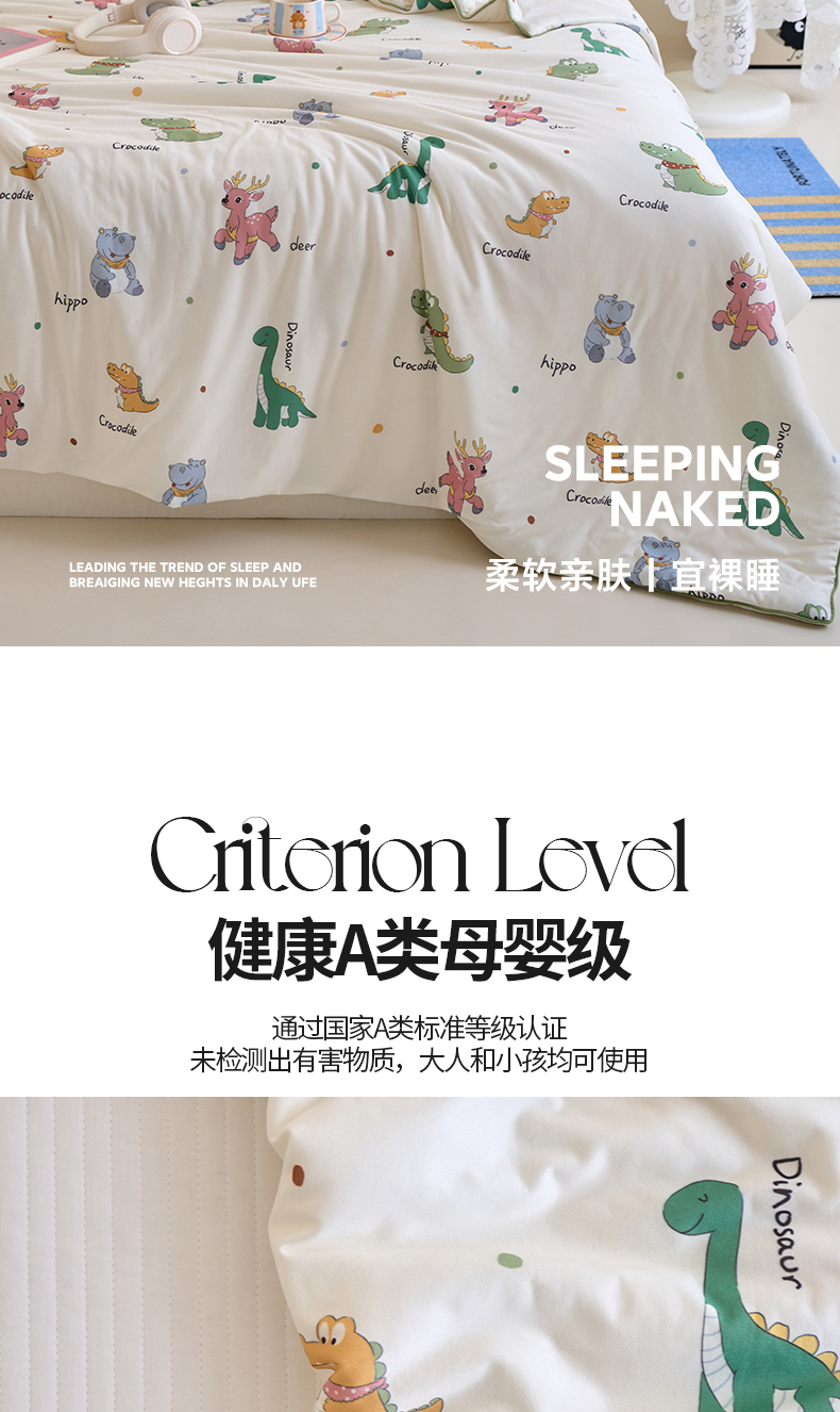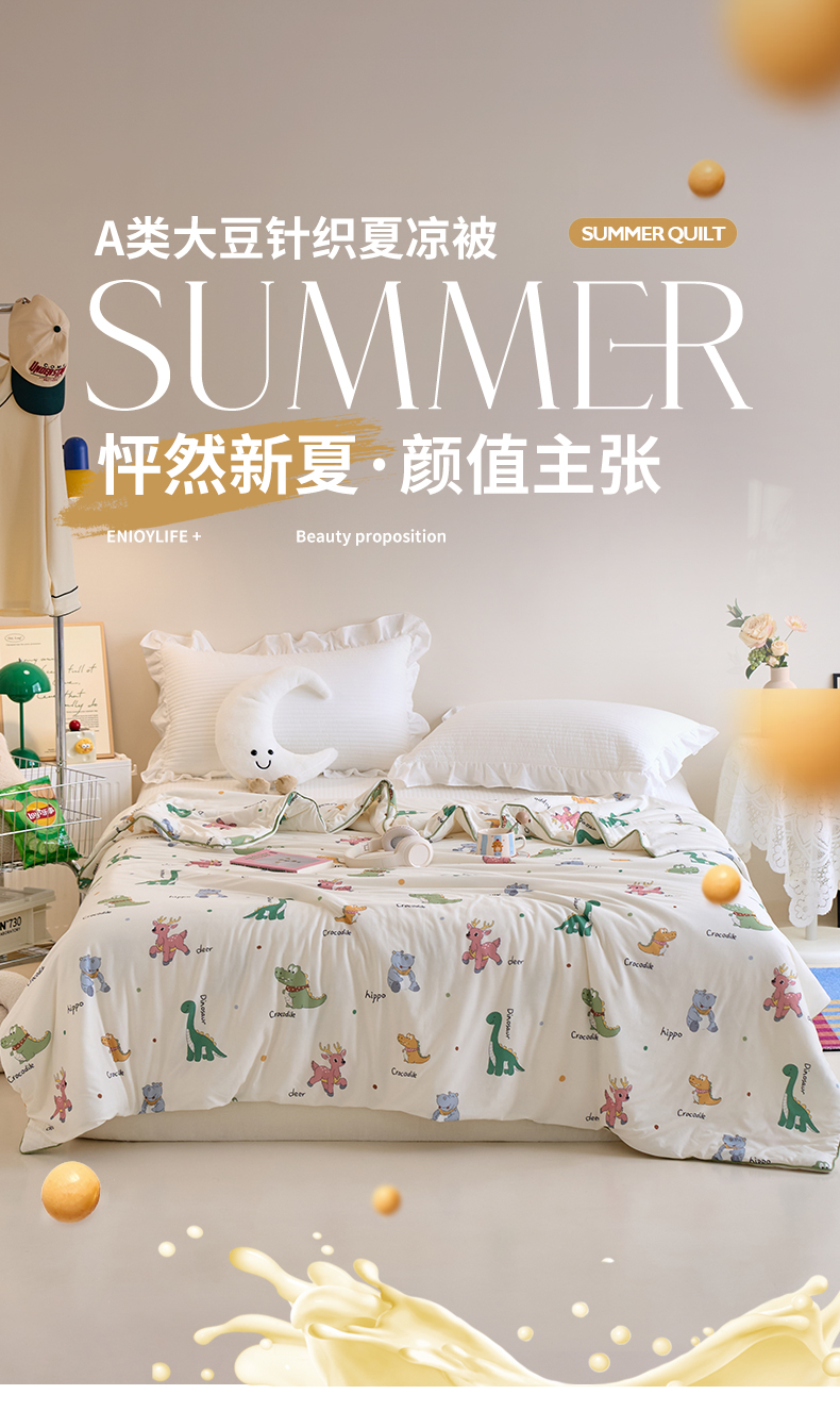 商品名称:维洋家纺 2025升级21%大豆新款A类牛奶丝针织夏被(四周踩棉)软糯凉感夏被空调被 小恐龙