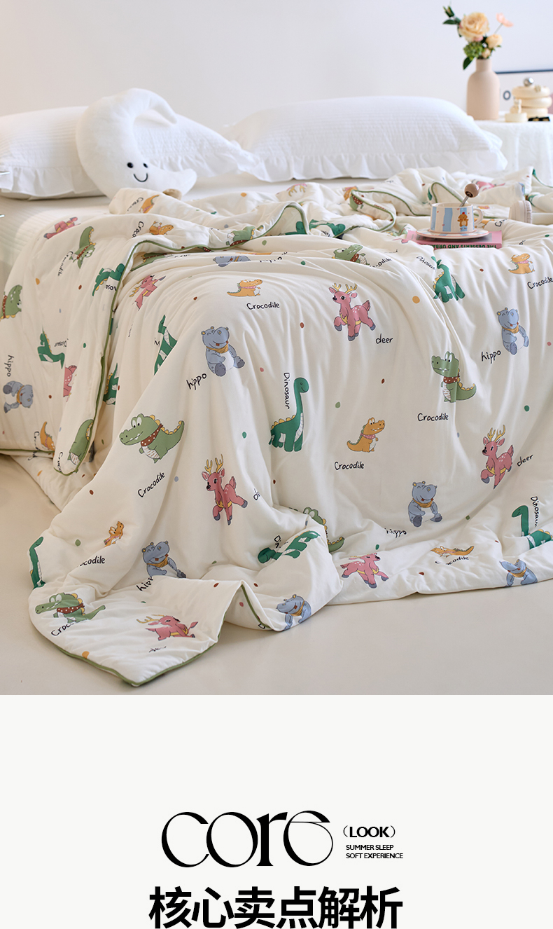维洋家纺 2025升级21%大豆新款A类牛奶丝针织夏被(四周踩棉)软糯凉感夏被空调被 小恐龙