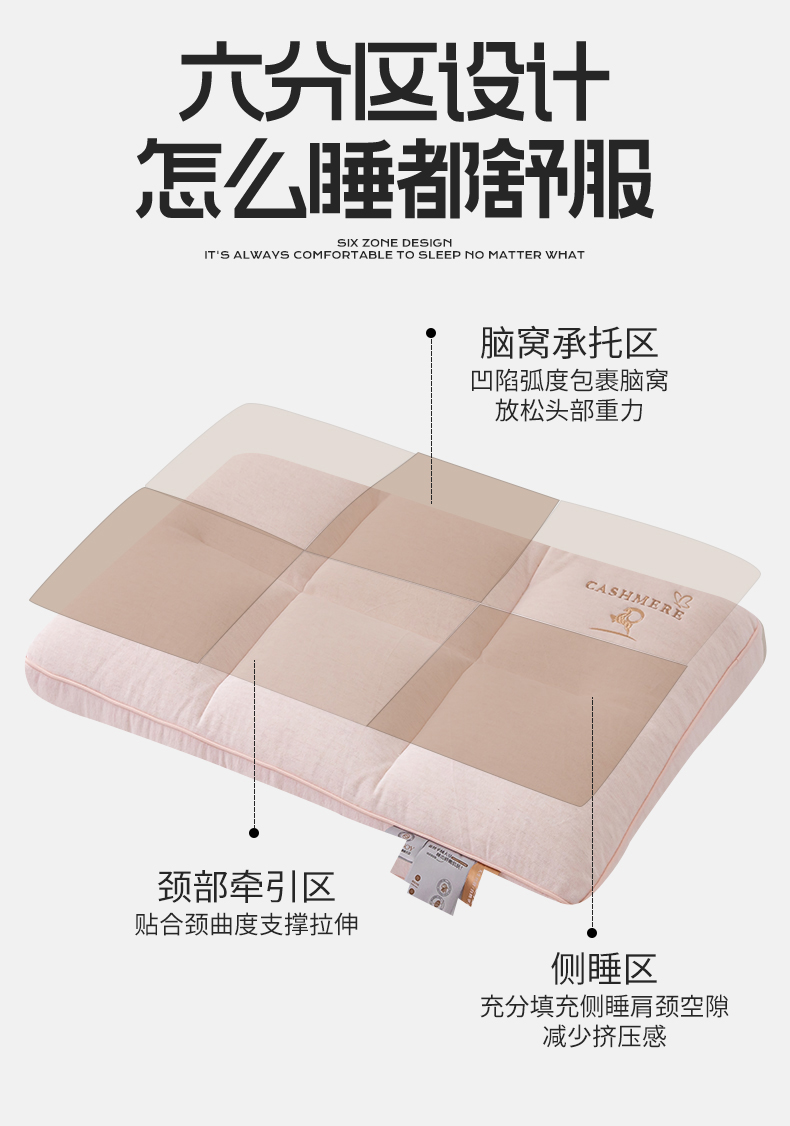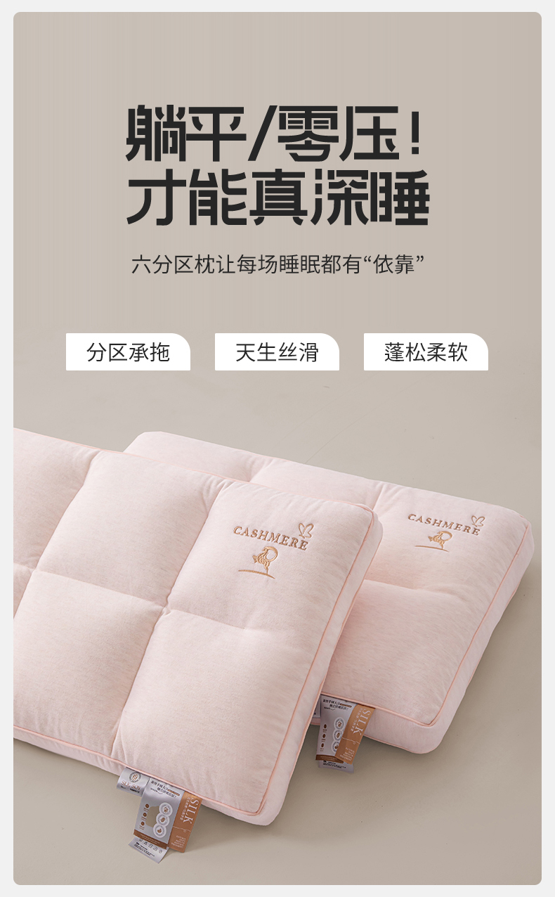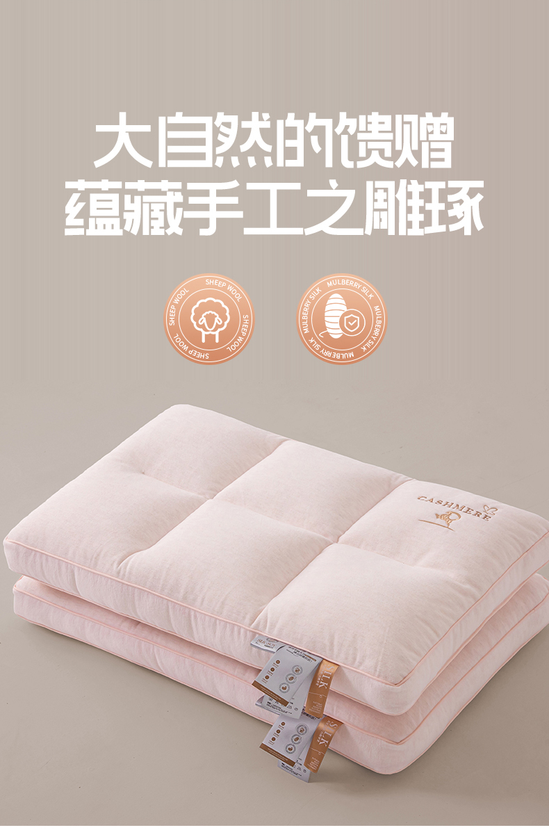 当前位置: 91家纺网 > 商品网购 > 枕头/枕芯/保健枕/颈椎枕 > 普通枕芯 > 麦肯锡 2025新款羊绒蚕丝大豆六分区枕 粉色48*74