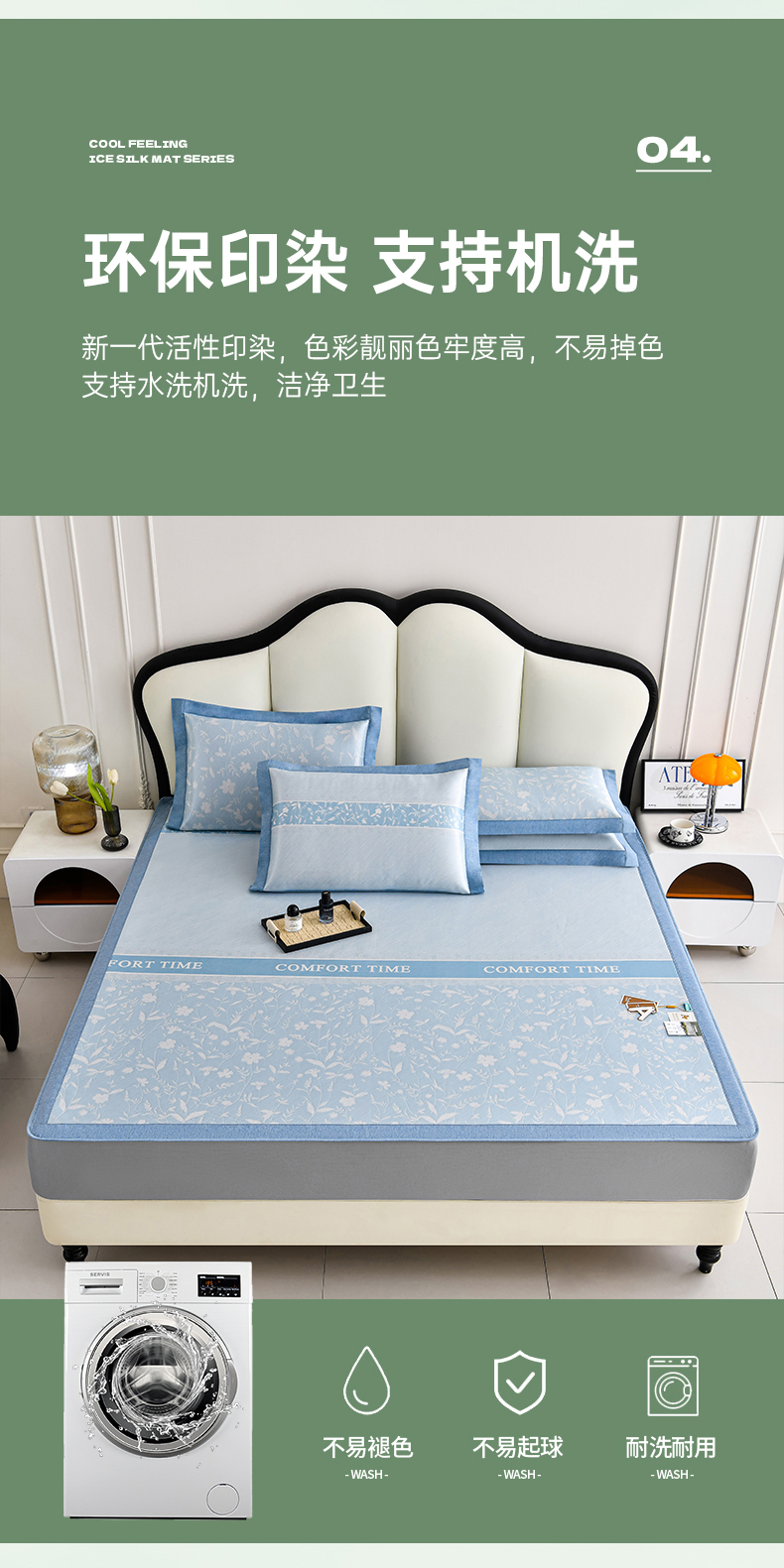 商品名称:小牛席业 2025新款琉璃叶语-碳光冰丝席系列(床笠款) 蓝色