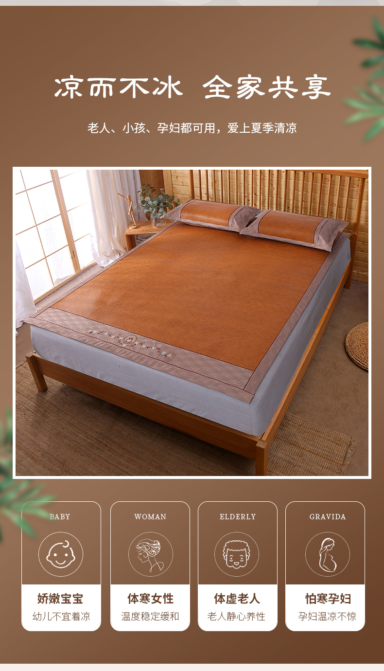 商品名称:小牛席业 2025新款刺绣古藤席【常规款】凉席藤席冰藤席竹席空调席草席冰丝席豆豆席乳胶席三件套 红棕古藤
