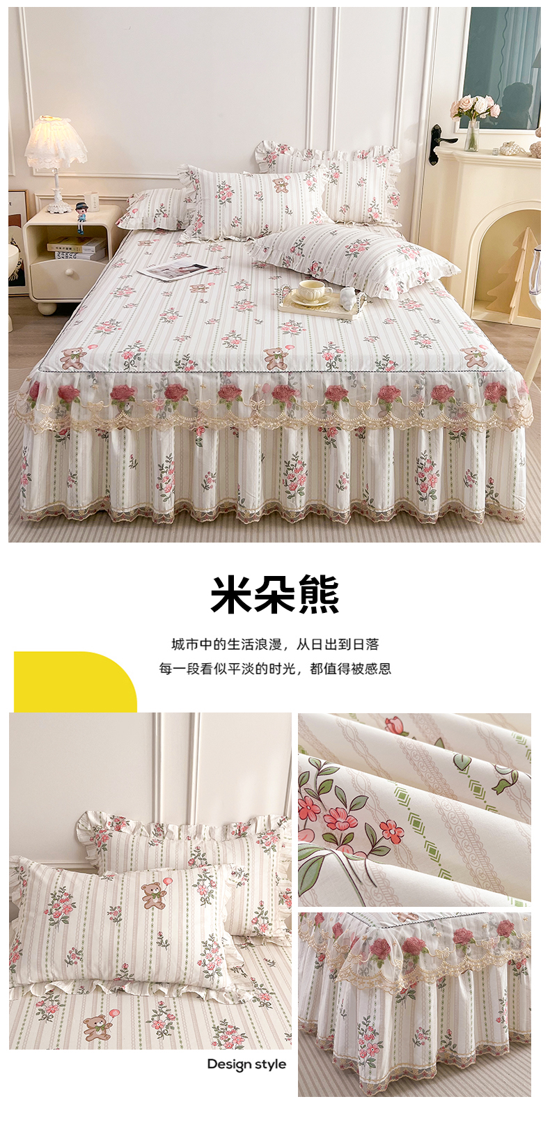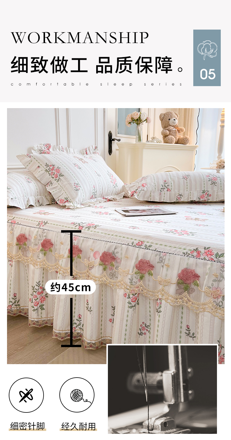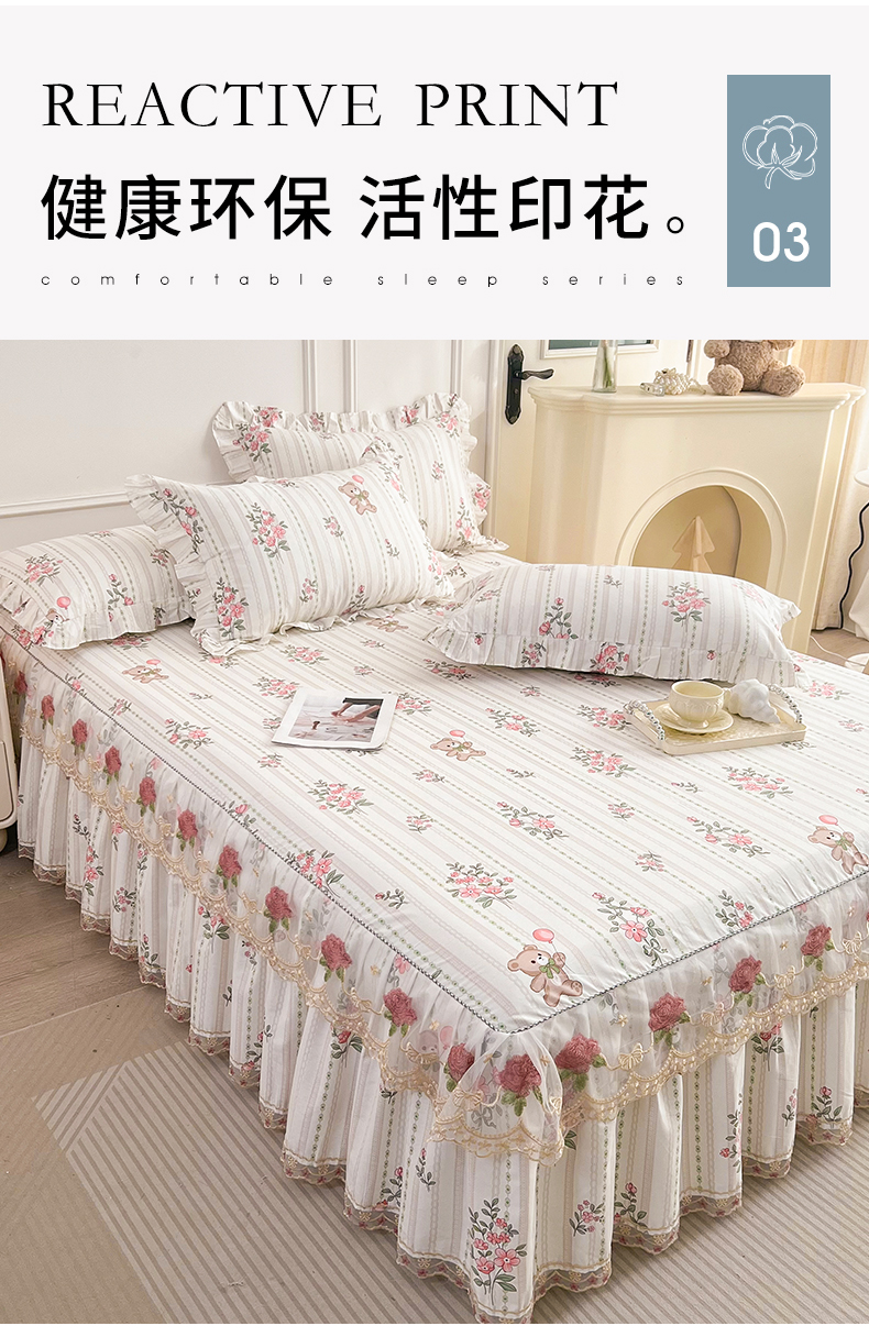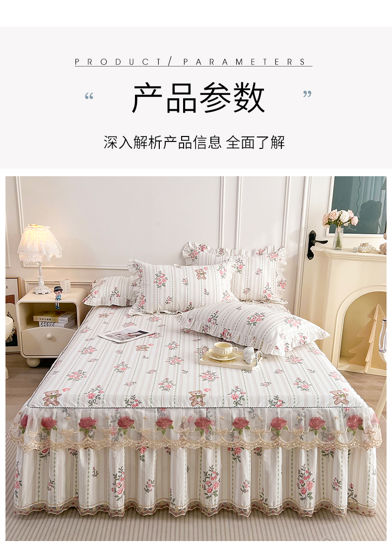 • 91家纺网 家纺一手货源 找家纺  十个点 2025新款全棉纯棉蕾丝花边床裙 米朵熊