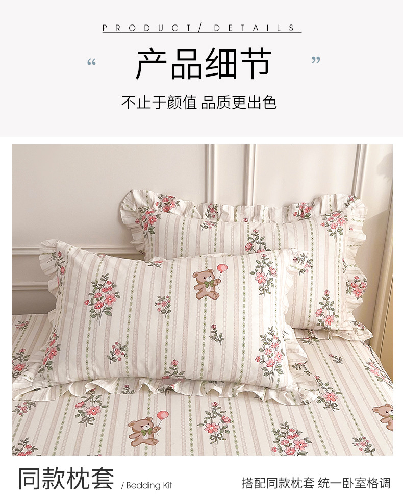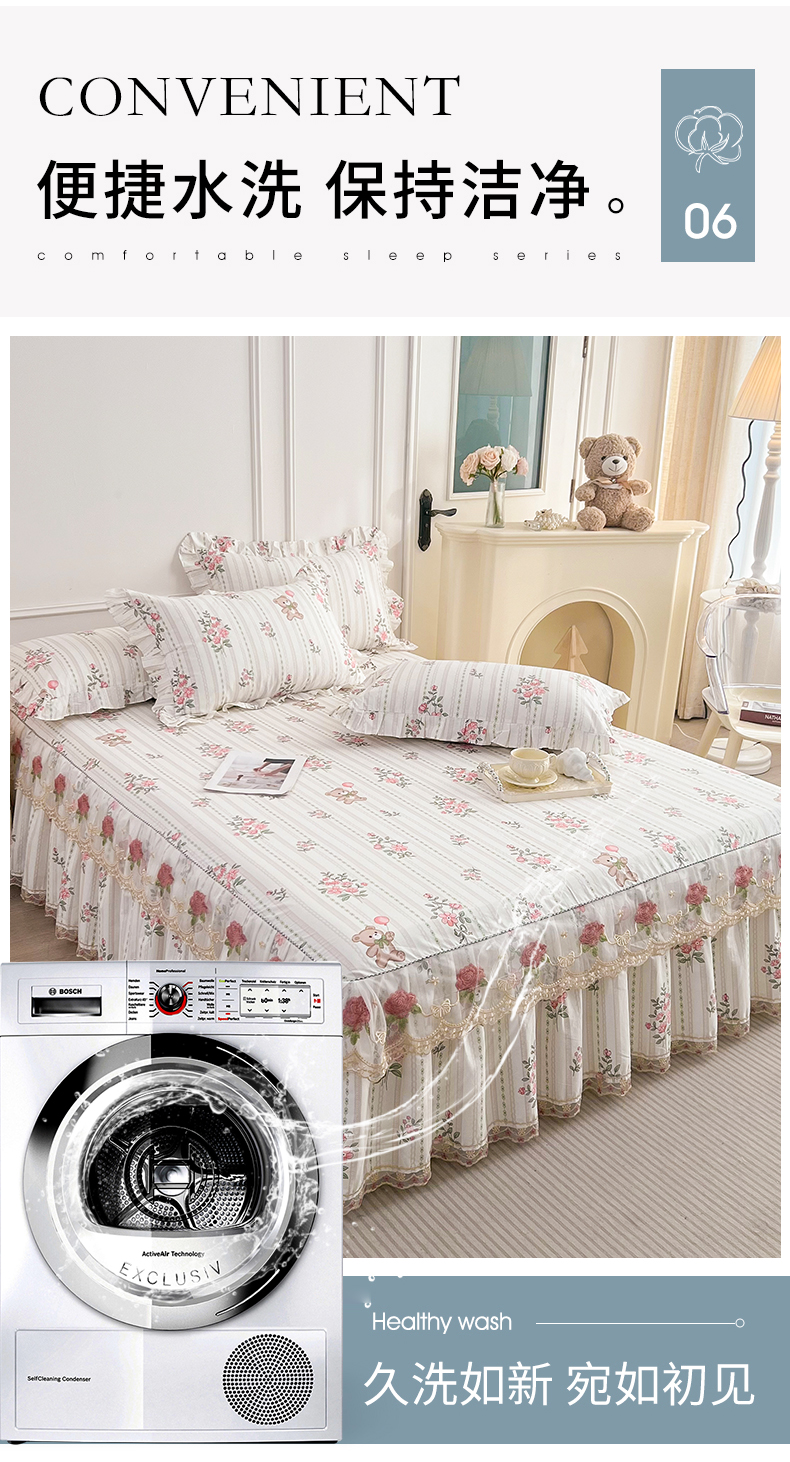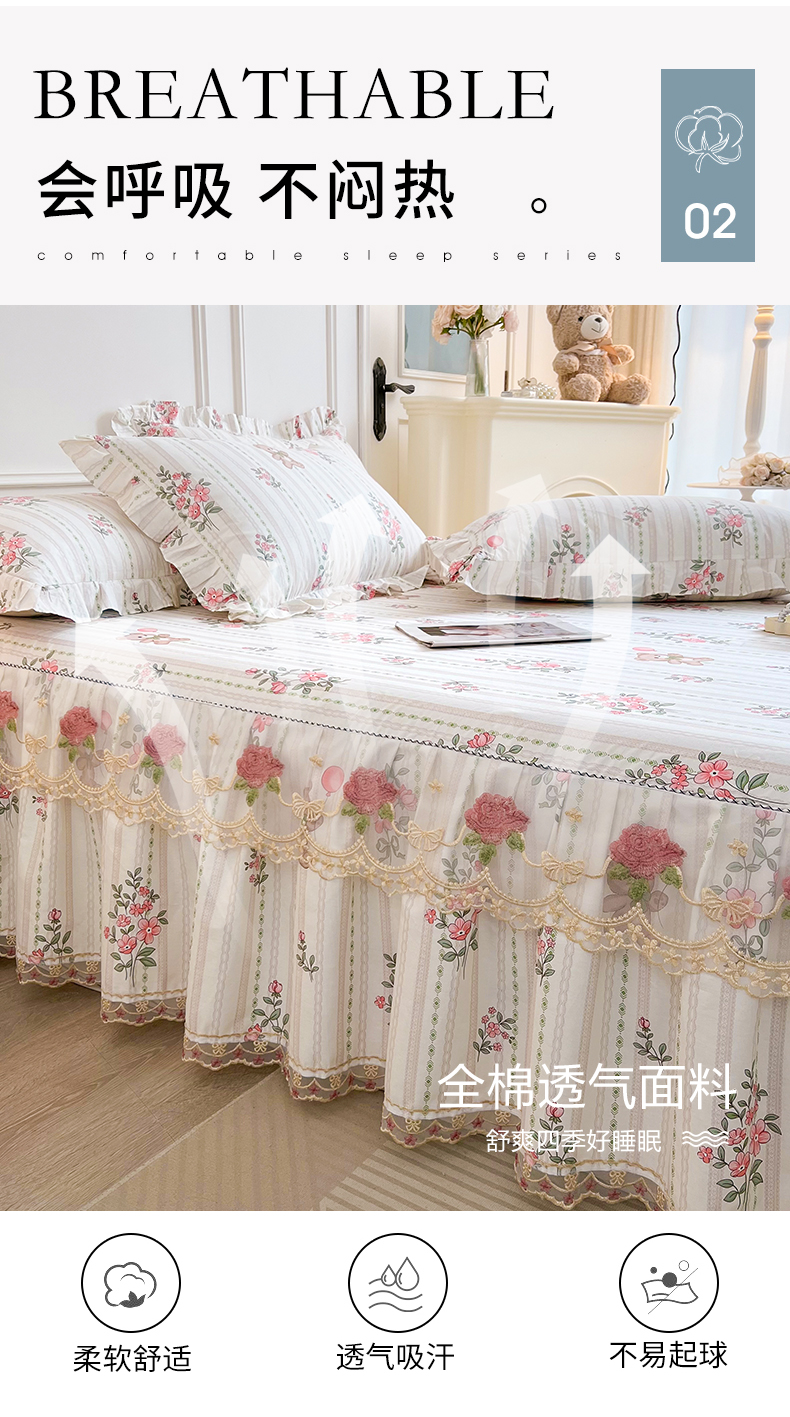 • 91家纺网 家纺一手货源 找家纺  十个点 2025新款全棉纯棉蕾丝花边床裙 米朵熊