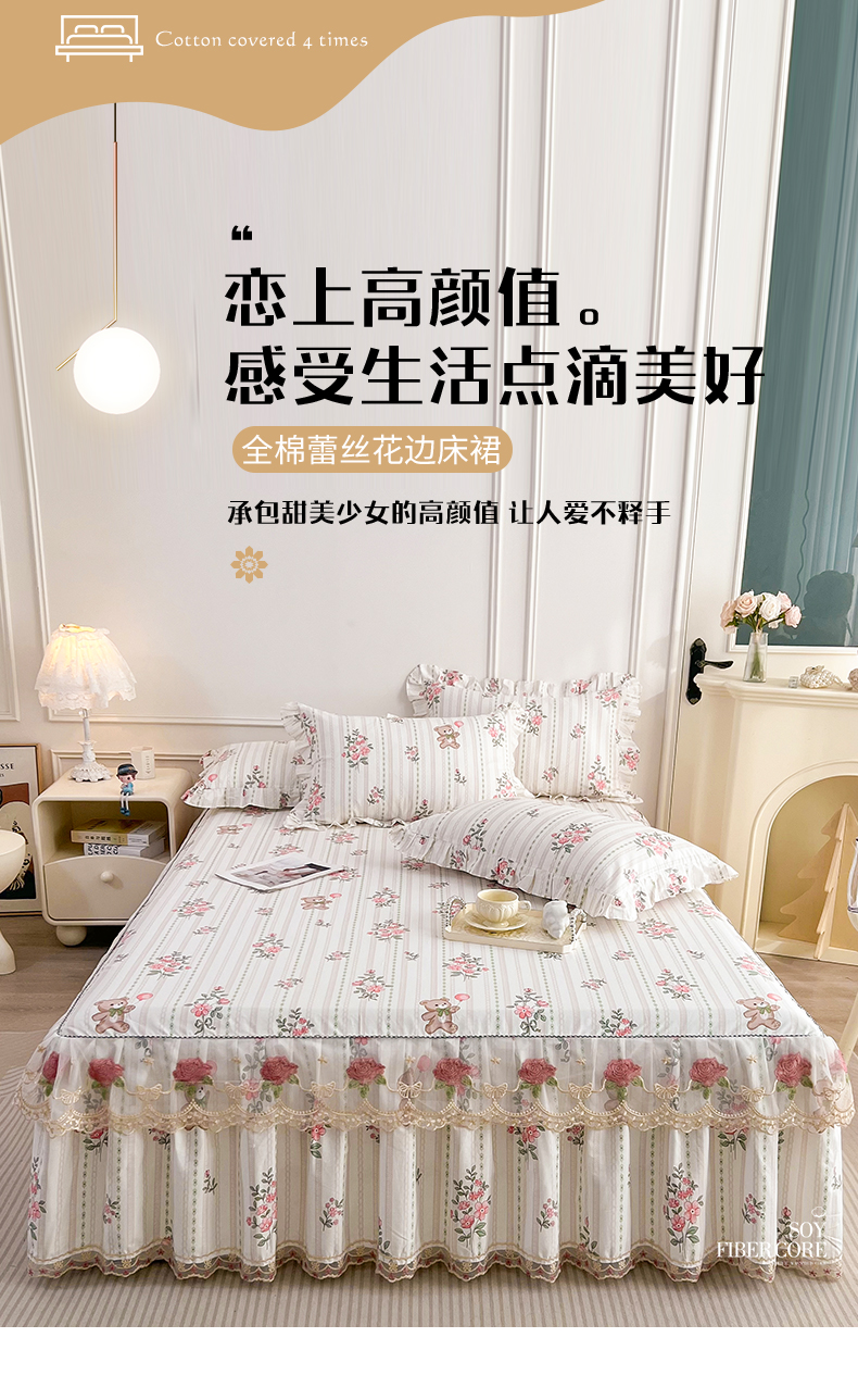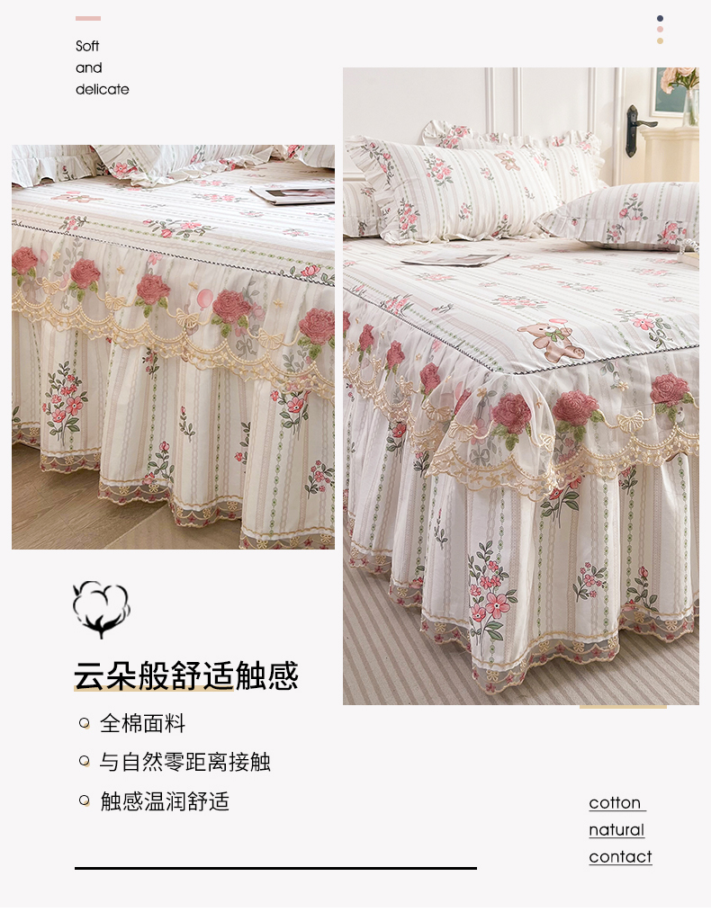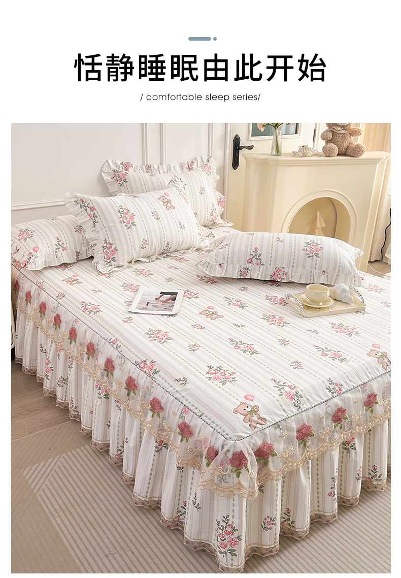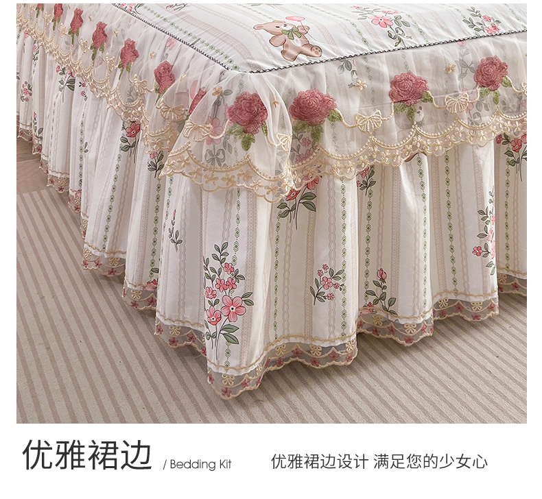 十个点 2025新款全棉纯棉蕾丝花边床裙 米朵熊