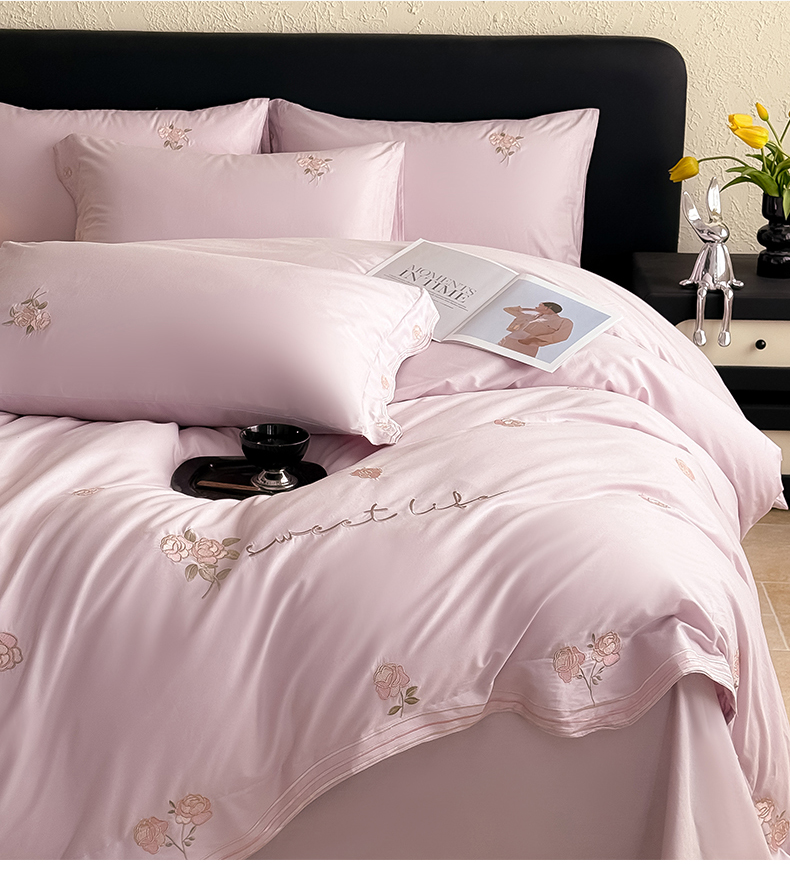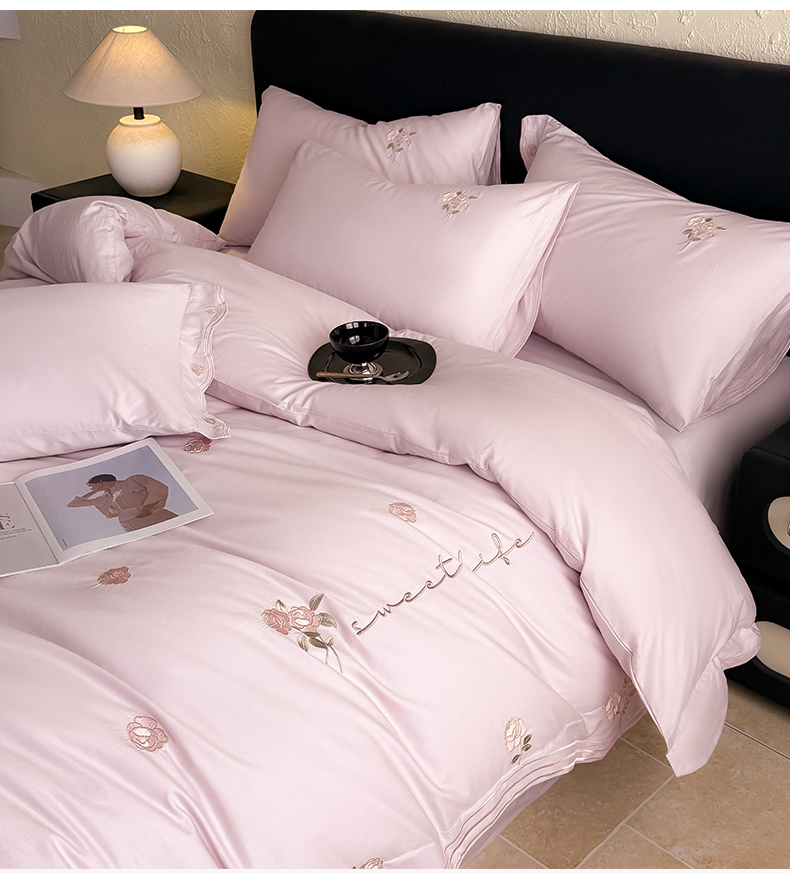 懒猫家纺 2025新款高精密40支全棉喷气绣花四件套-海瑟薇 海瑟薇-紫