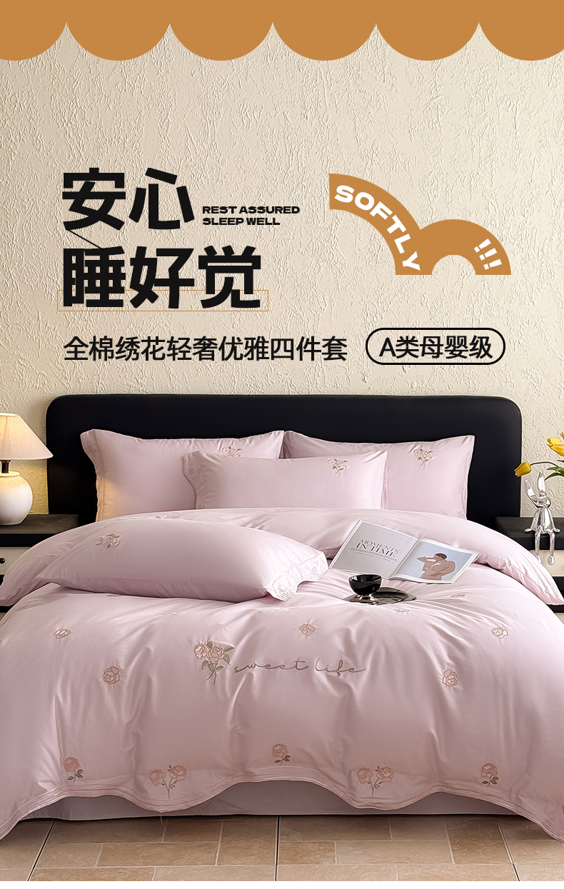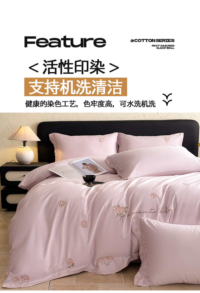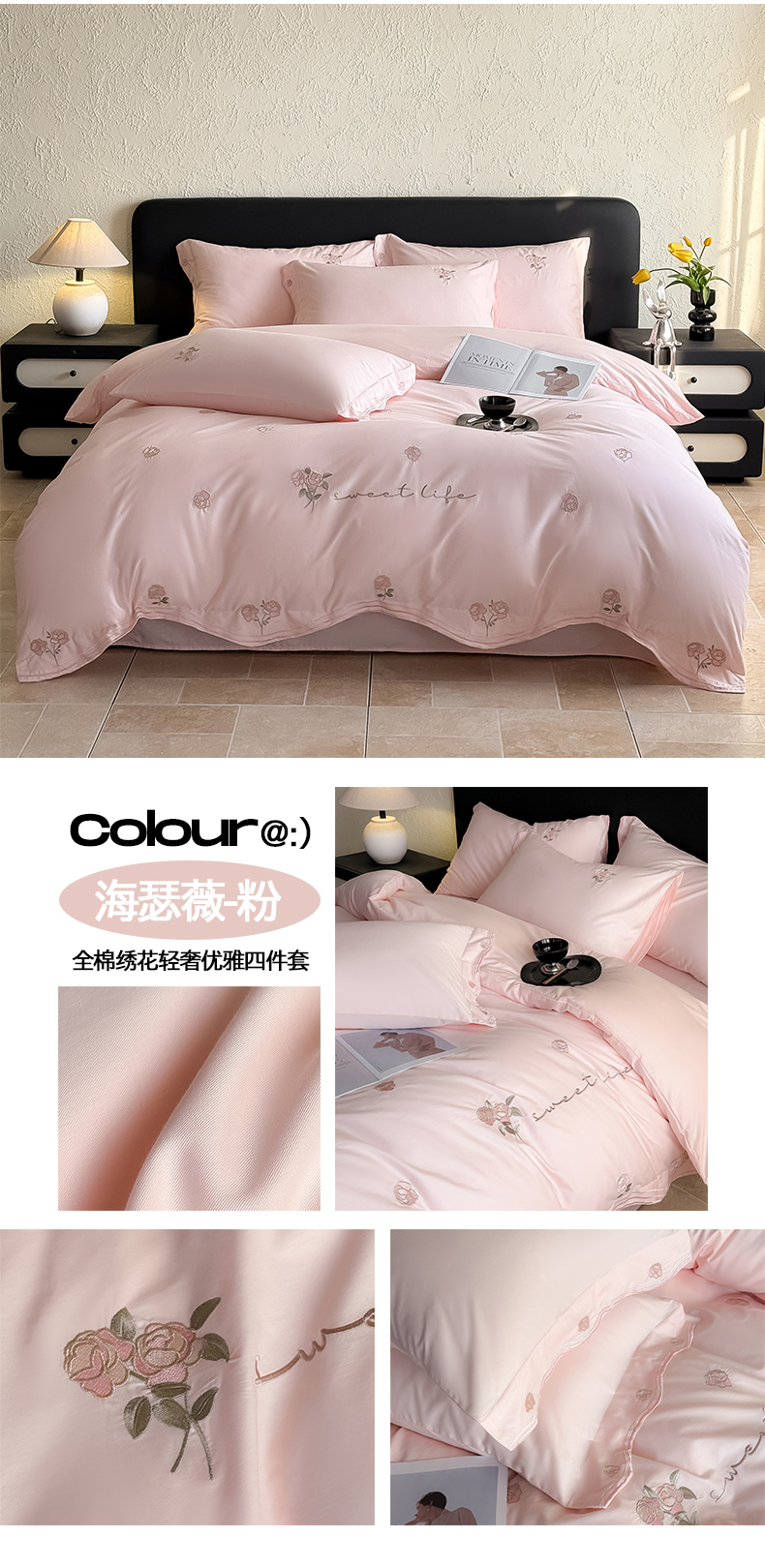 商品名称:懒猫家纺 2025新款高精密40支全棉喷气绣花四件套-海瑟薇 海瑟薇-紫