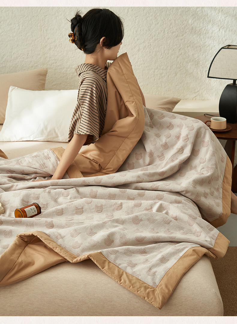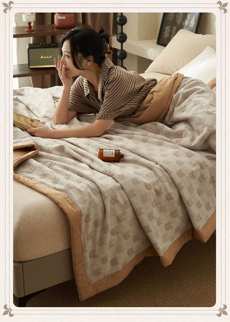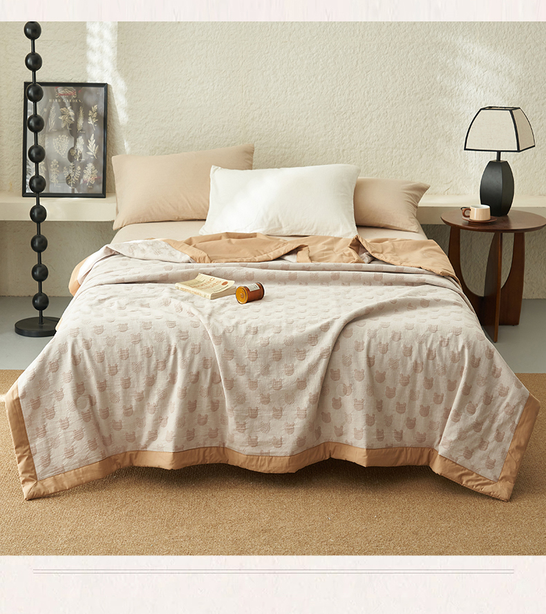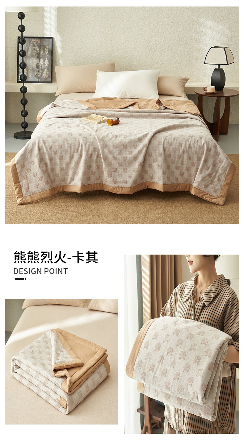 恒爱家纺 2025新款A类全棉双层纱提花夏被子被芯 熊熊烈火-卡其