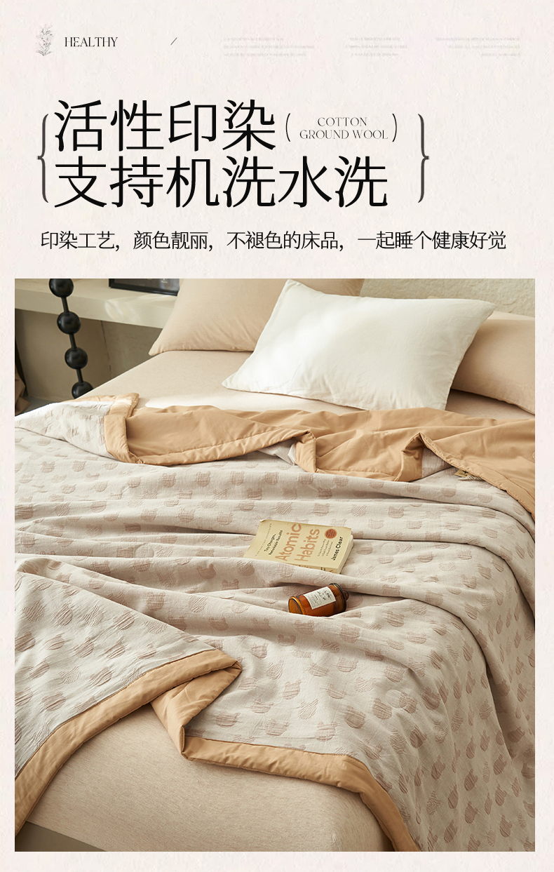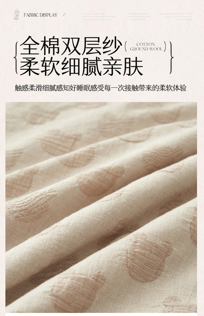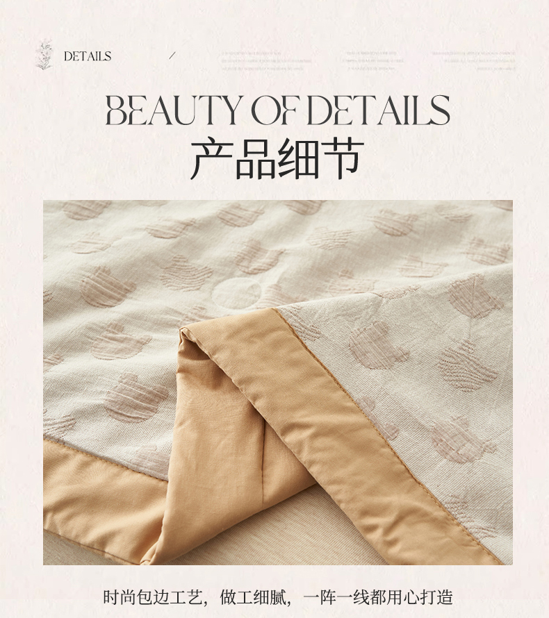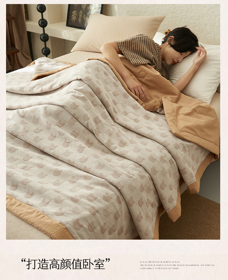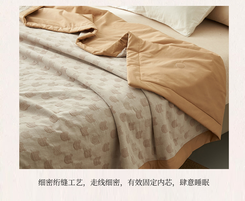 商品名称:恒爱家纺 2025新款A类全棉双层纱提花夏被子被芯 熊熊烈火-卡其