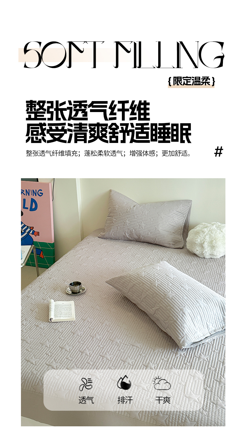 漫调2025新款全棉星星床垫保护套夹棉床笠-繁星 繁星灰