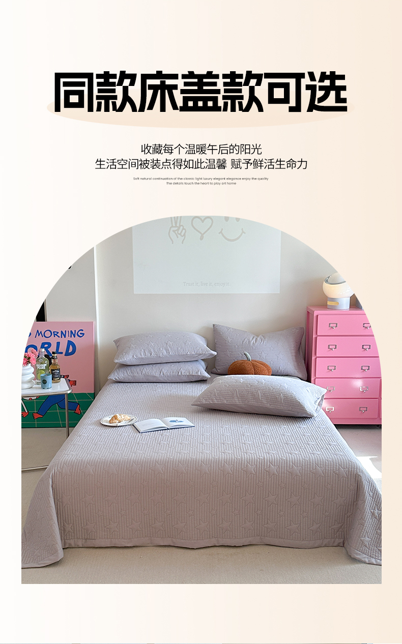(总)漫调2025新款双面全棉砂洗水洗星星绗缝多功能夏被床盖三件套,组合图仅供参考,繁星白,繁星粉,繁星灰,繁星咖,繁星绿,繁星杏
