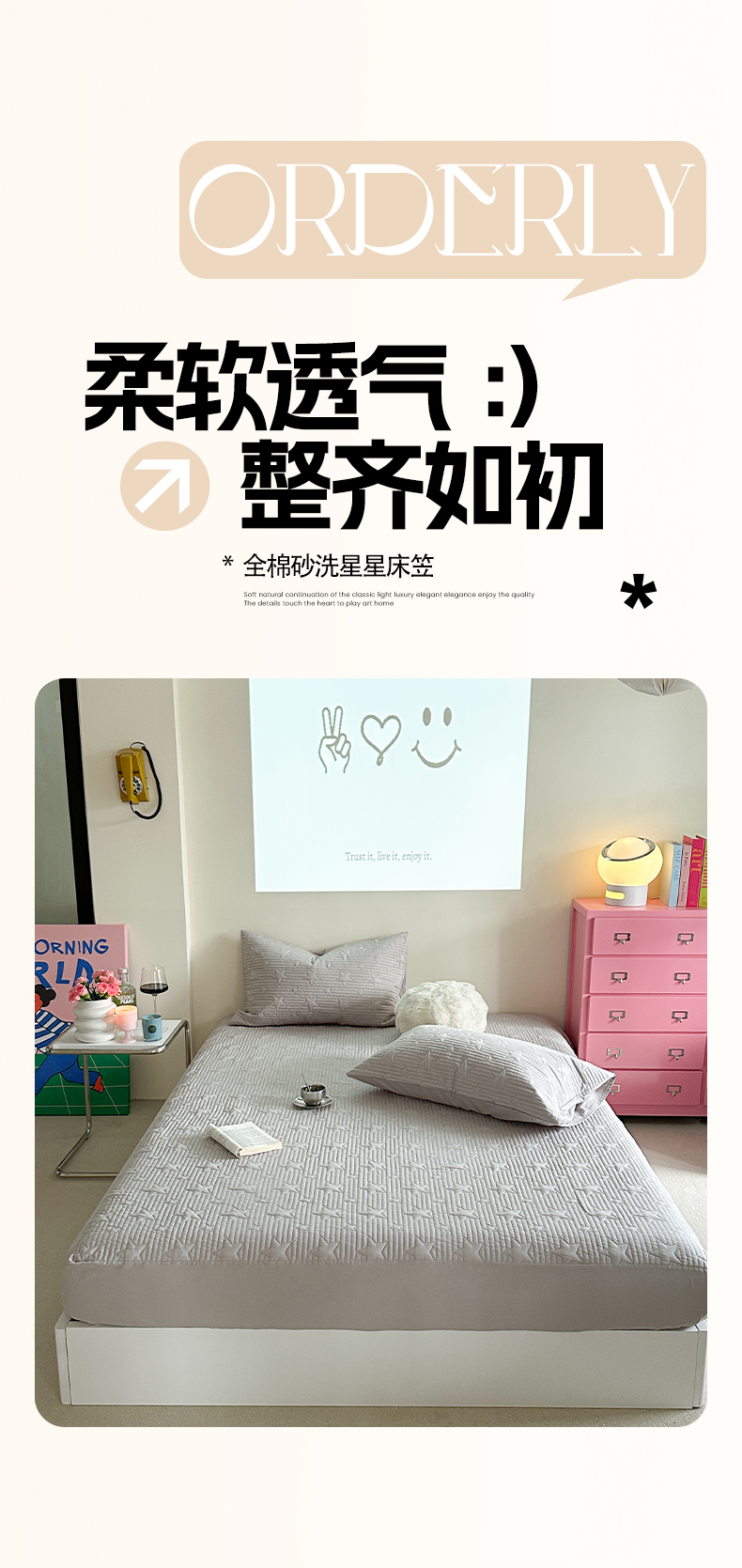 (总)漫调家纺 2025新款全棉星星床笠,繁星白,繁星粉,繁星灰,繁星咖,繁星绿,繁星杏